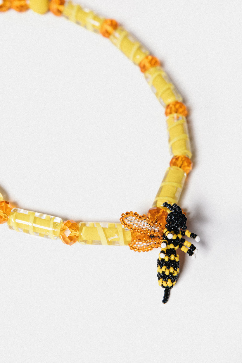 Murano glass + Crystal spheres + Bees made of Acrylic Beads +Stainless steel clasp with 18k gold plating