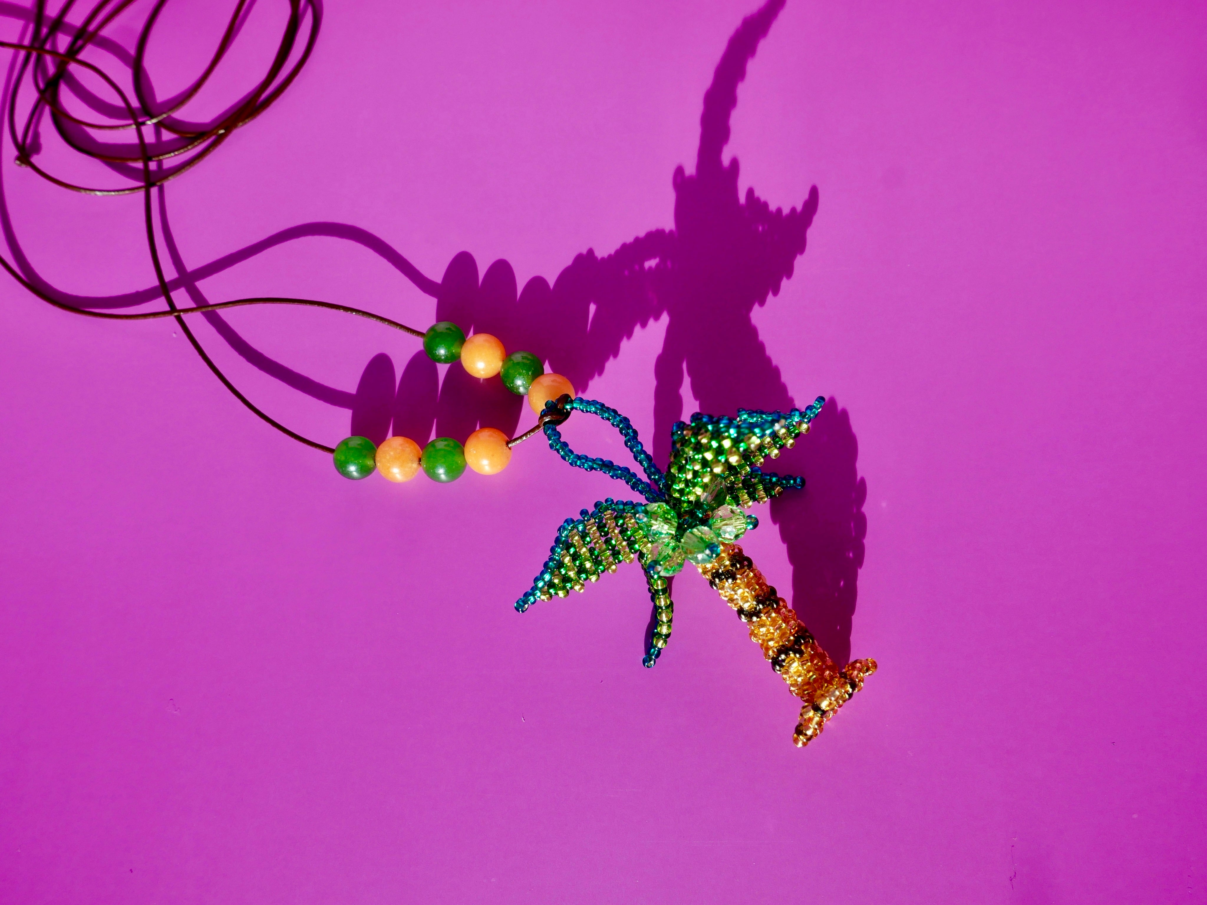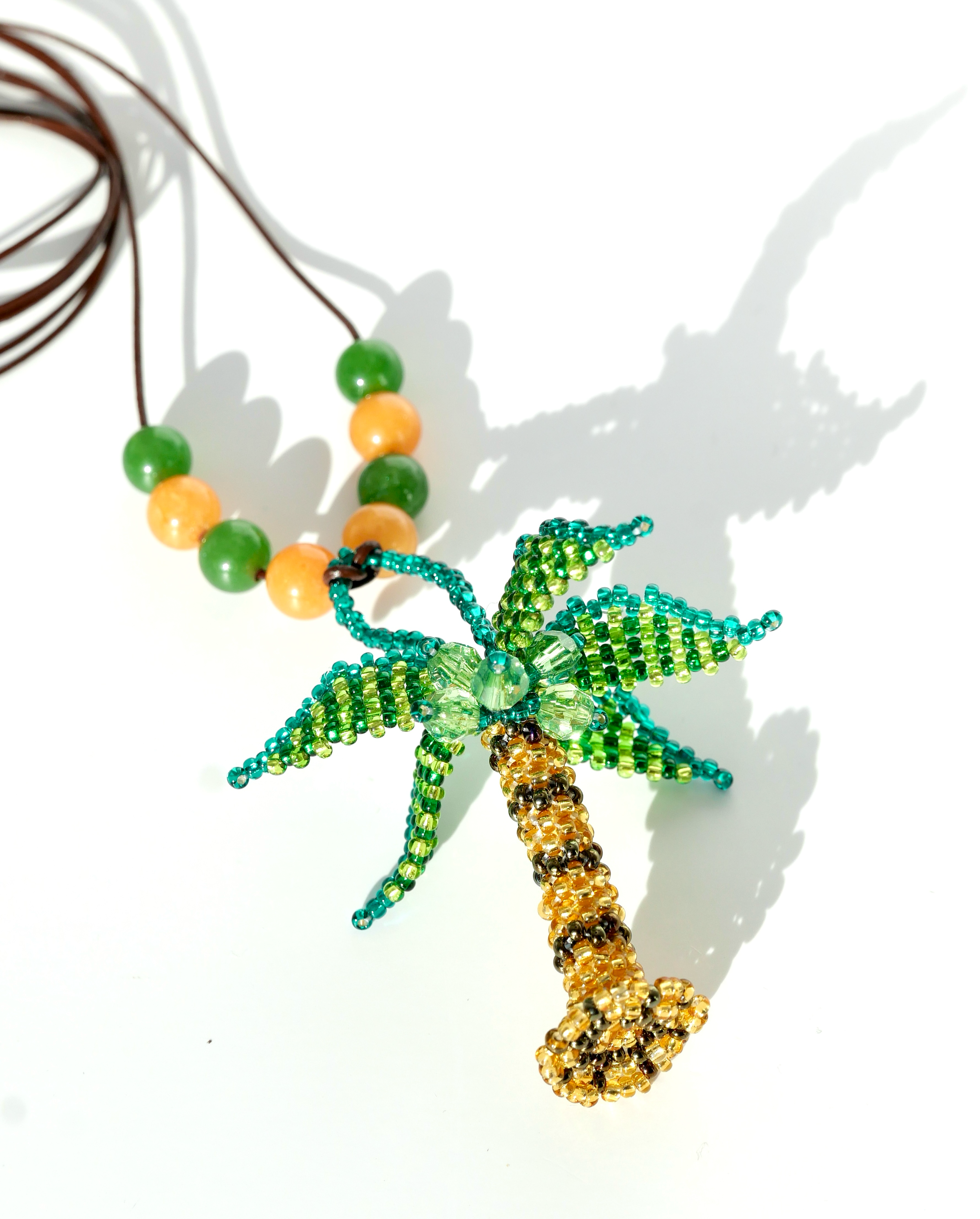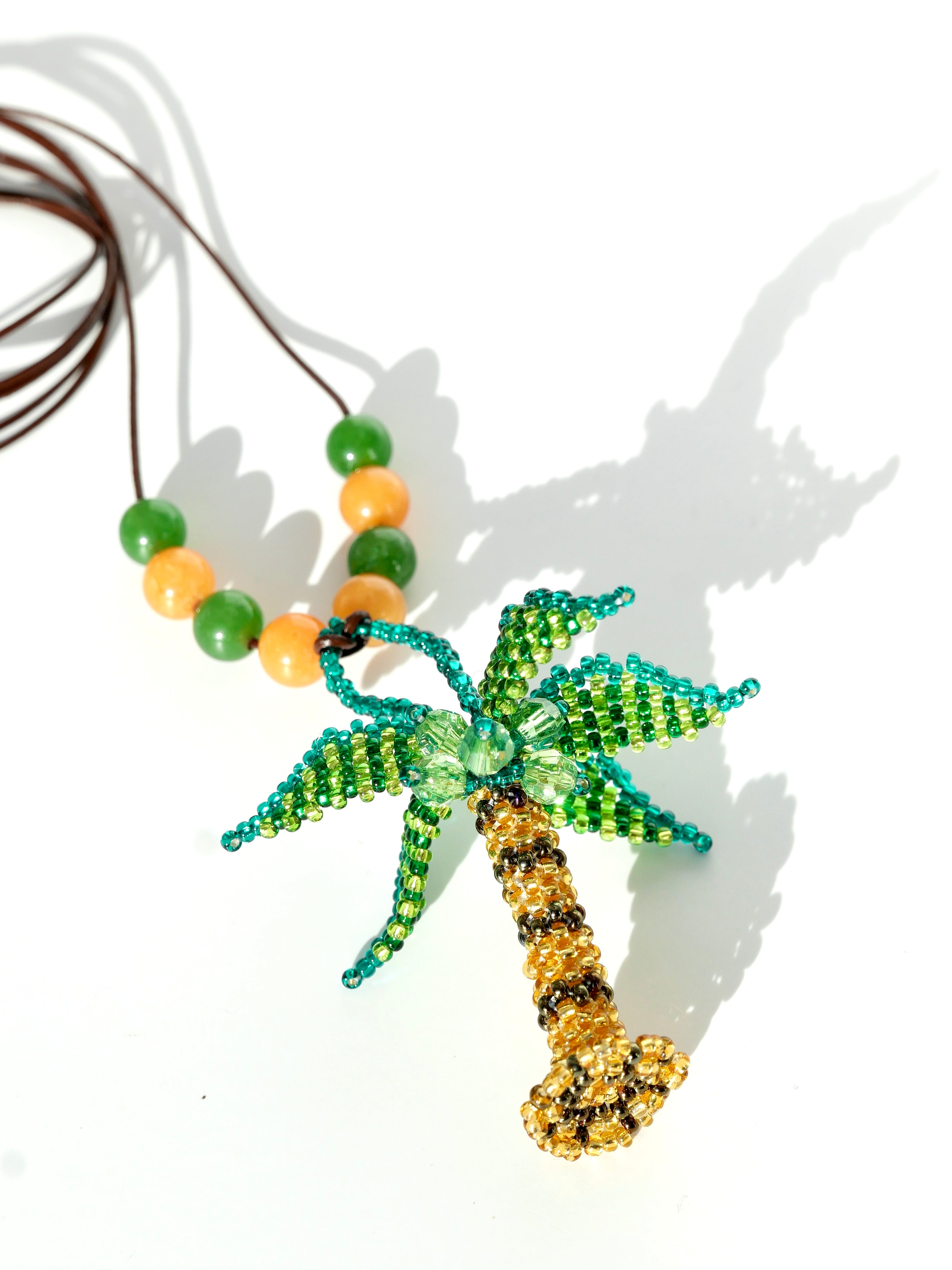 Brown Greek Leather+ Palm made of Acrylic Beads+ Agate Spheres