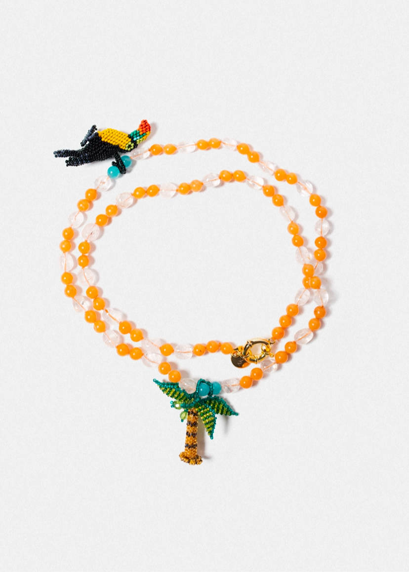 Acrylic Beads pendant + Natural Agate Stones+ Stainless Steel Clasp with 18k Gold Plating