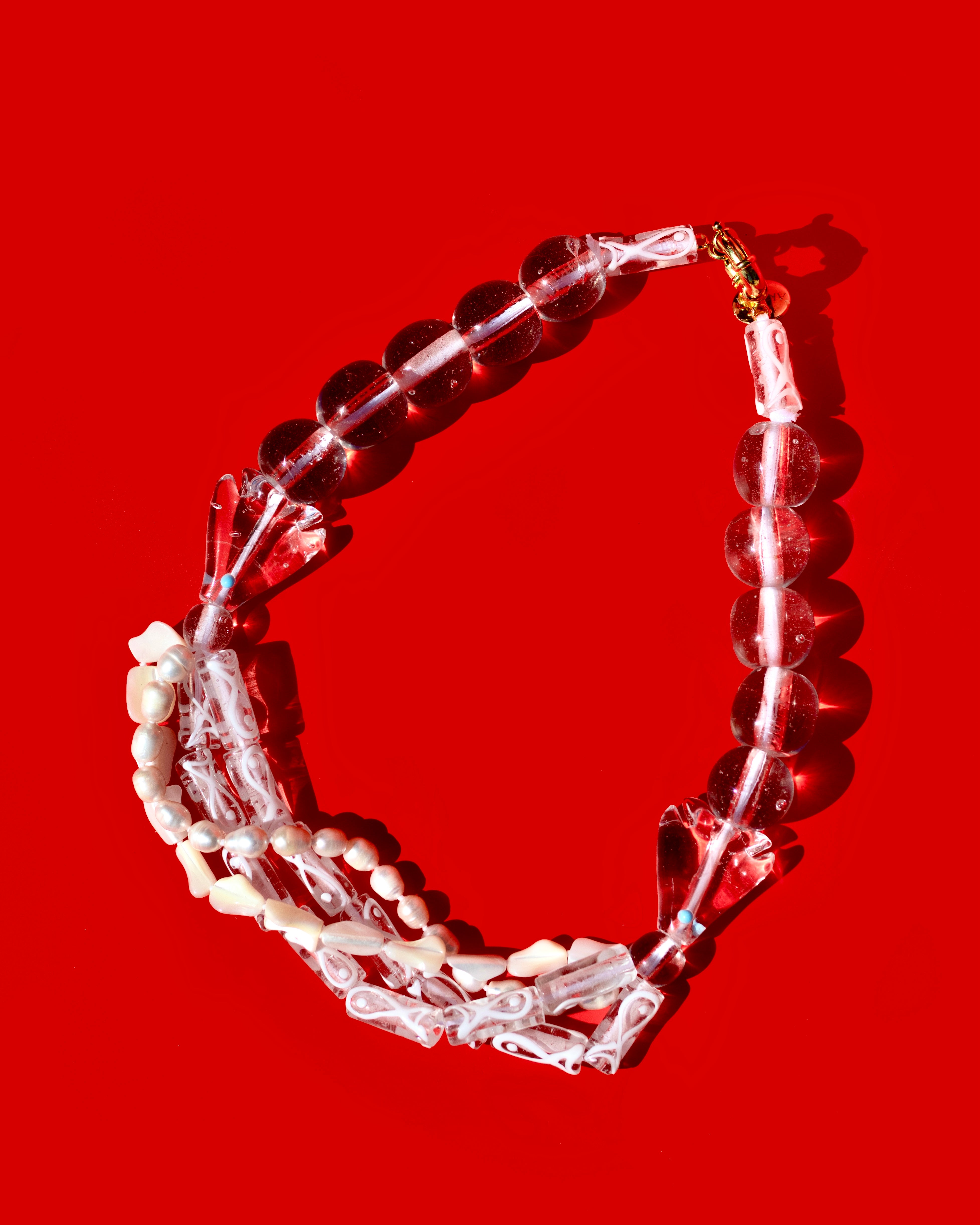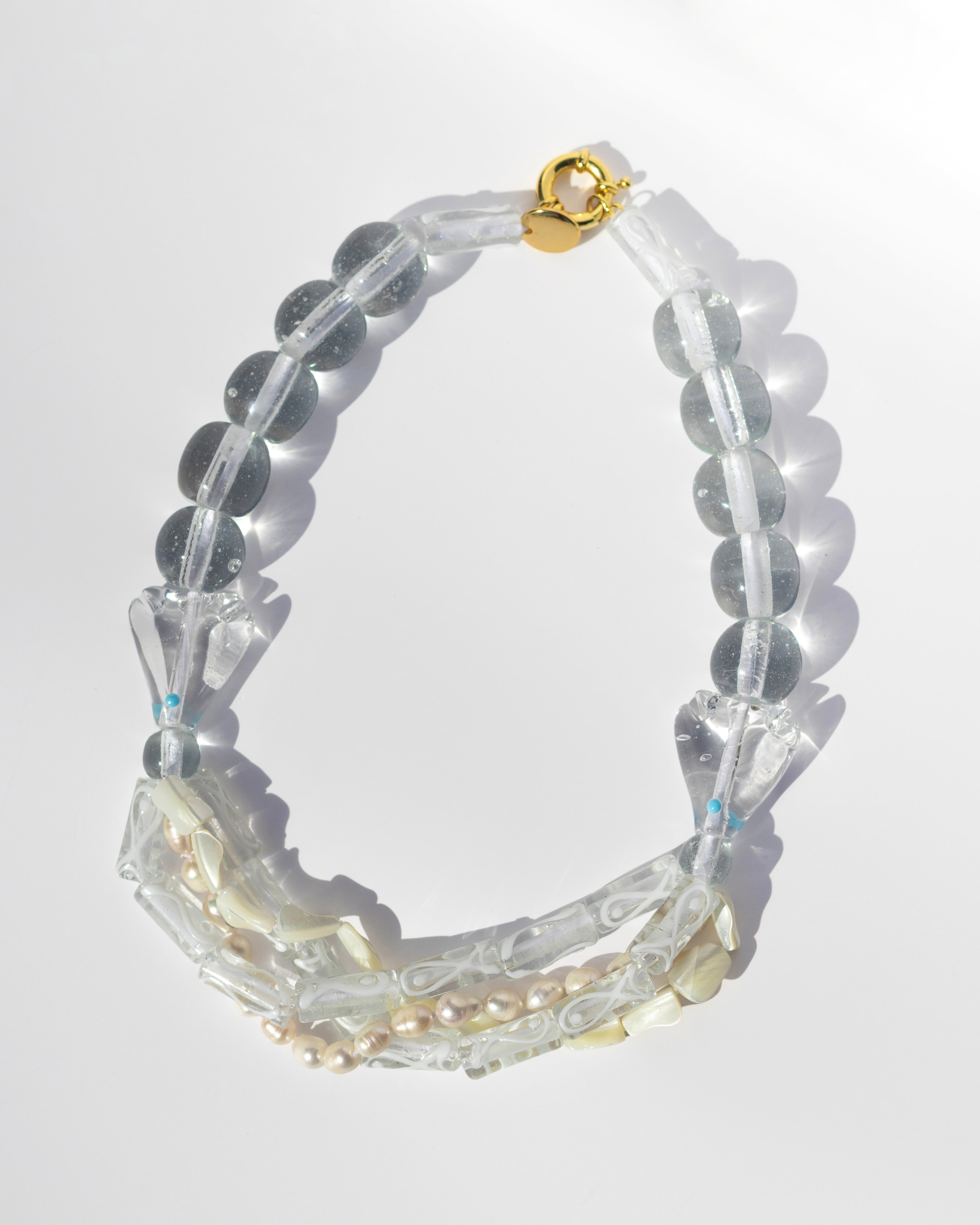 Hand–painted Murano Glass+Natural Pearls and Mother Pearls+ Stainless steel clasp with 18k gold plating