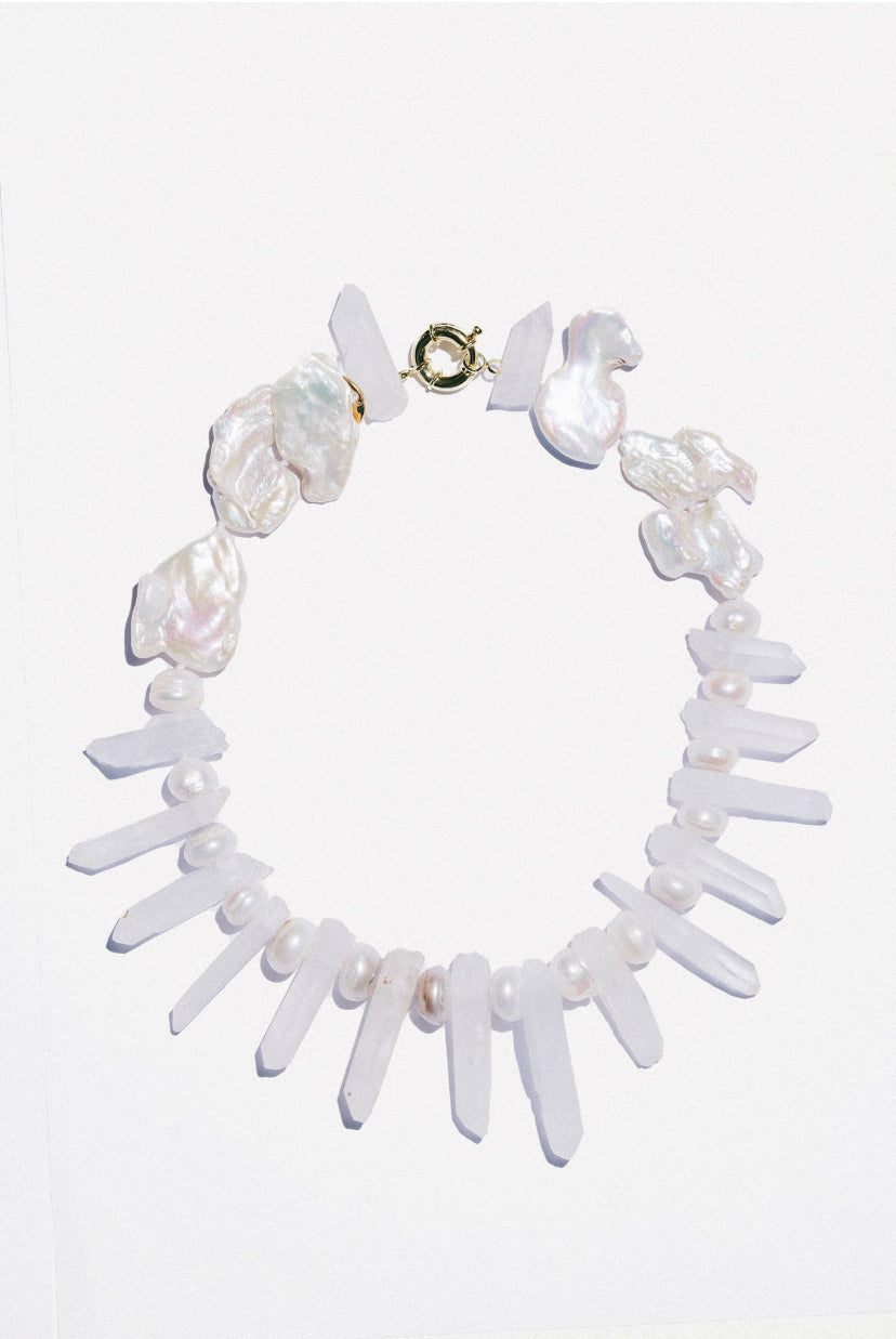Natural Quartz Stones + Natural Pearls and Mother-of-pearl + 18k Gold-Plated Stainless Steel Clasp