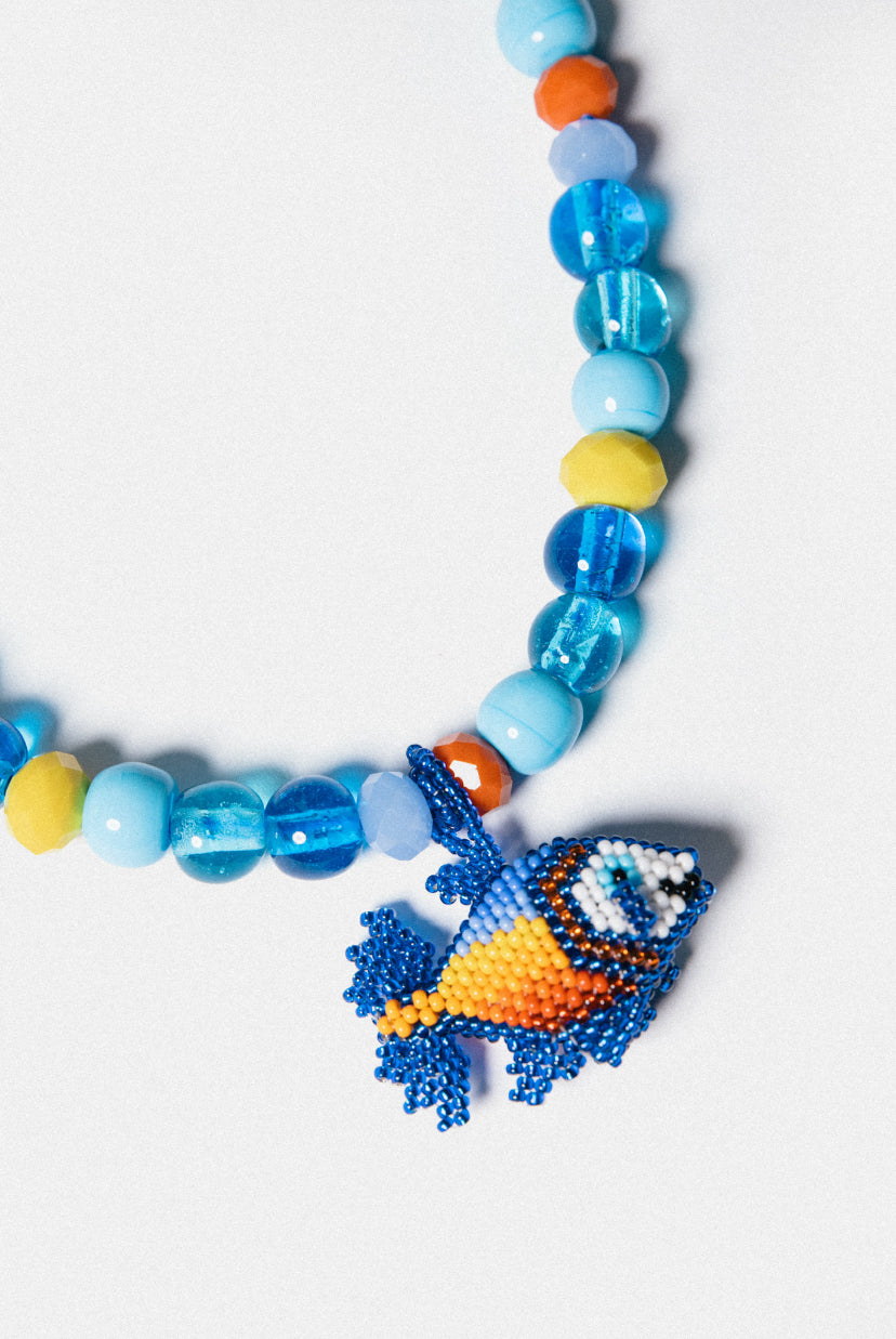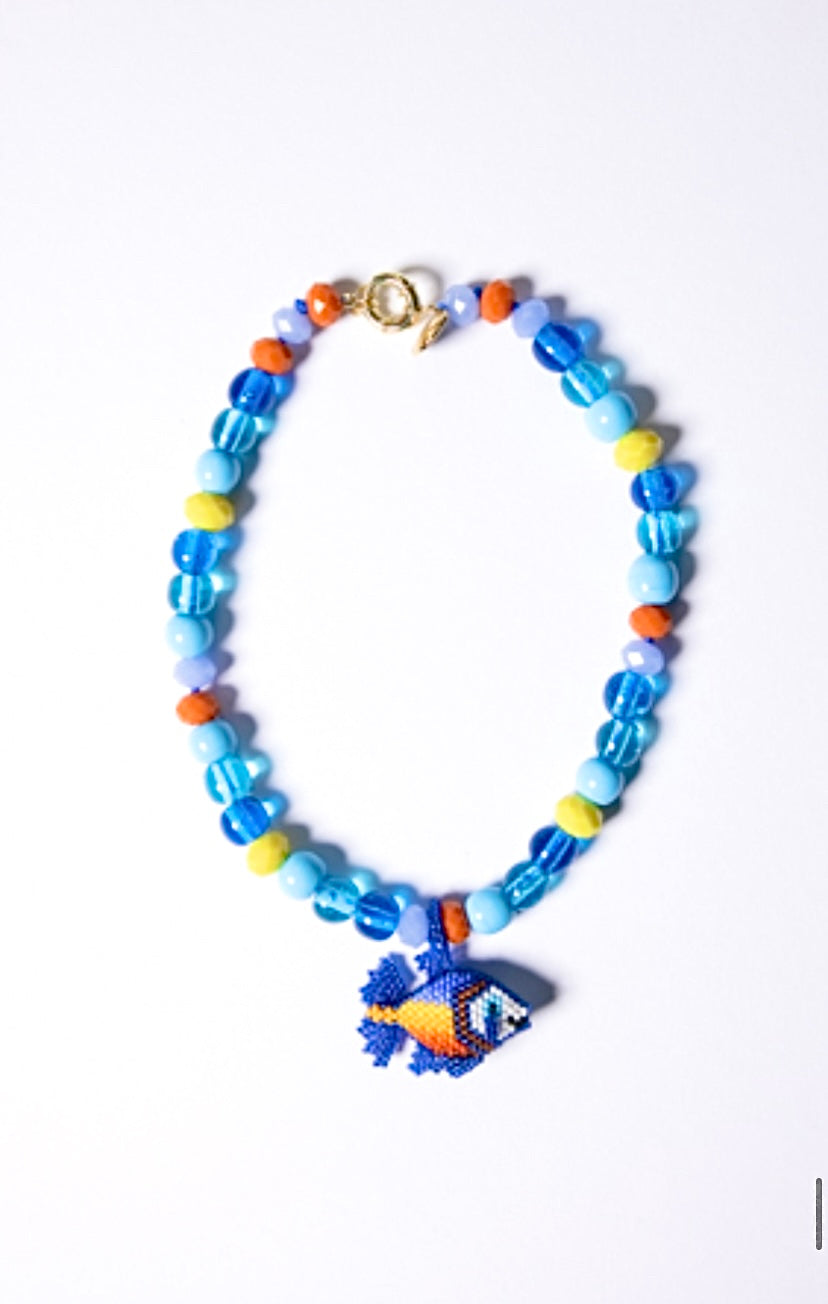 Fish made of Acrylic Beads + Ceramic+ Crystal Spheres+Stainless Steel Clasp with 18k Gold Plating