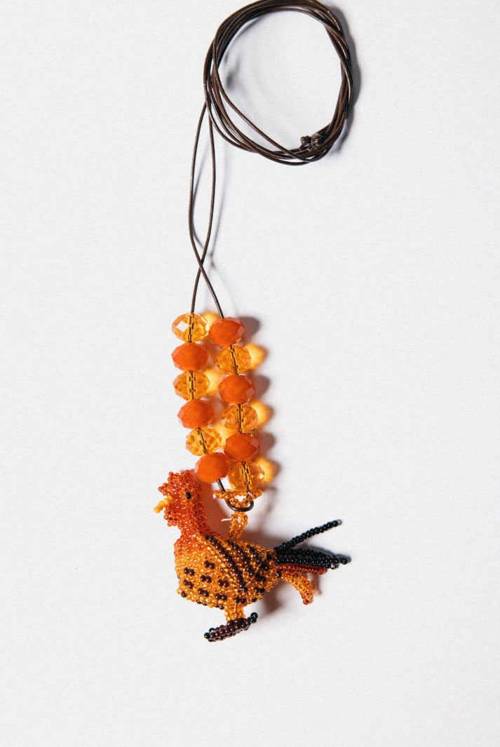 Brown Greek Leather + Rooster made of Acrylic Beads + Crystal Spheres