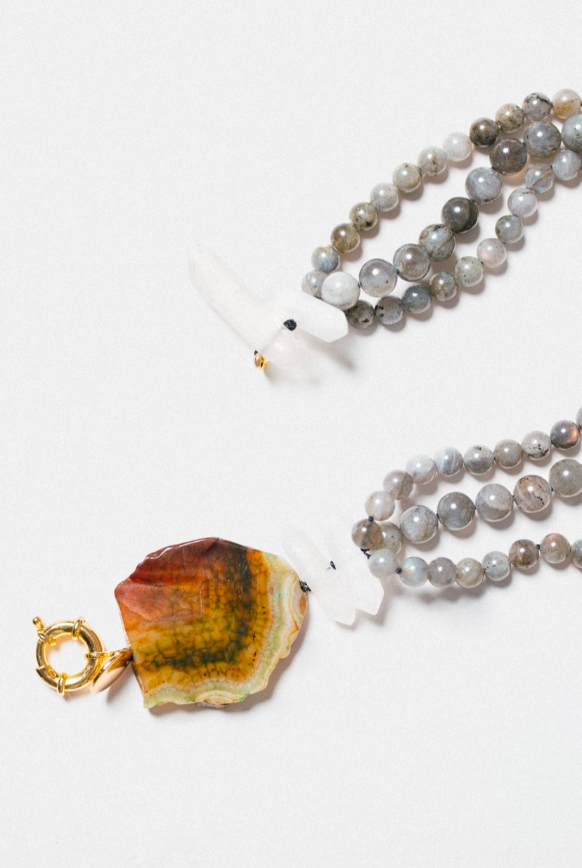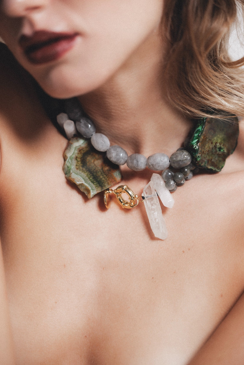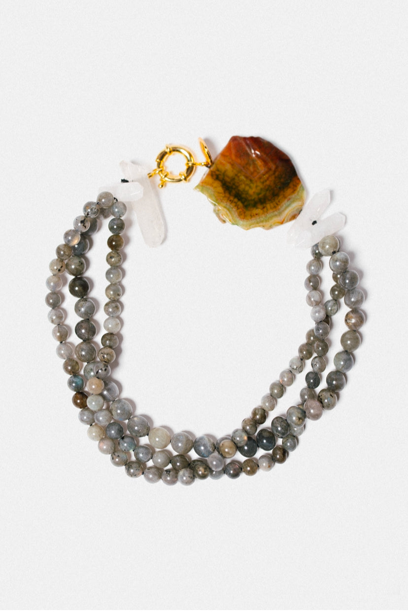 Natural Agate Stone + Natural Quartz Crystal Stone + Natural Opalinae Stone + Stainless Steel Clasp with 18k Gold Plating