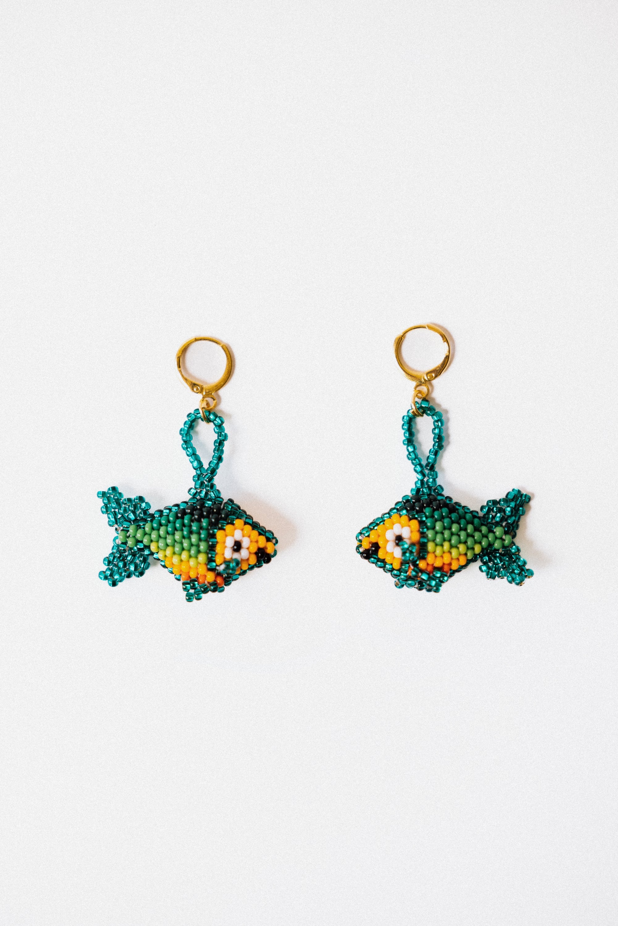 Fish made of Acrylic Beads / Stainless Steel Rings + 18k Gold Plating