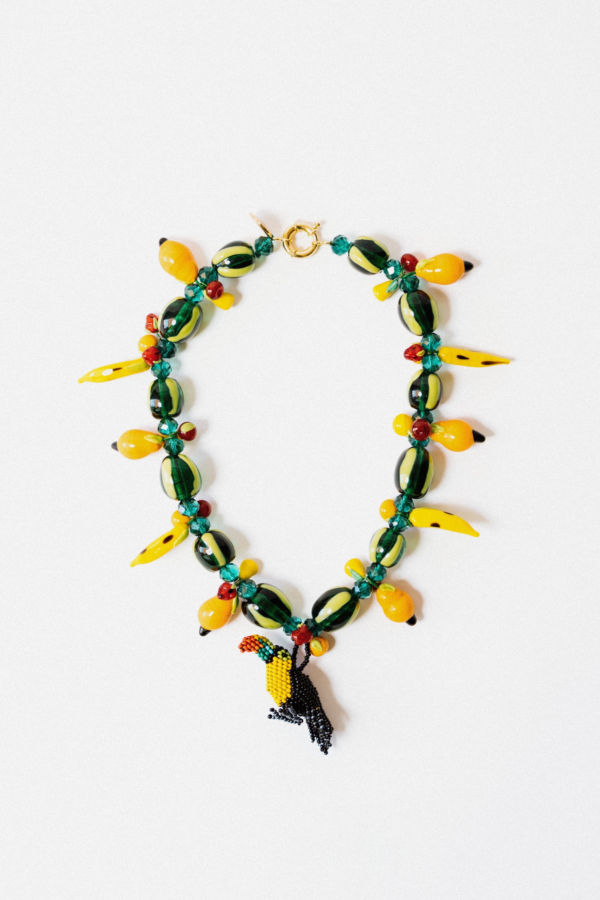 Murano glass Fruits + Crystal Beads + Crystal Beads pendant / Stainless Steel Clasp + 18k Gold Plating