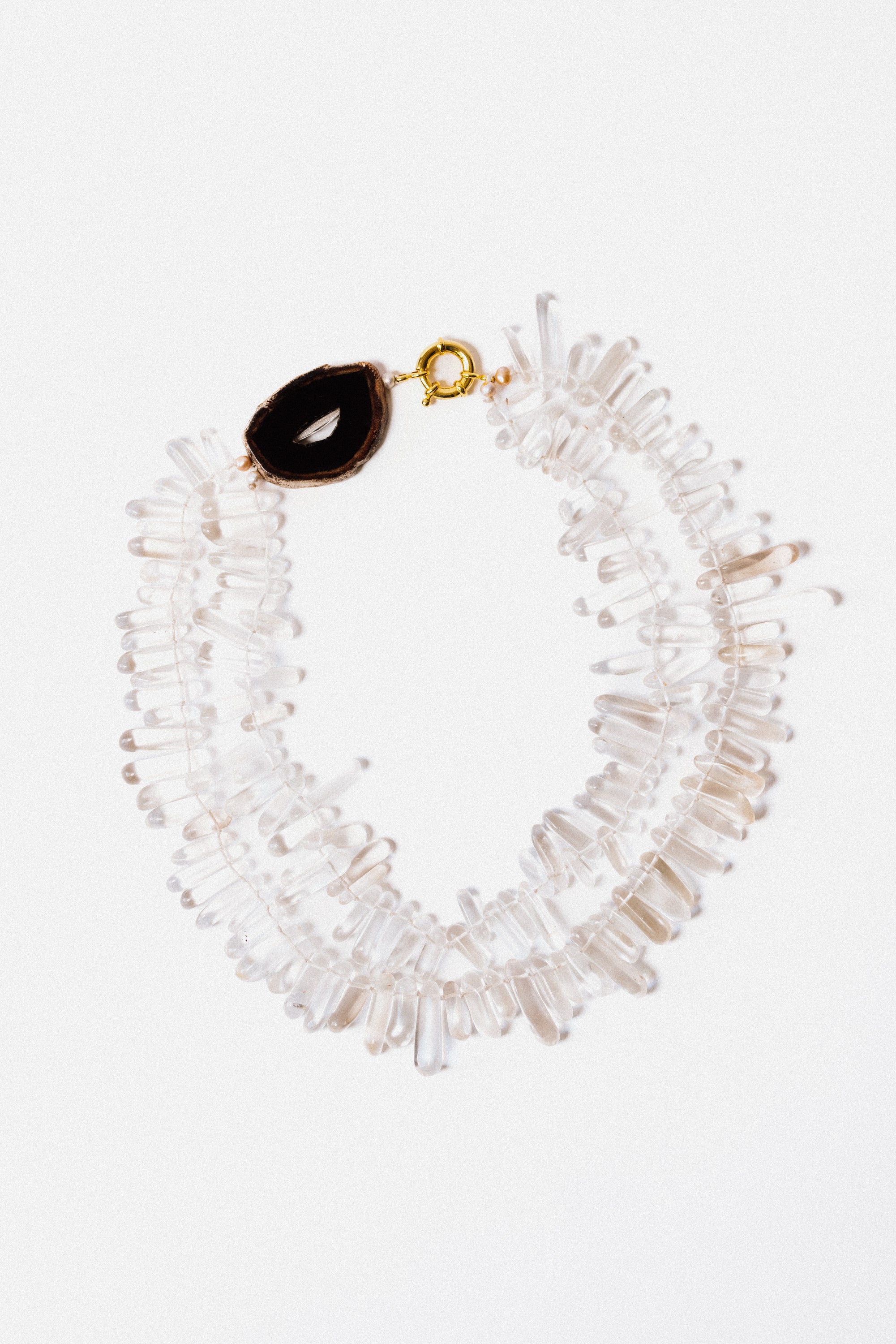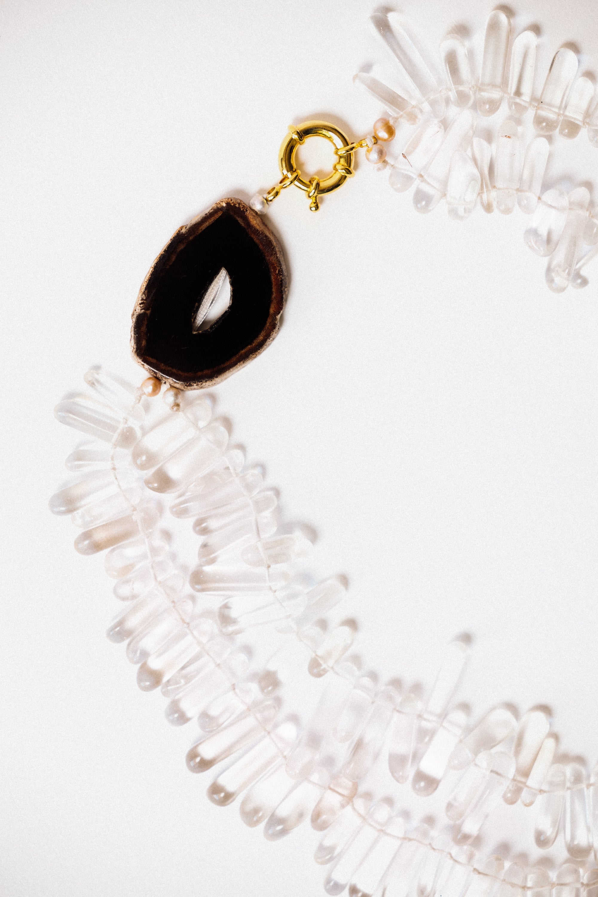 Natural Quartz Crystal and Agate Stones / Stainless Steel Clasp with 18k Gold Plating.
