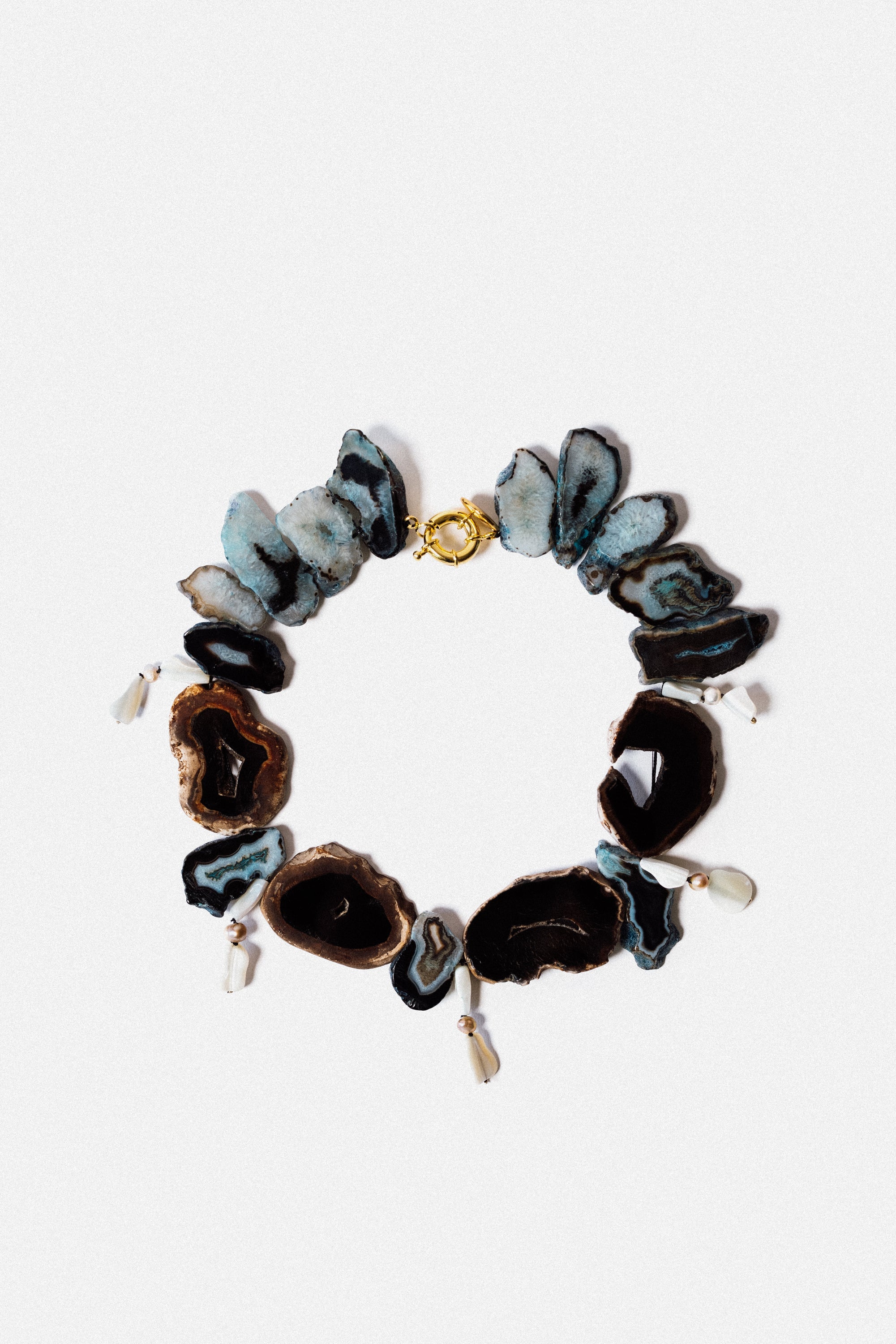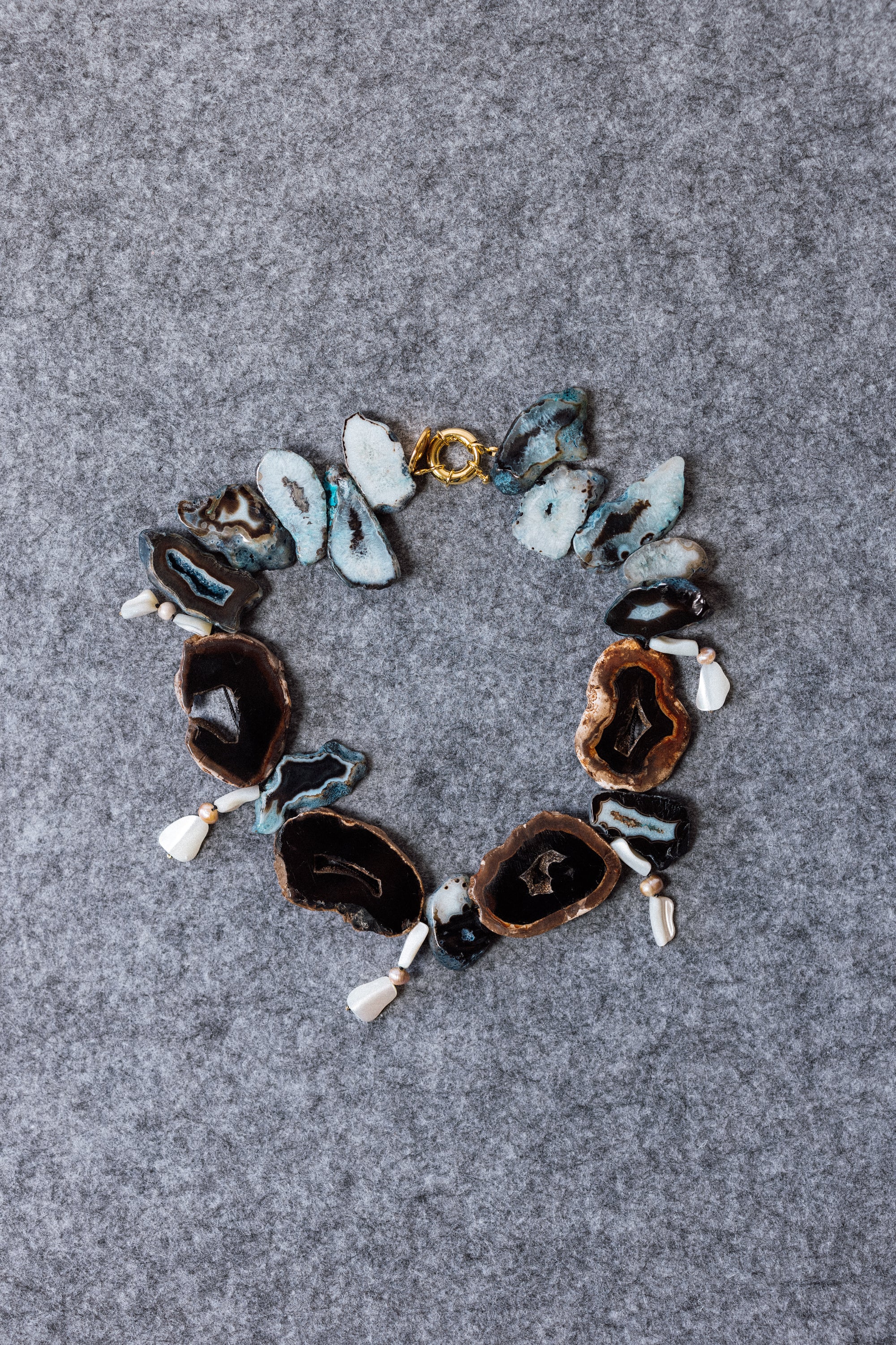 Natural Agate and Mother of Pearl Stones / Stainless Steel Clasp with 18k Gold Plating.