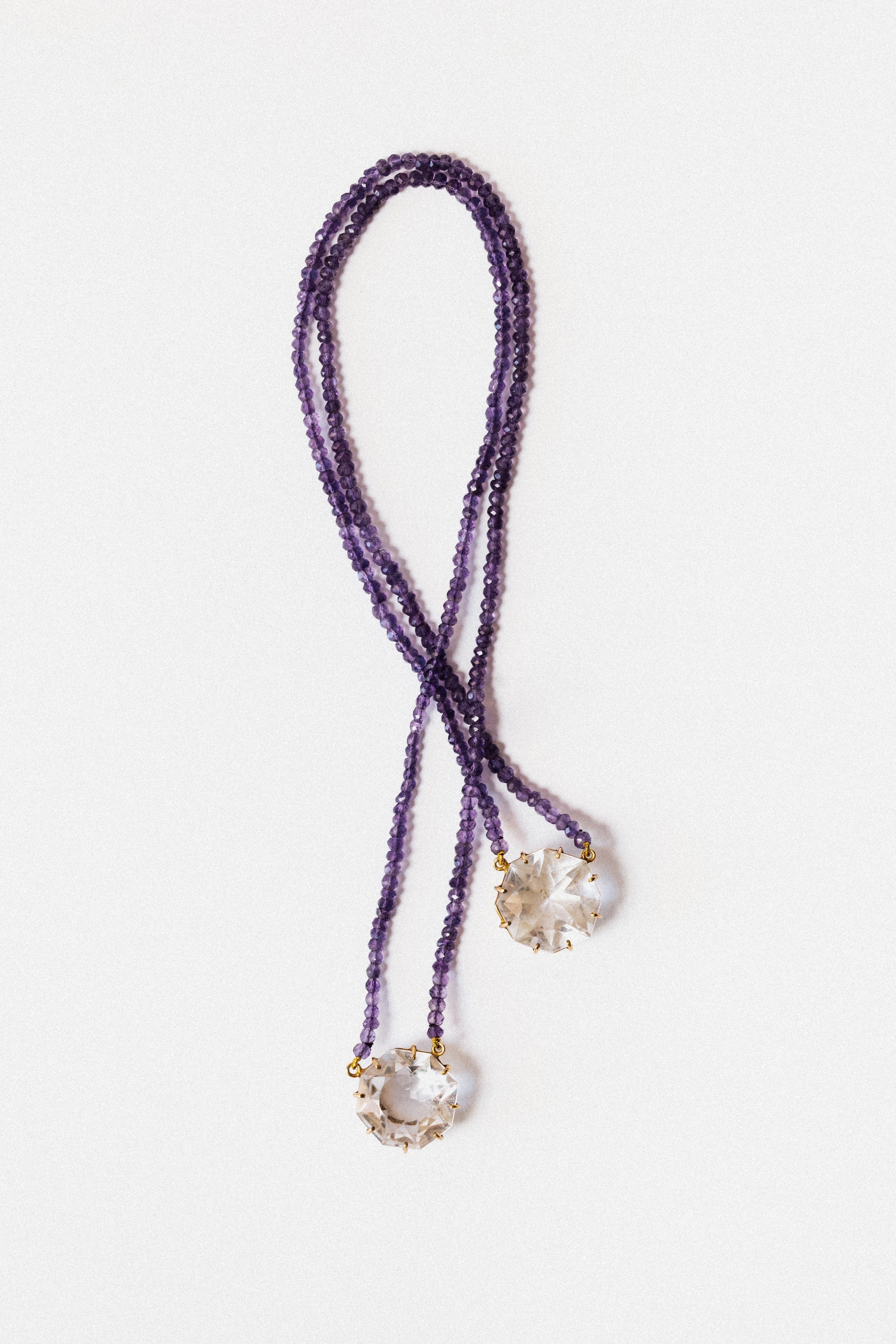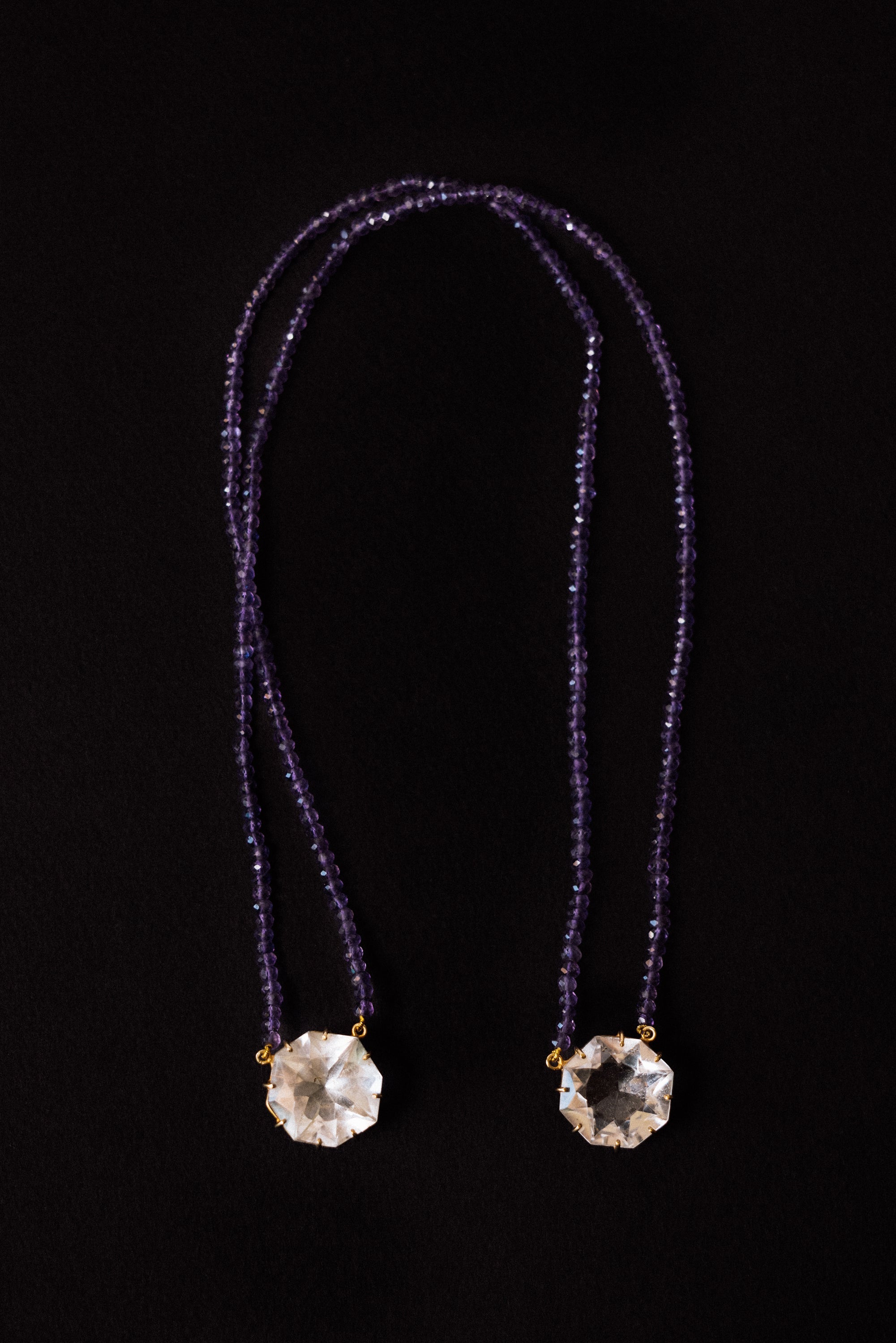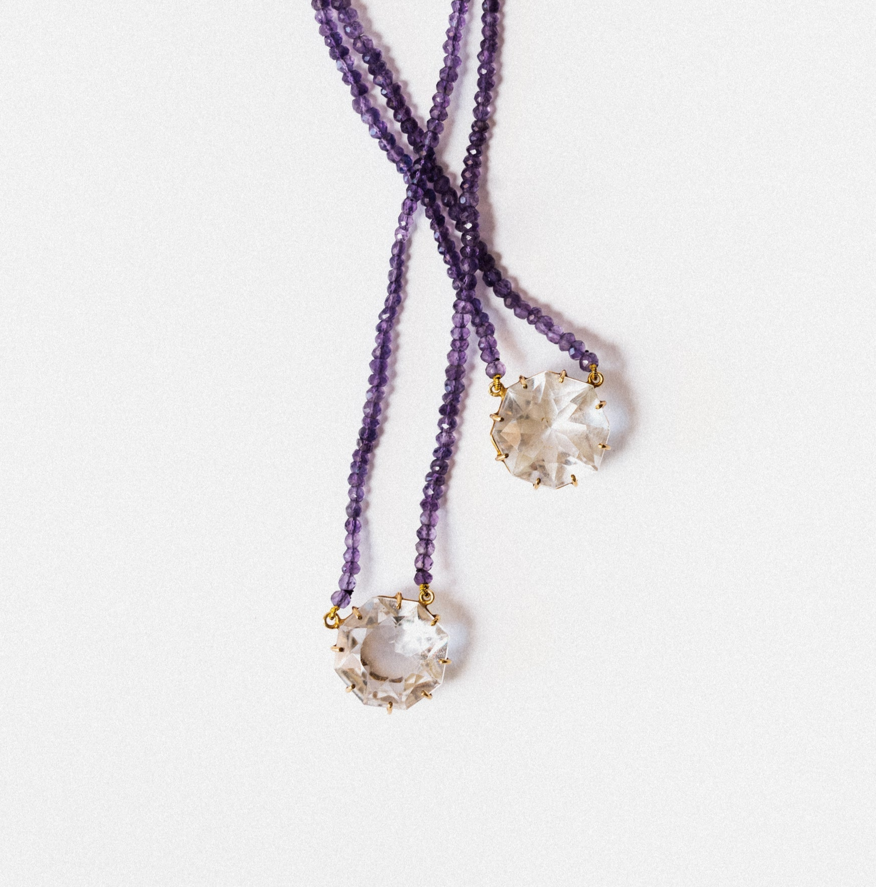 Octagonal Cut Quartz Crystal Stones and Faceted Amethyst Stones / 18K Gold