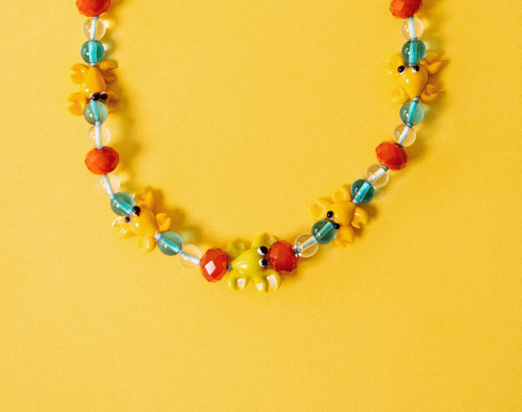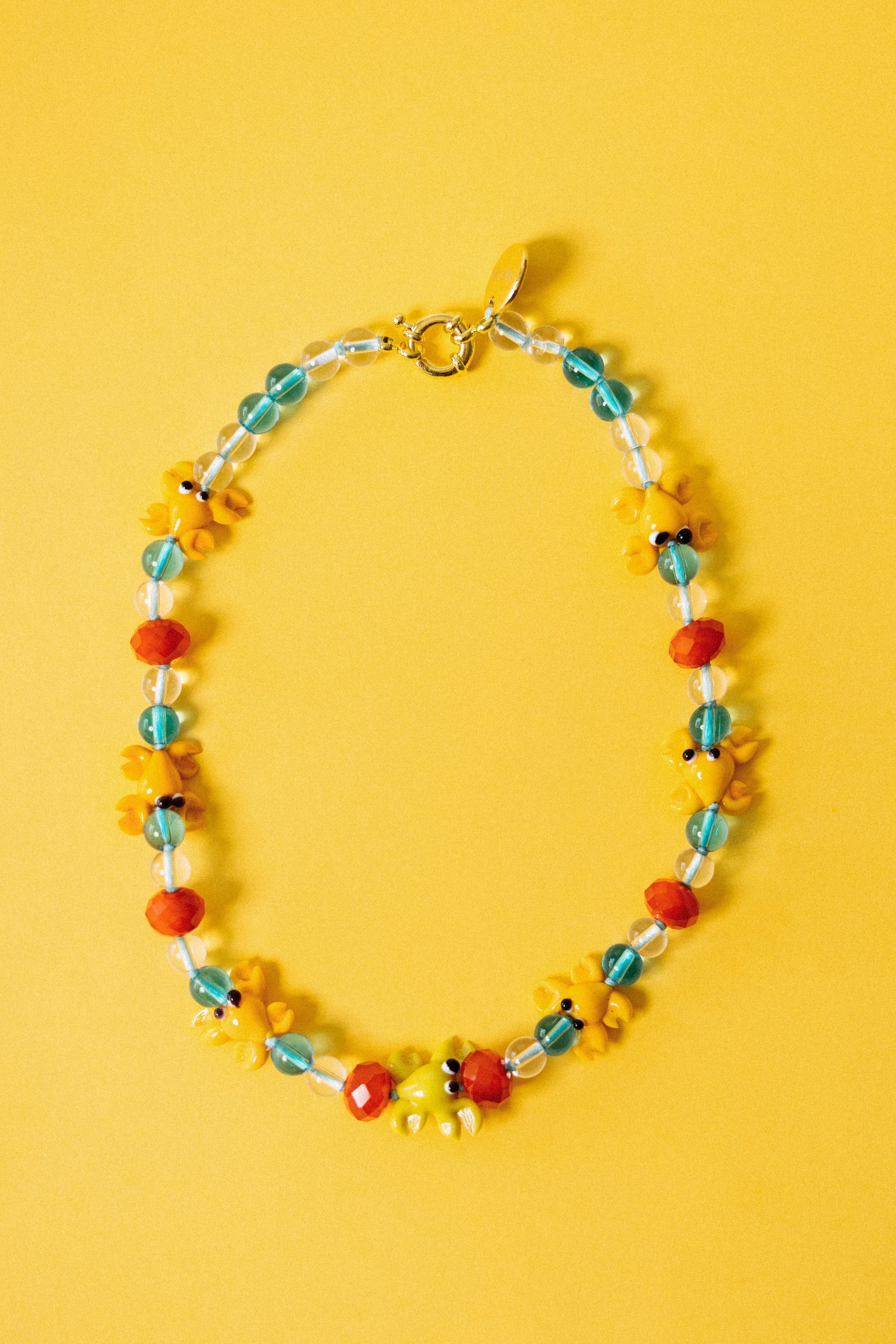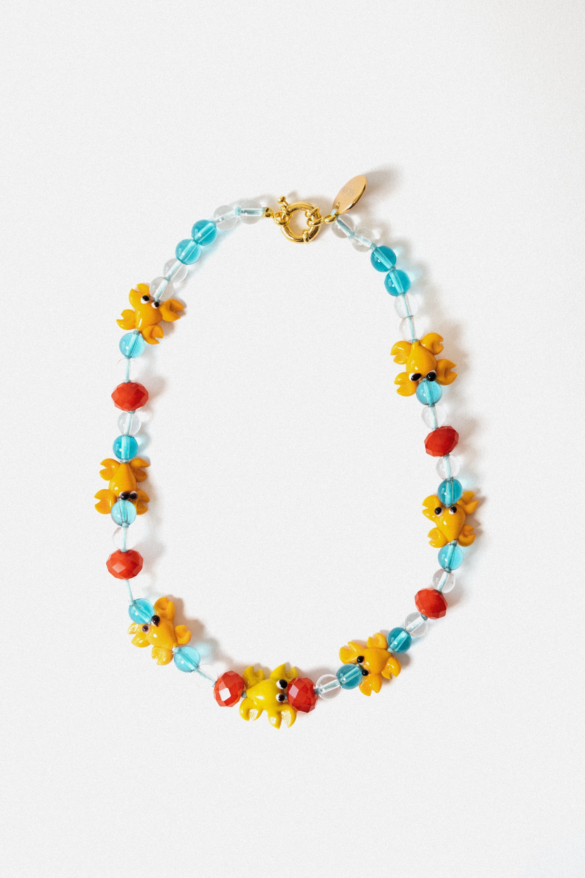 Murano glass crab + Crystal spheres / Stainless steel clasp with 18k gold plating