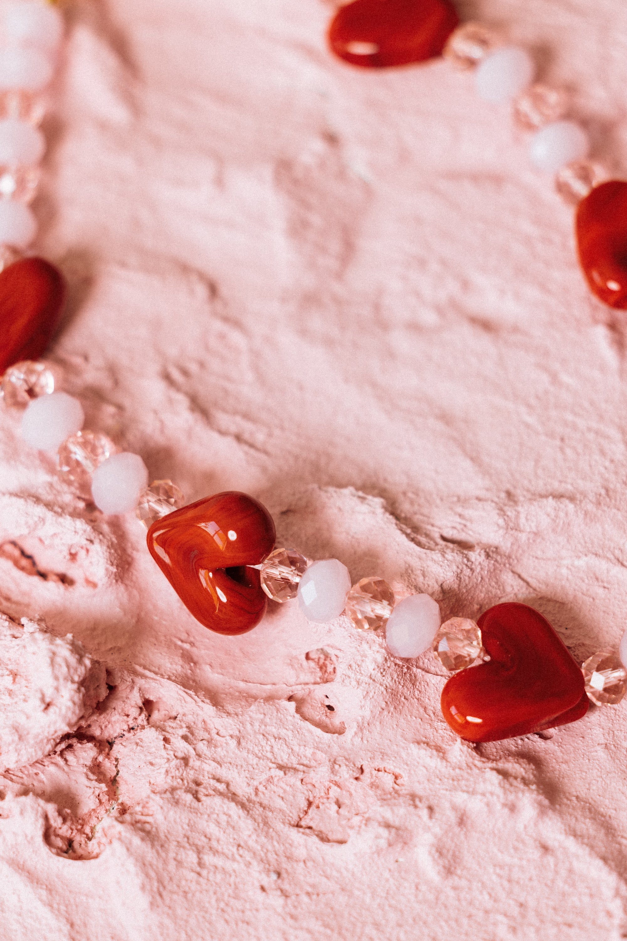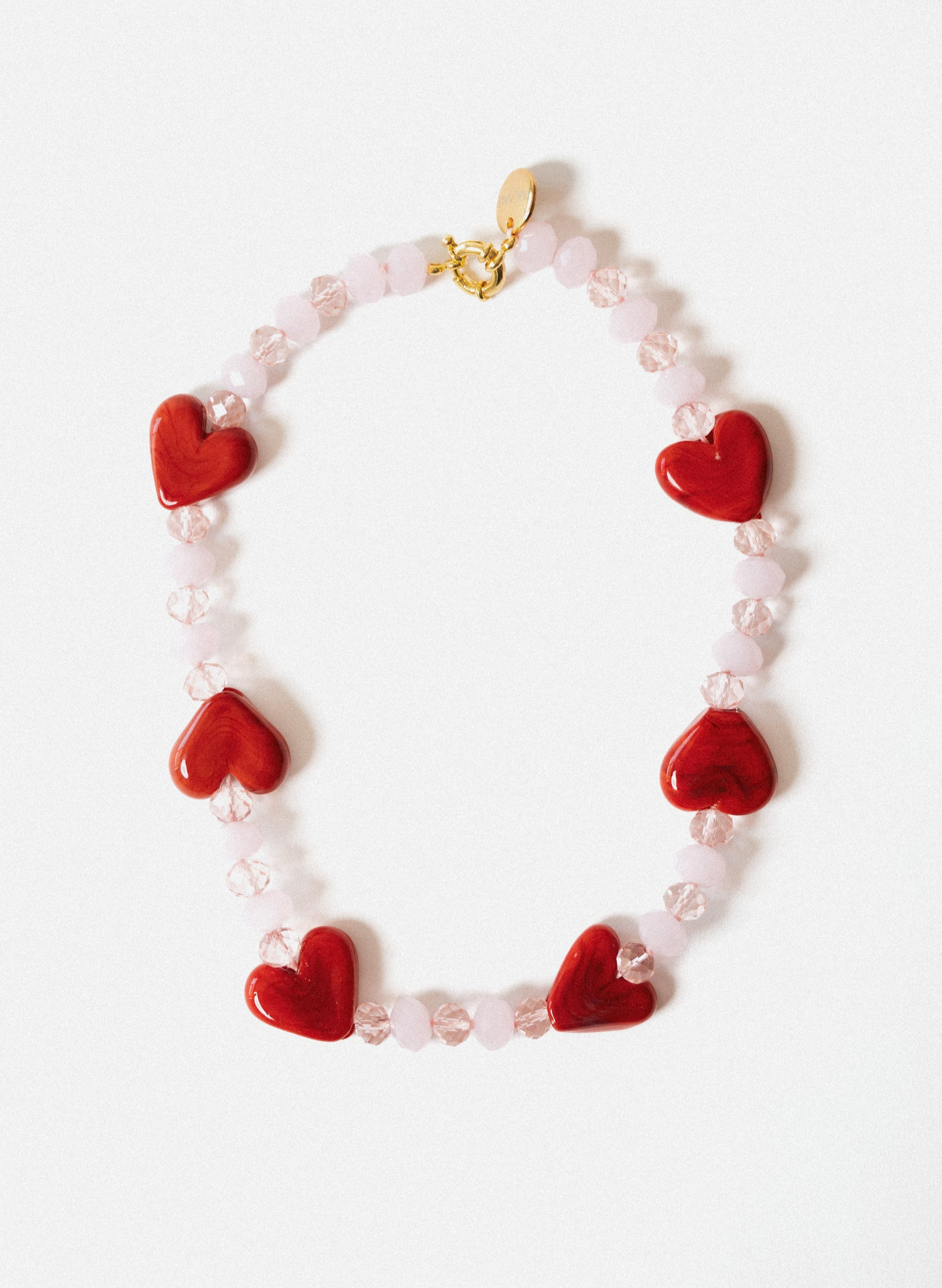 Murano glass hearts + Crystal spheres / Stainless steel clasp with 18k gold plating