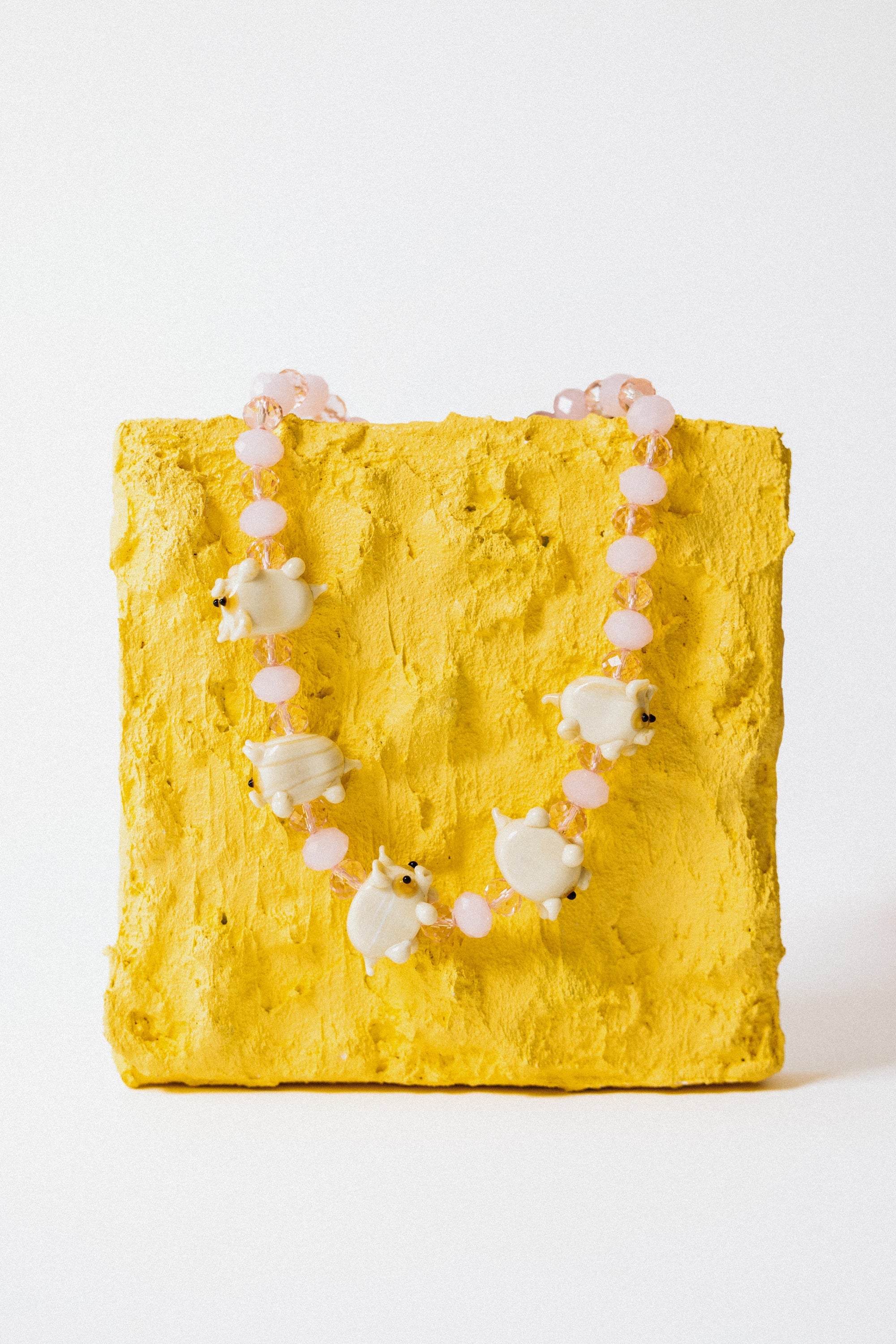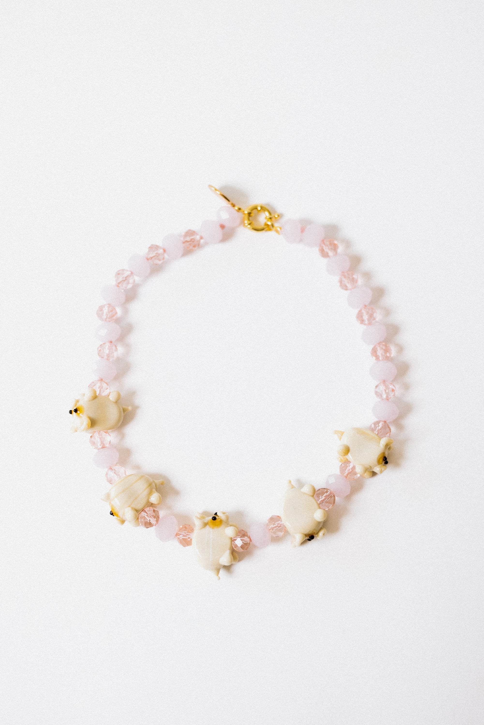 Murano glass pig + Crystal spheres / Stainless steel clasp with 18k gold plating