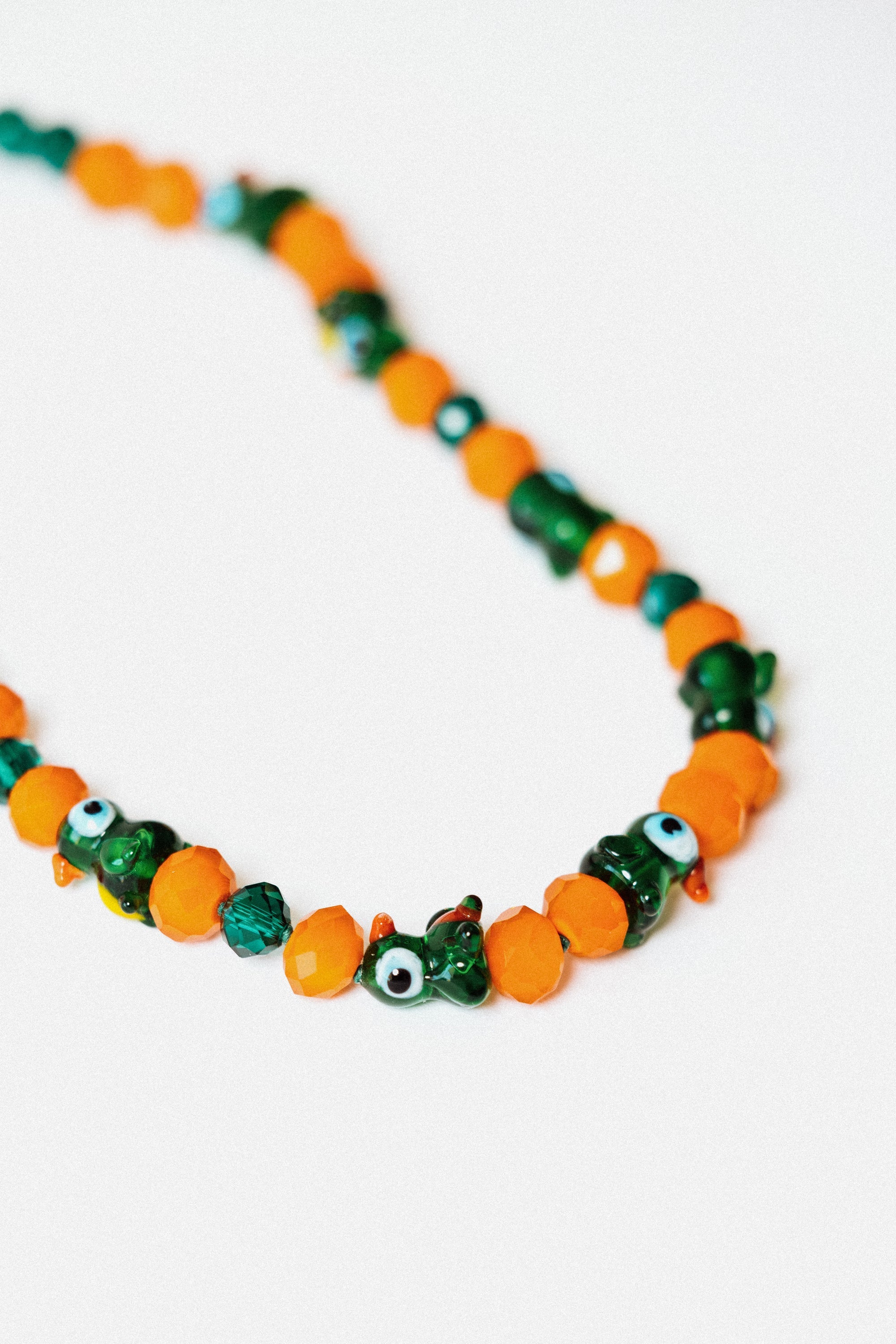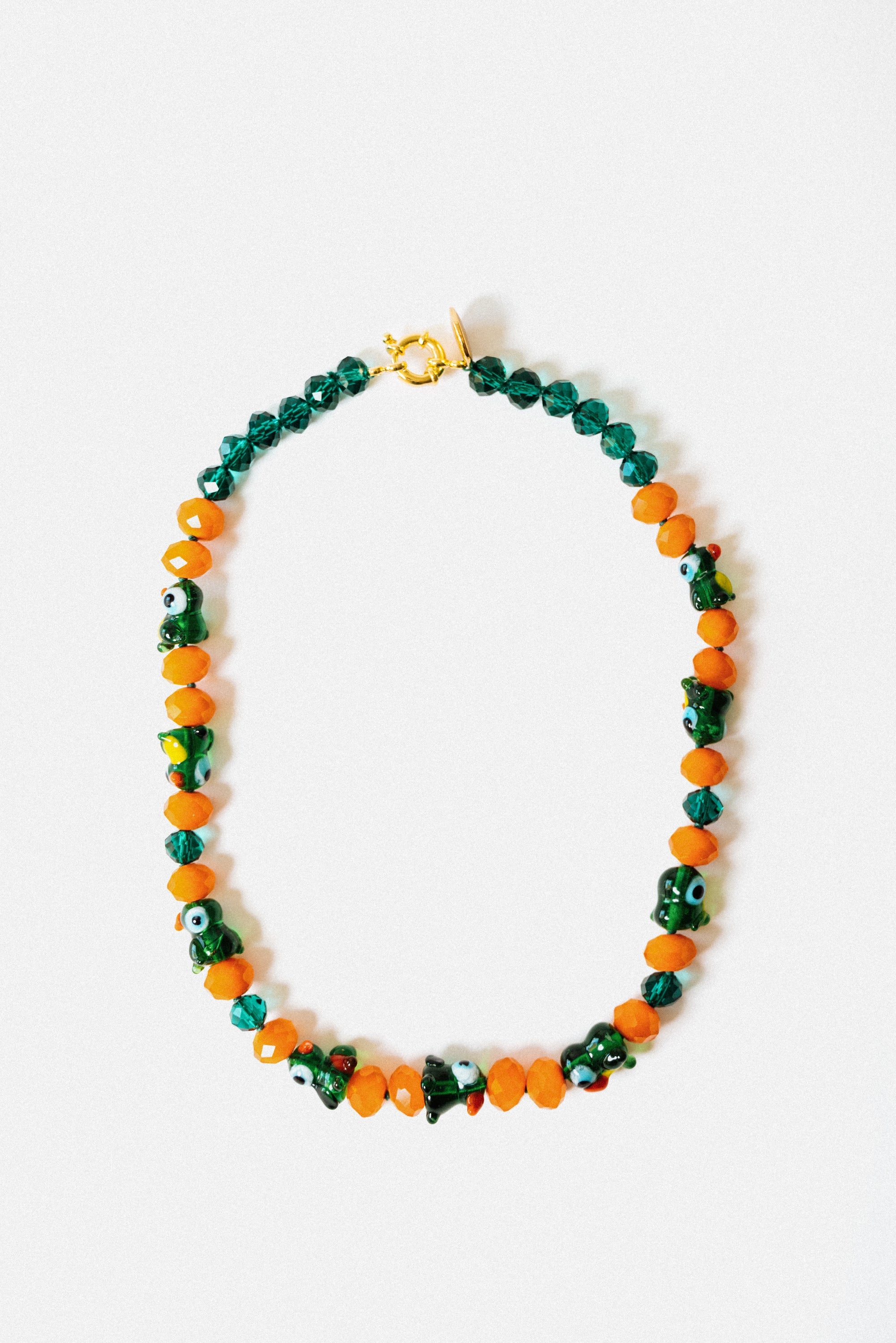 Murano glass parrot + Crystal spheres / Stainless steel clasp with 18k gold plating