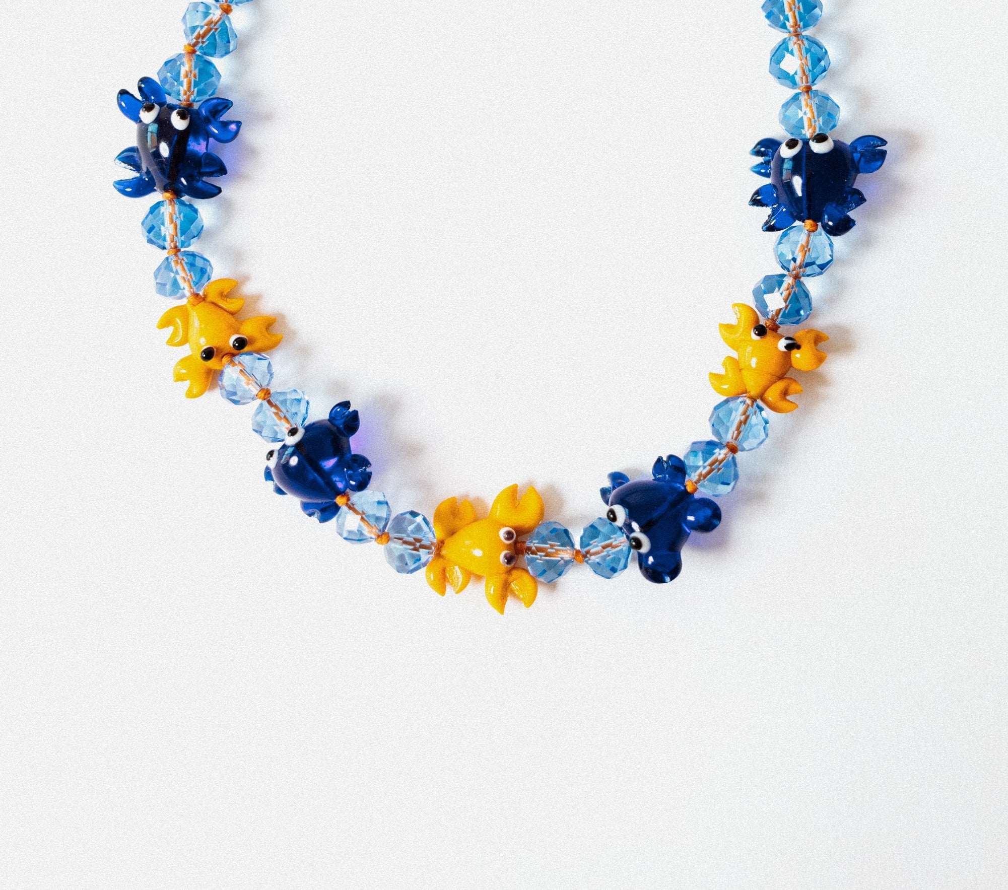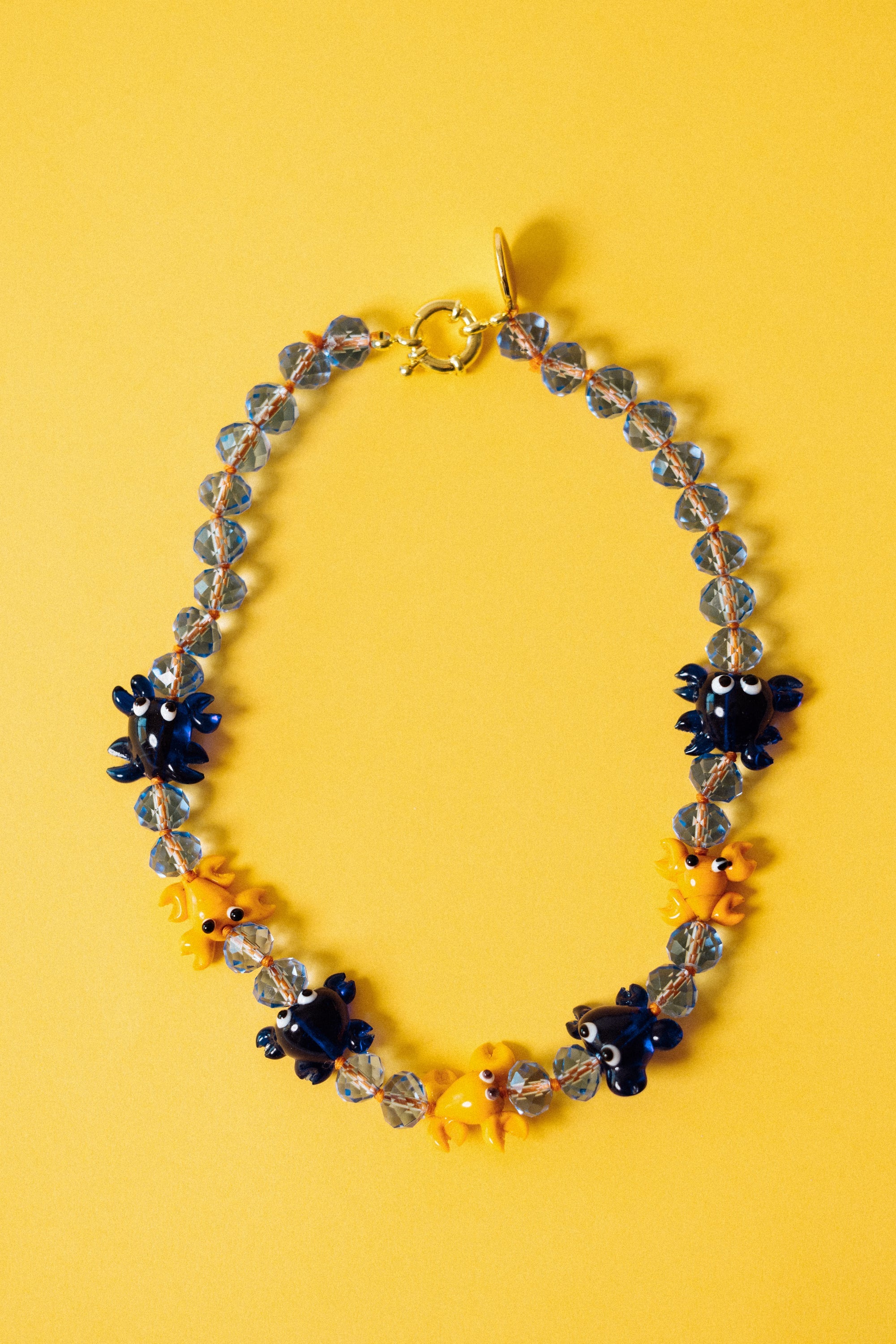 Murano glass crab + Crystal spheres / Stainless steel clasp with 18k gold plating