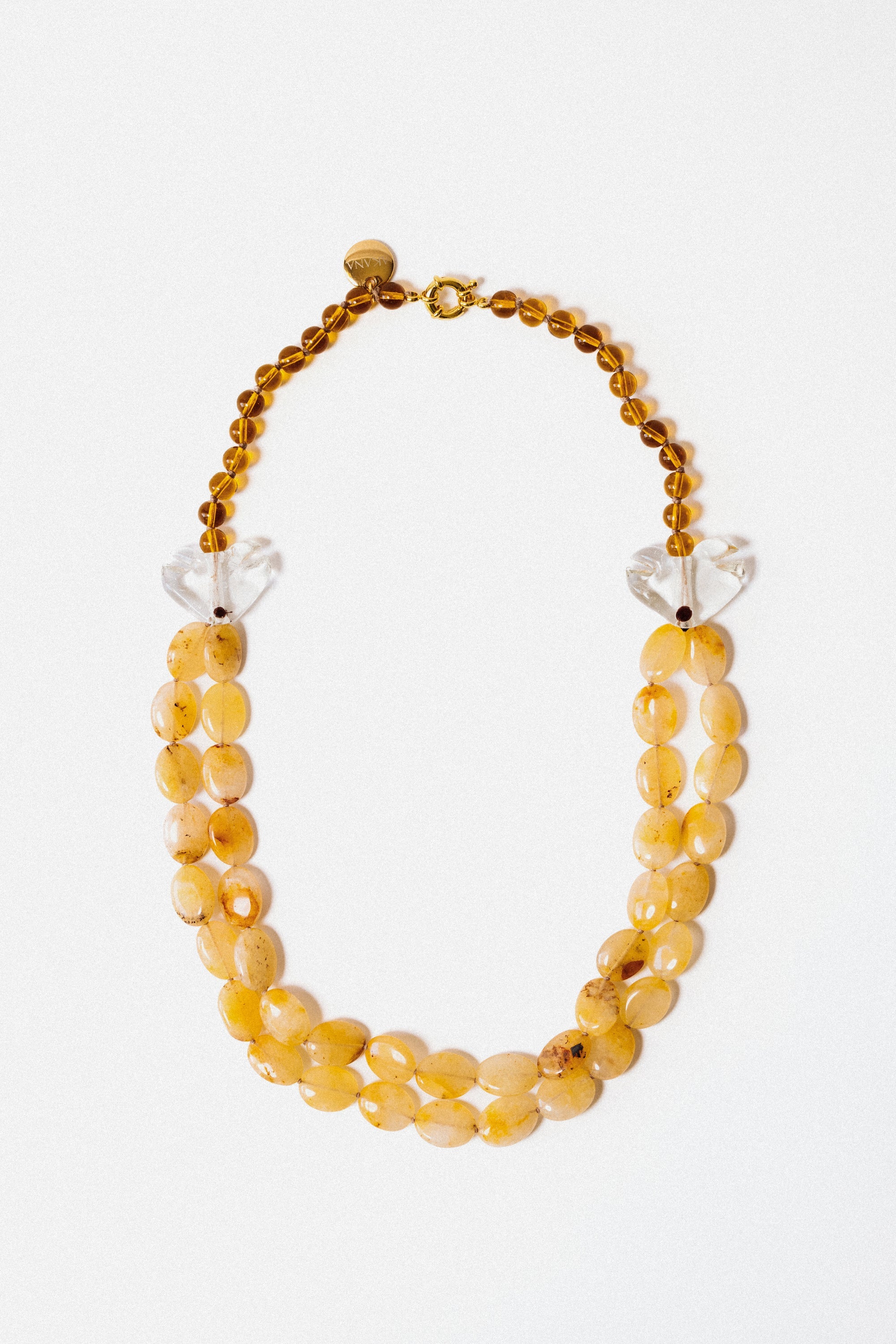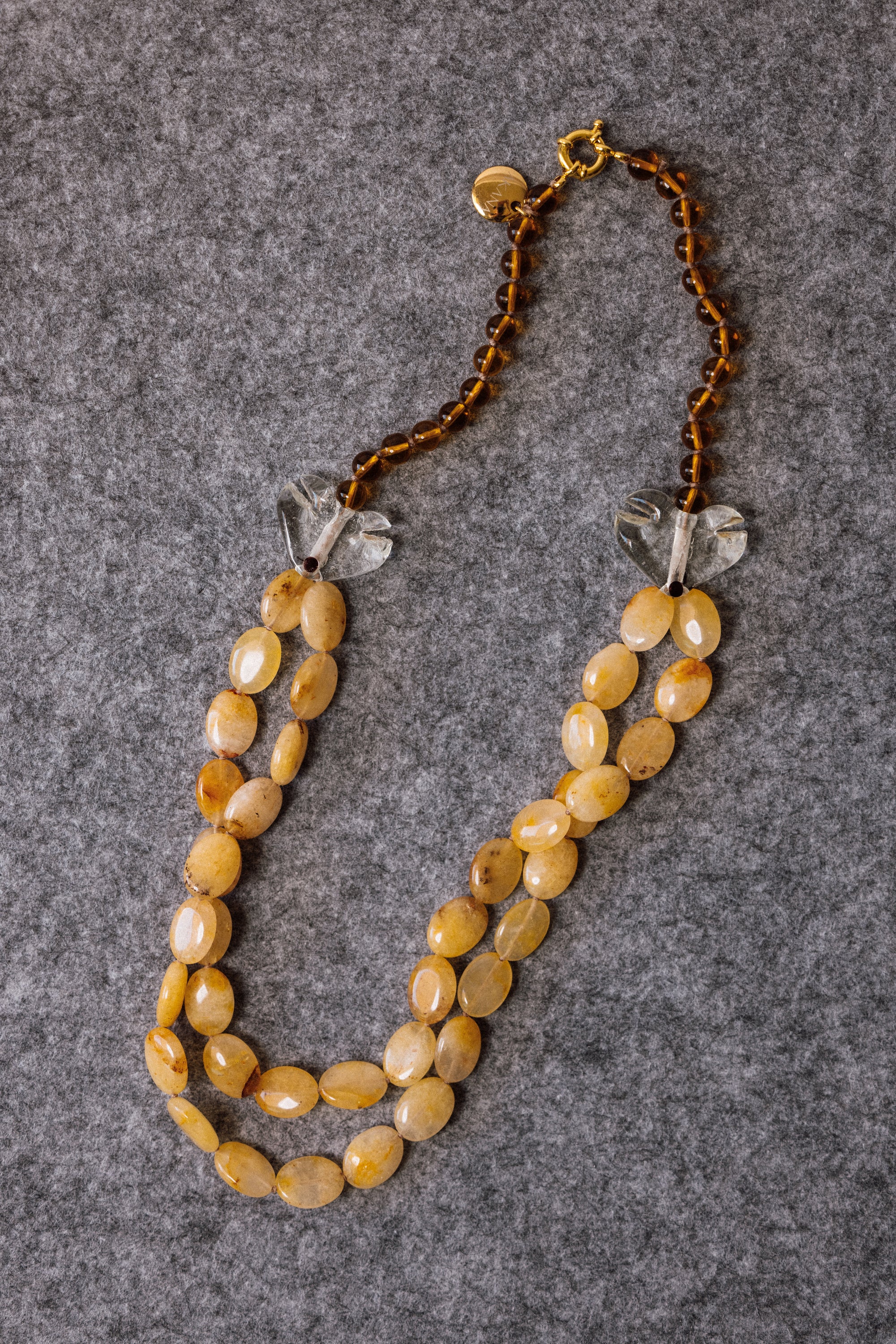 Fish in Murano glass + Crystal spheres + Natural moss agate stones / Stainless steel clasp with 18k gold plating