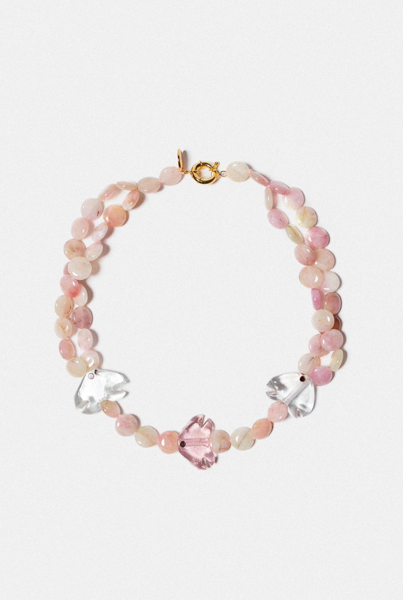 Murano glass fish + Natural Agate Stones + Stainless Steel Clasp with 18k Gold Plating
