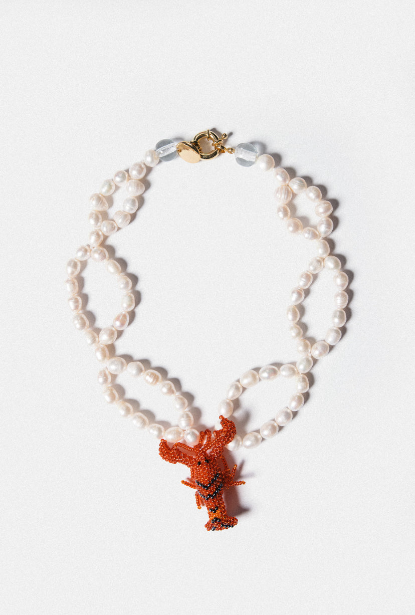 100% Natural Pearls + Murano Glass + Pendant made of Acrylic Beads / Stainless Steel Clasp + 18k Gold Plating