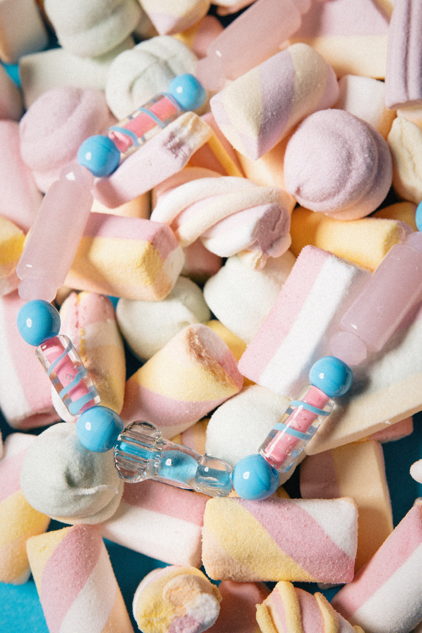Murano glass / Crystal spheres / Ceramic / Stainless steel clasp with 18k gold plating