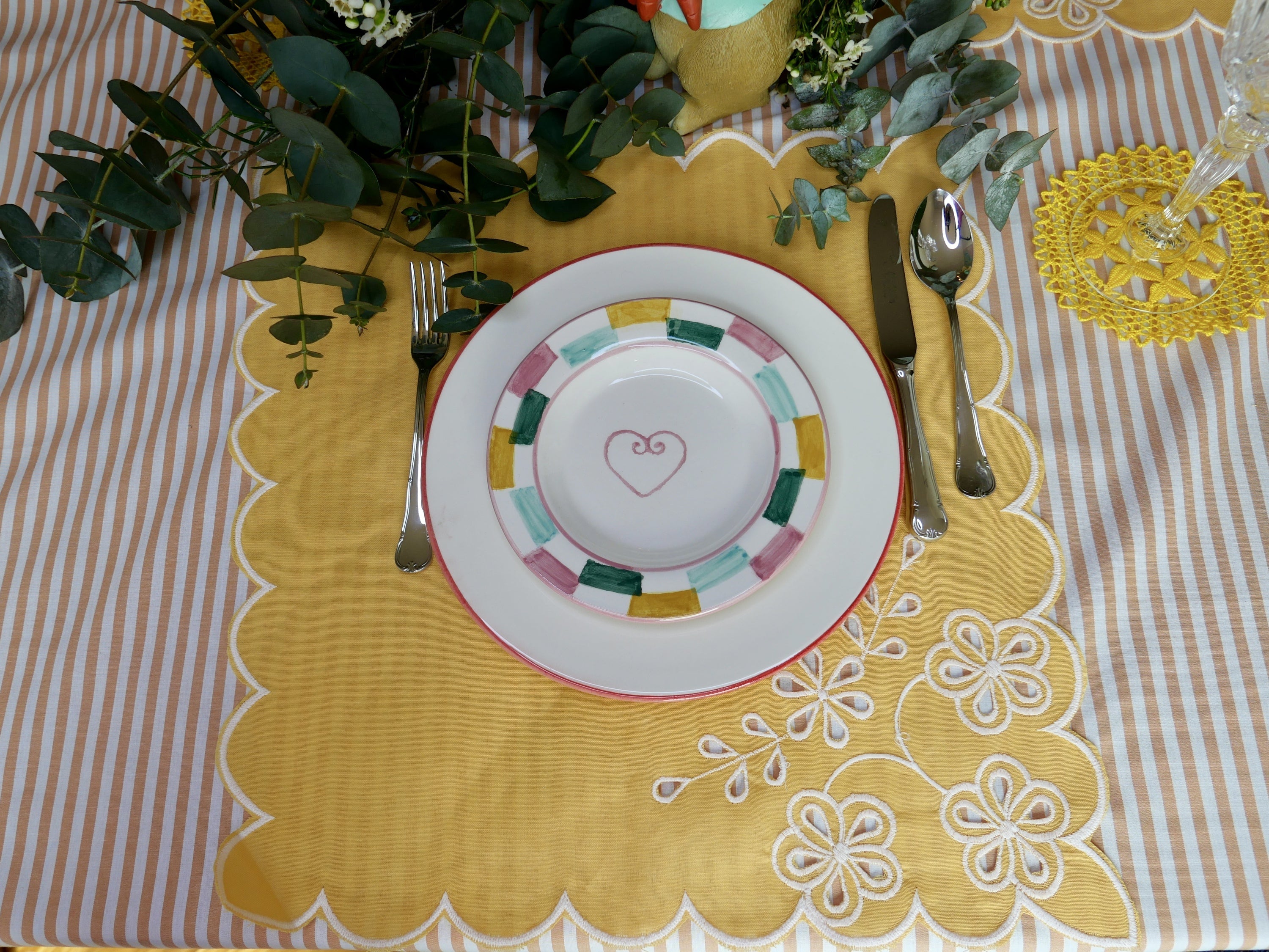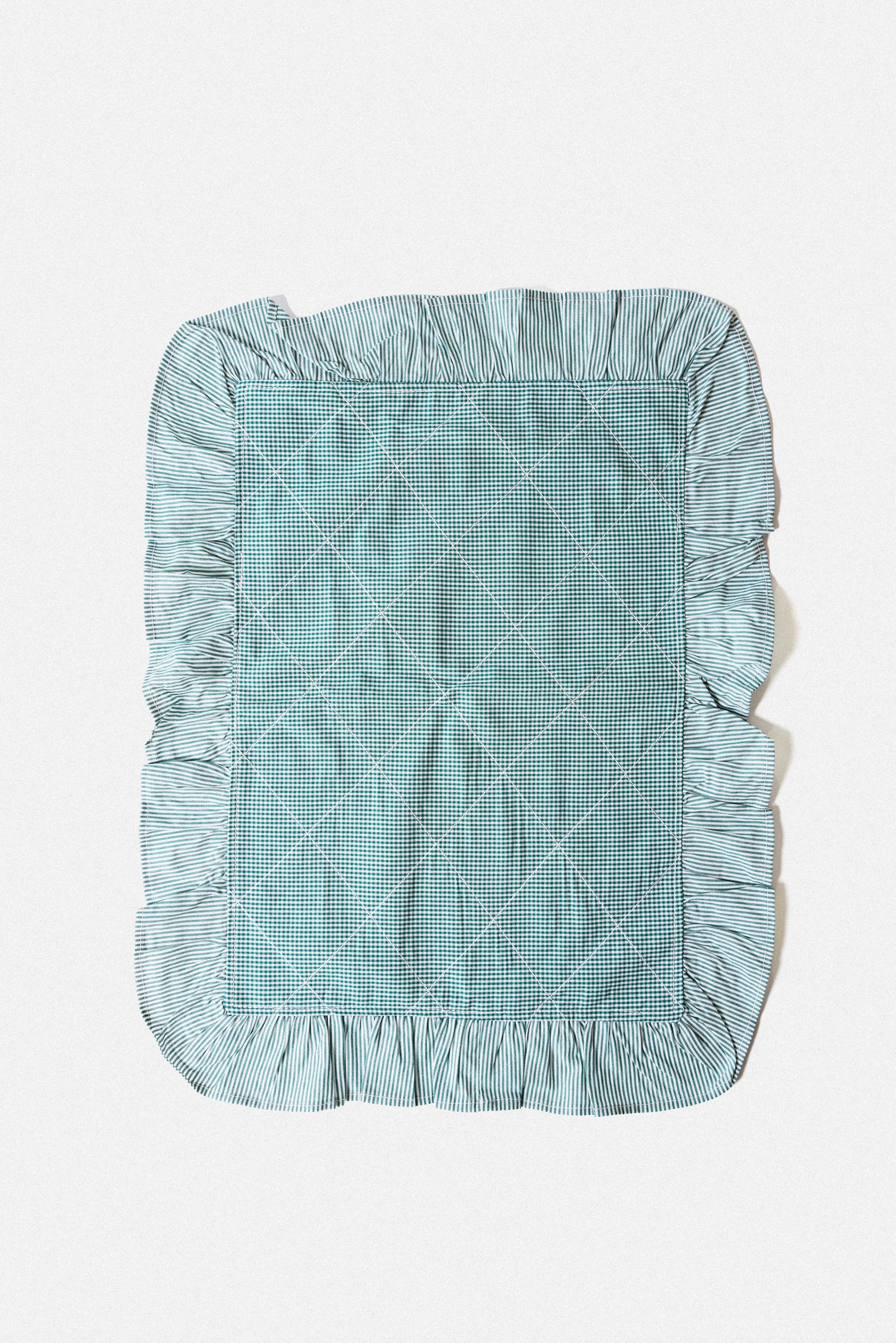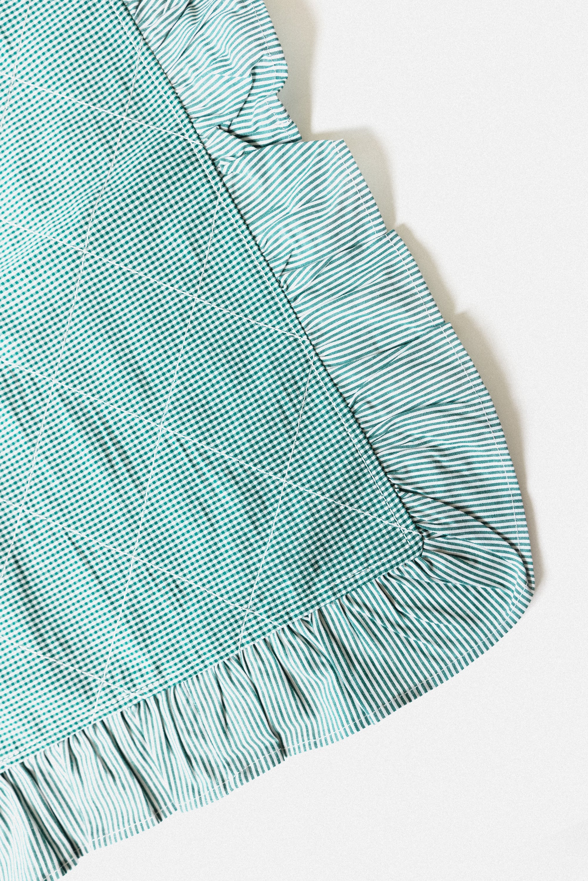 Combine it with our Napkin Floral. Artêmis mix placemat in green and white Vichy check with stripes. It features ruffles around the edge. Handmade with all our love in Portugal.