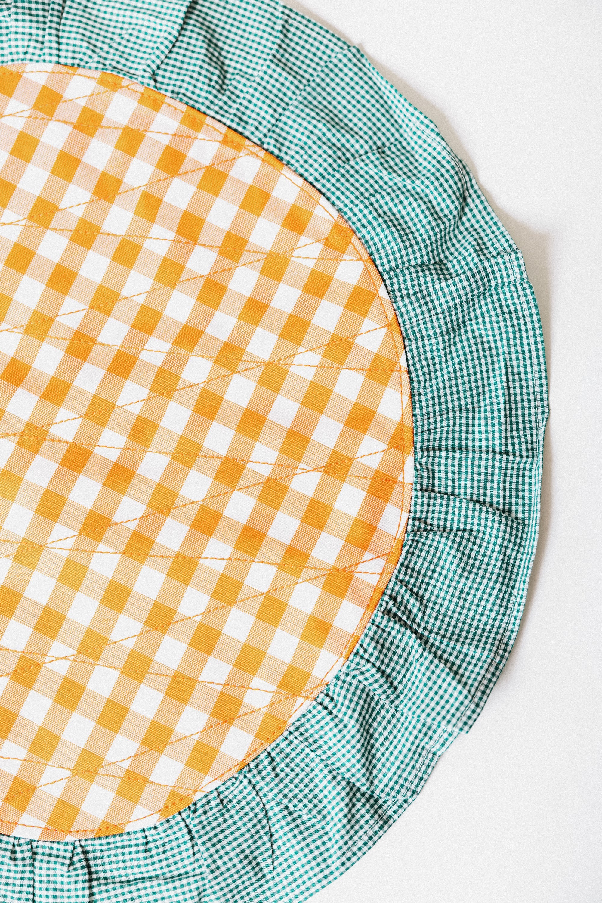 Orange mix placemat in orange Vichy check with stripes. Handmade with all our love in Portugal.