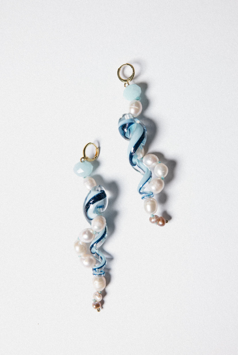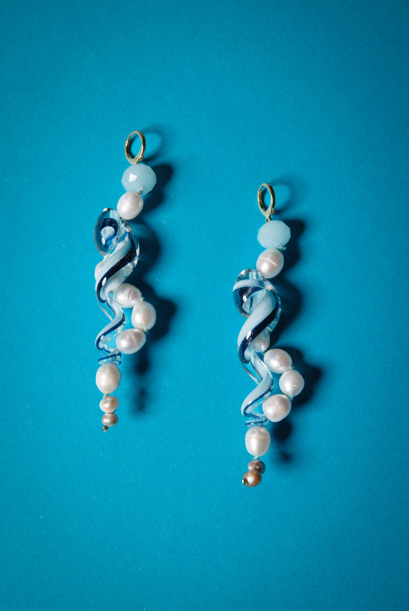 100% Natural Pearls+Murano+Crystal Spheres+ Stainless Steel Clasp with 18k Gold Plating