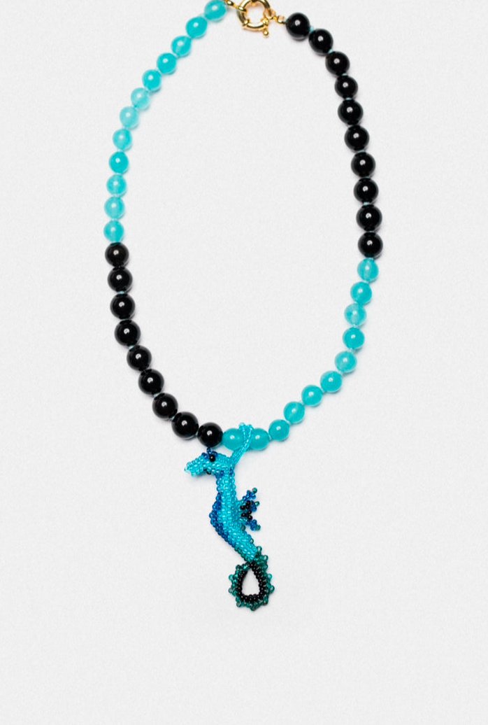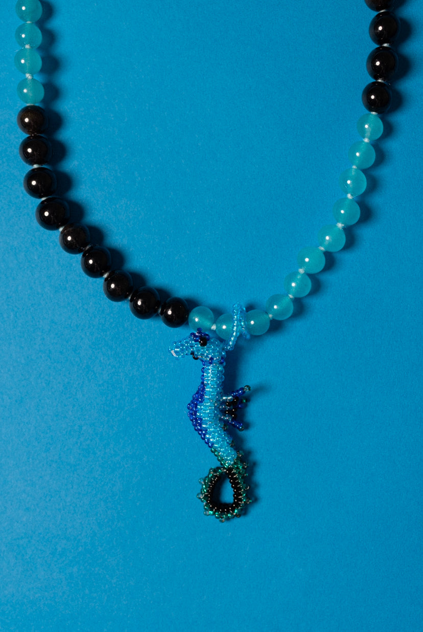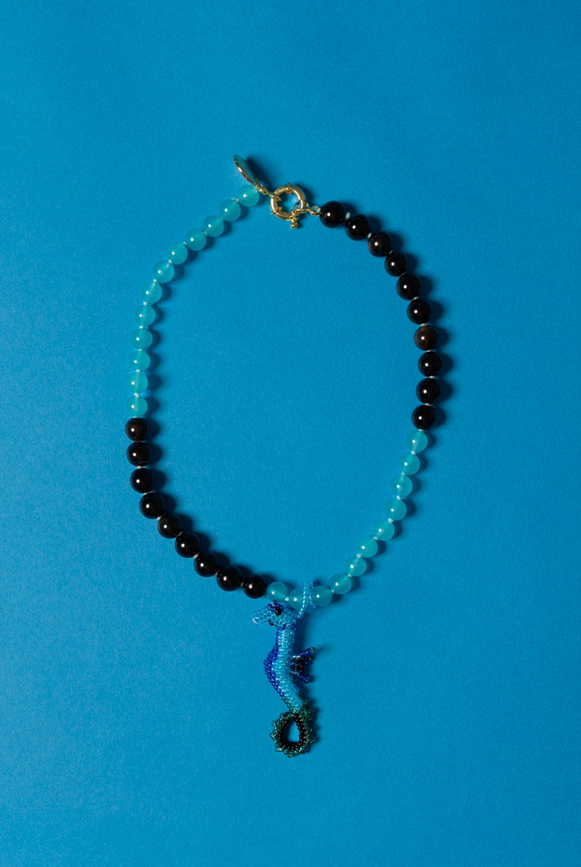 Acrylic Beads pendant + Natural Onyx and Agate Stones+ Stainless Steel Clasp with 18k Gold Plating