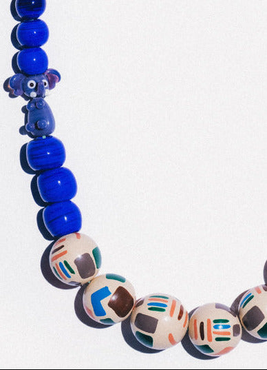 Murano Glass + Painted Wooden Spheres + 18k Gold-Plated Stainless Steel Clasp
