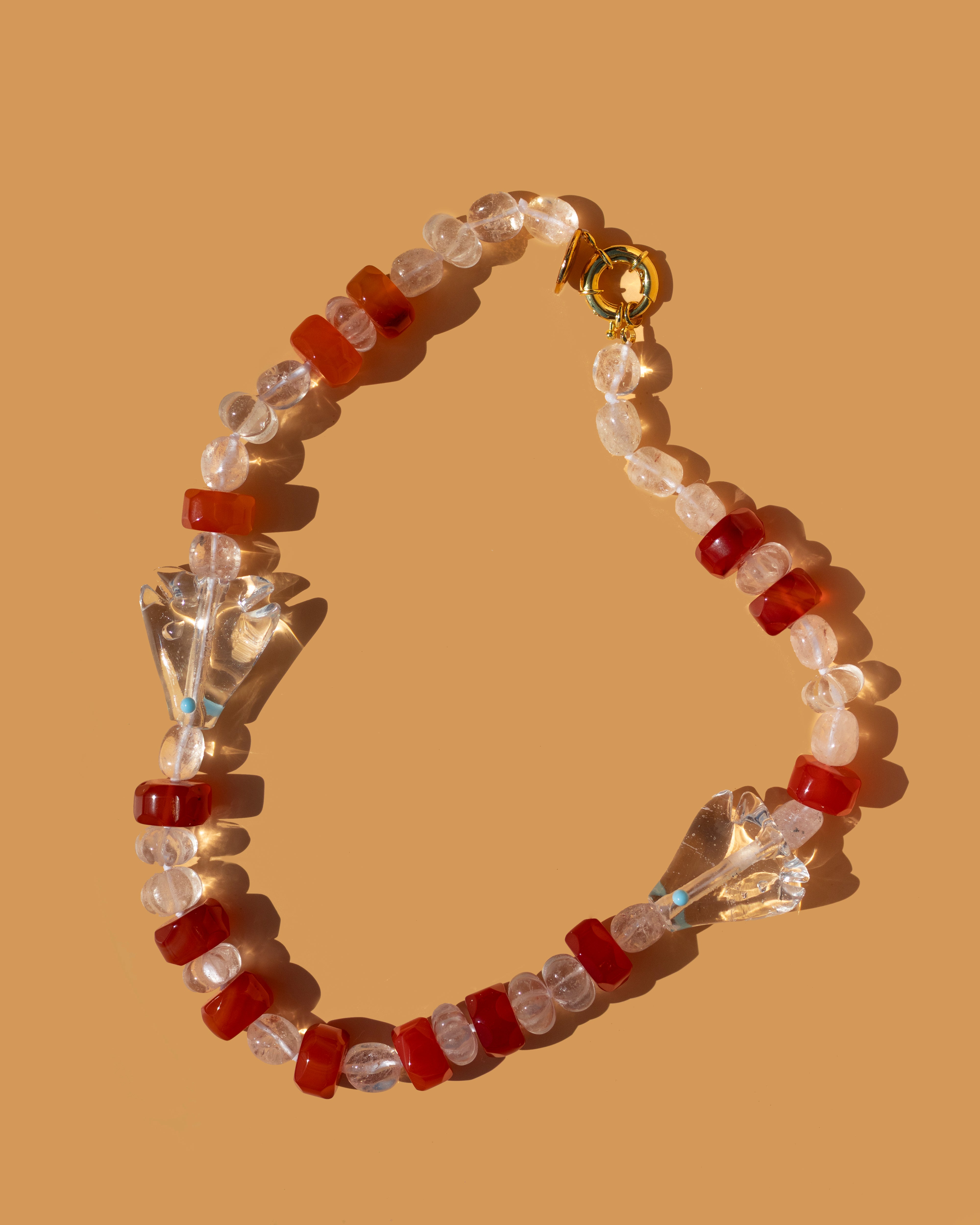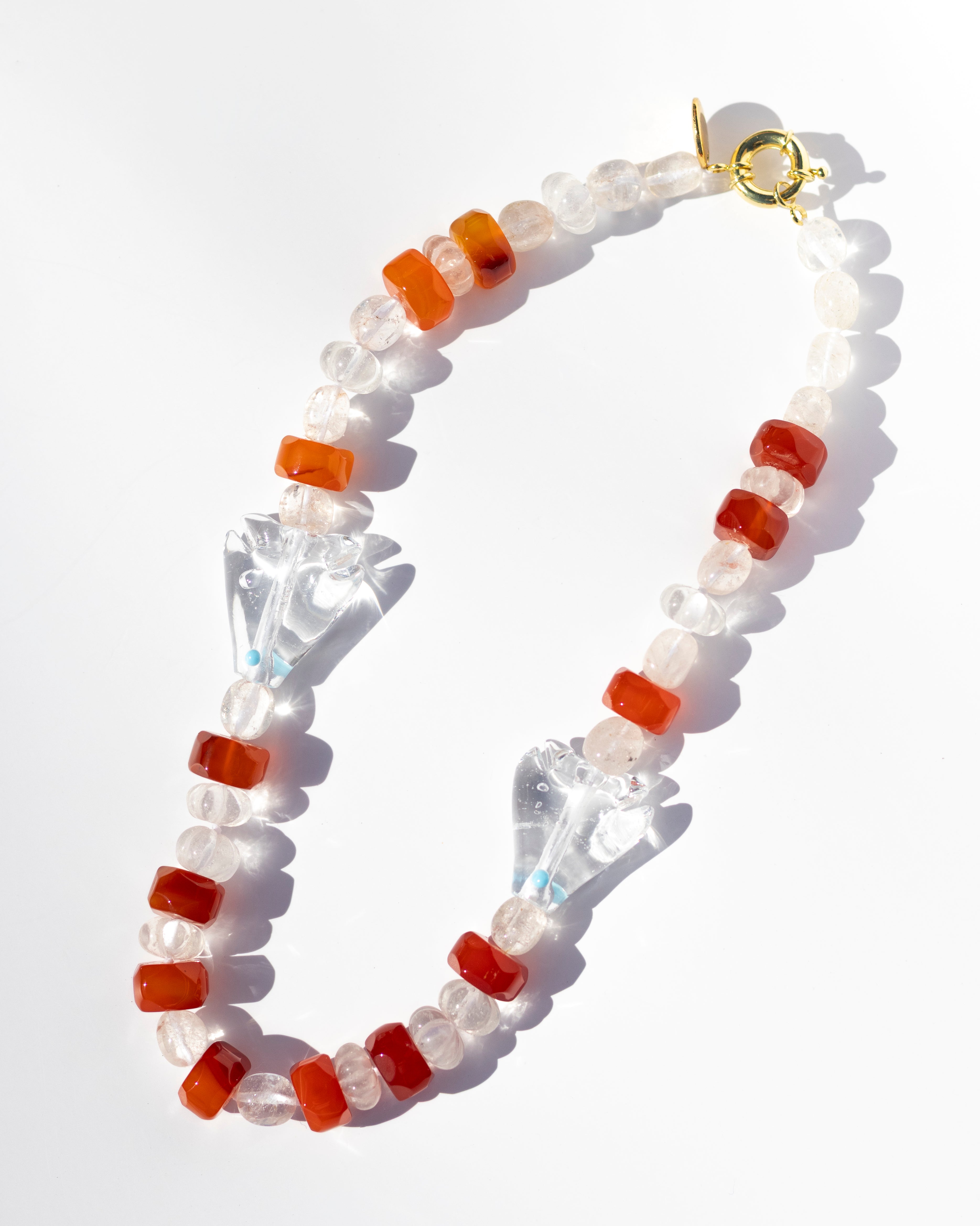 Fish in Murano glass + Natural Agate Stones + Natural Quartz Crystal Stones + Natural Apatites Stones + Stainless Steel Clasp with 18k Gold Plating