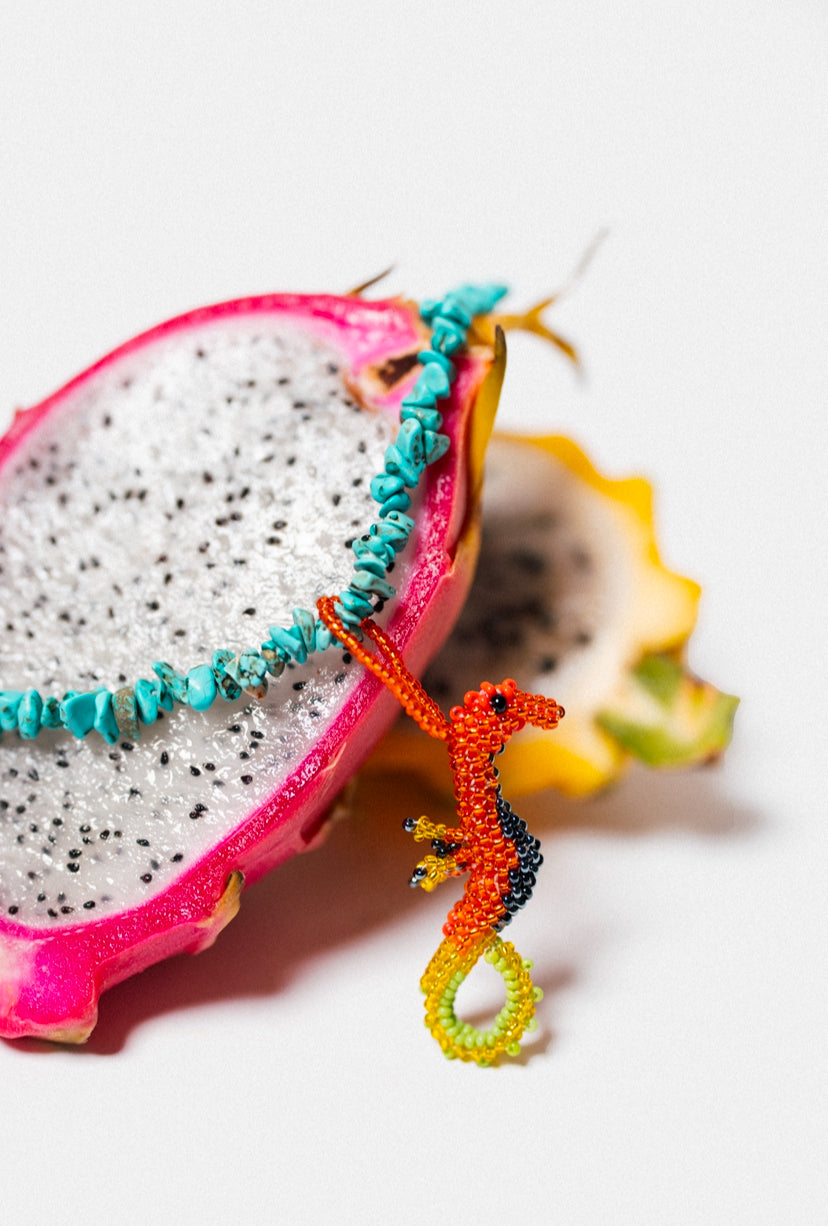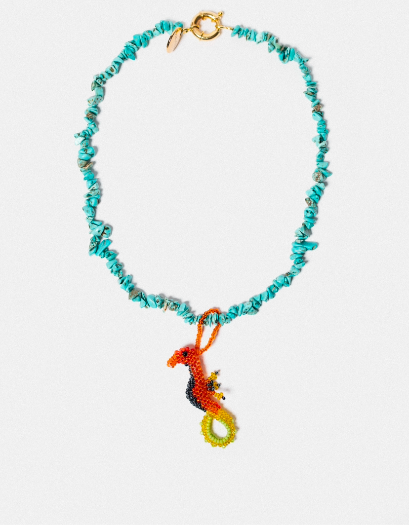 Natural Turquoise Gravel Stones + Seahorse made of Acrylic Beads