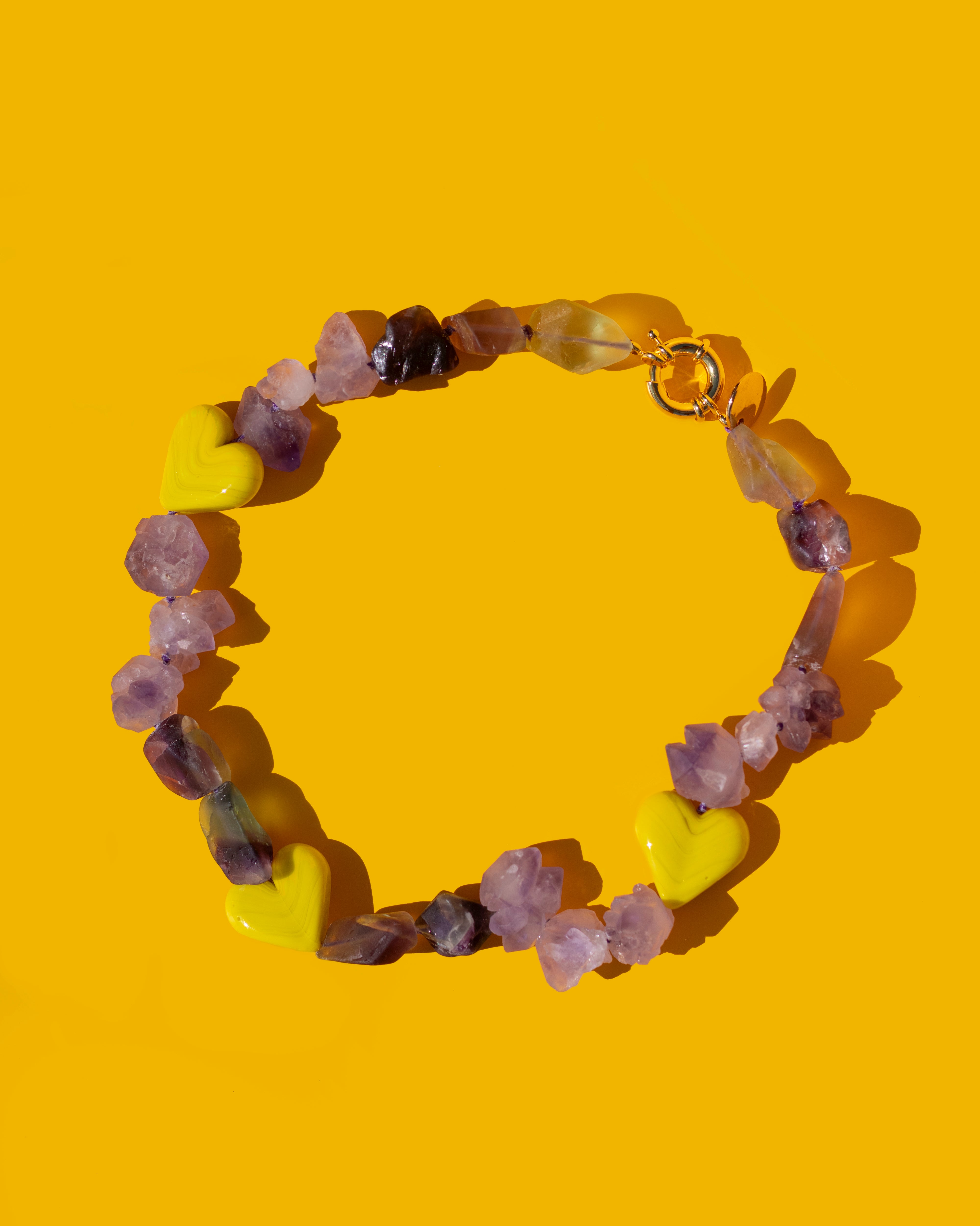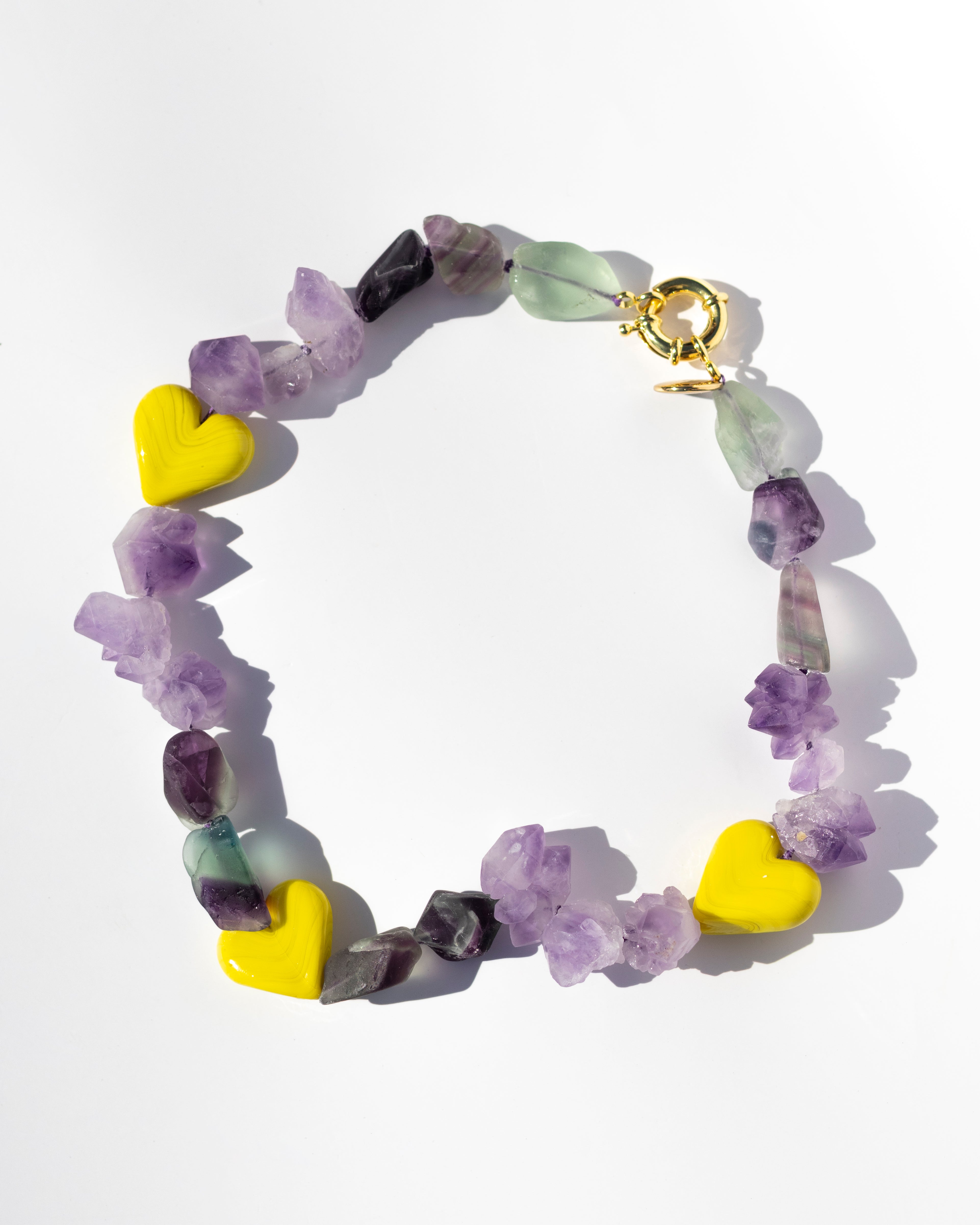 Natural Fluorite and amethyst Stone+Murano Glass+Stainless Steel Clasp + 18k Gold Plating