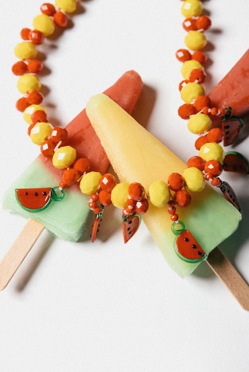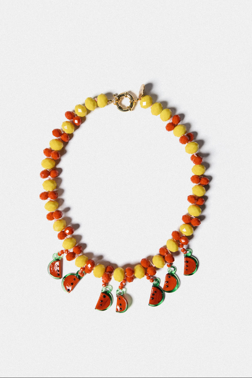 Murano glass Watermelon + Crystal spheres / Stainless steel clasp with 18k gold plating