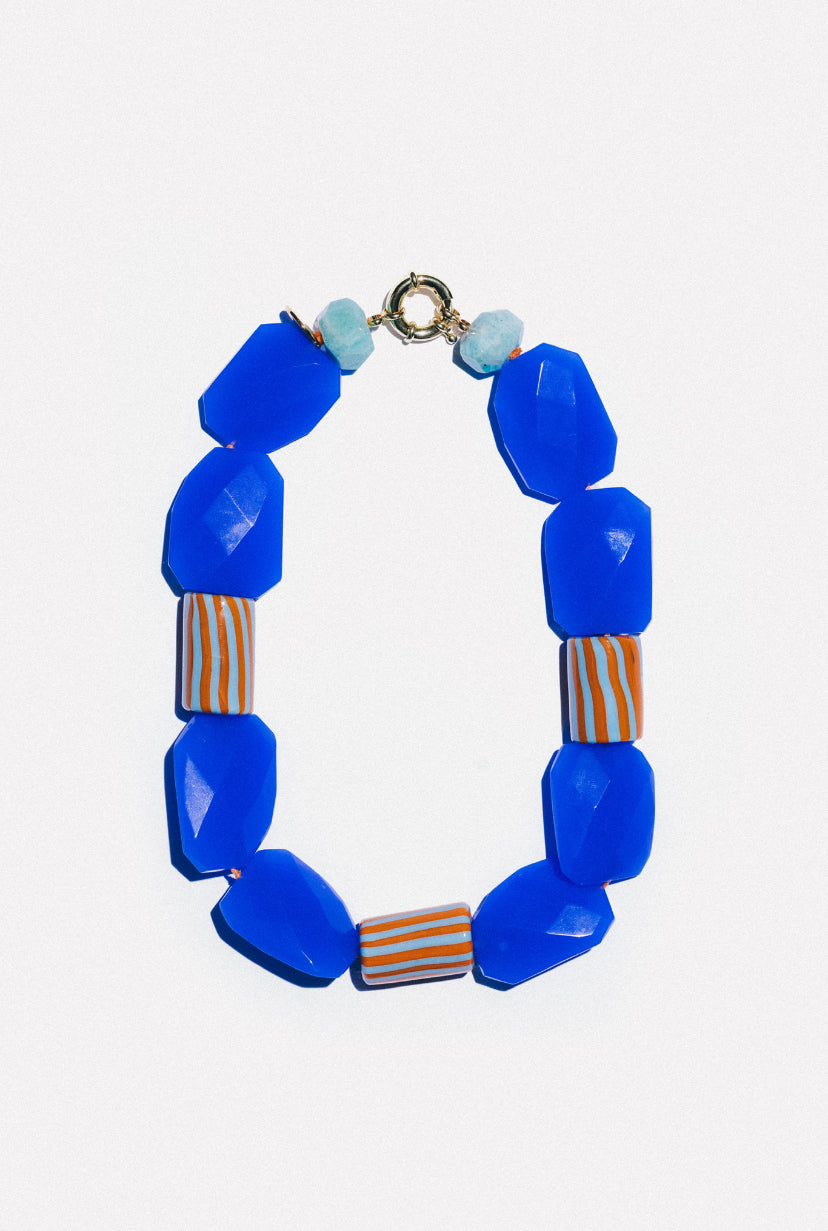 O Colar ALICE BLUE faz parte da coleção Akana Constelação Selvagem. Conta a história de uma Alice reinventada, uma personagem que se torna uma metáfora para os nossos sonhos e a ambição inabalável de sermos grandiosos. Em vez de cair no País das Maravilhas, esta Alice embarca numa viagem onírica e aterra na vibrante Amazónia.