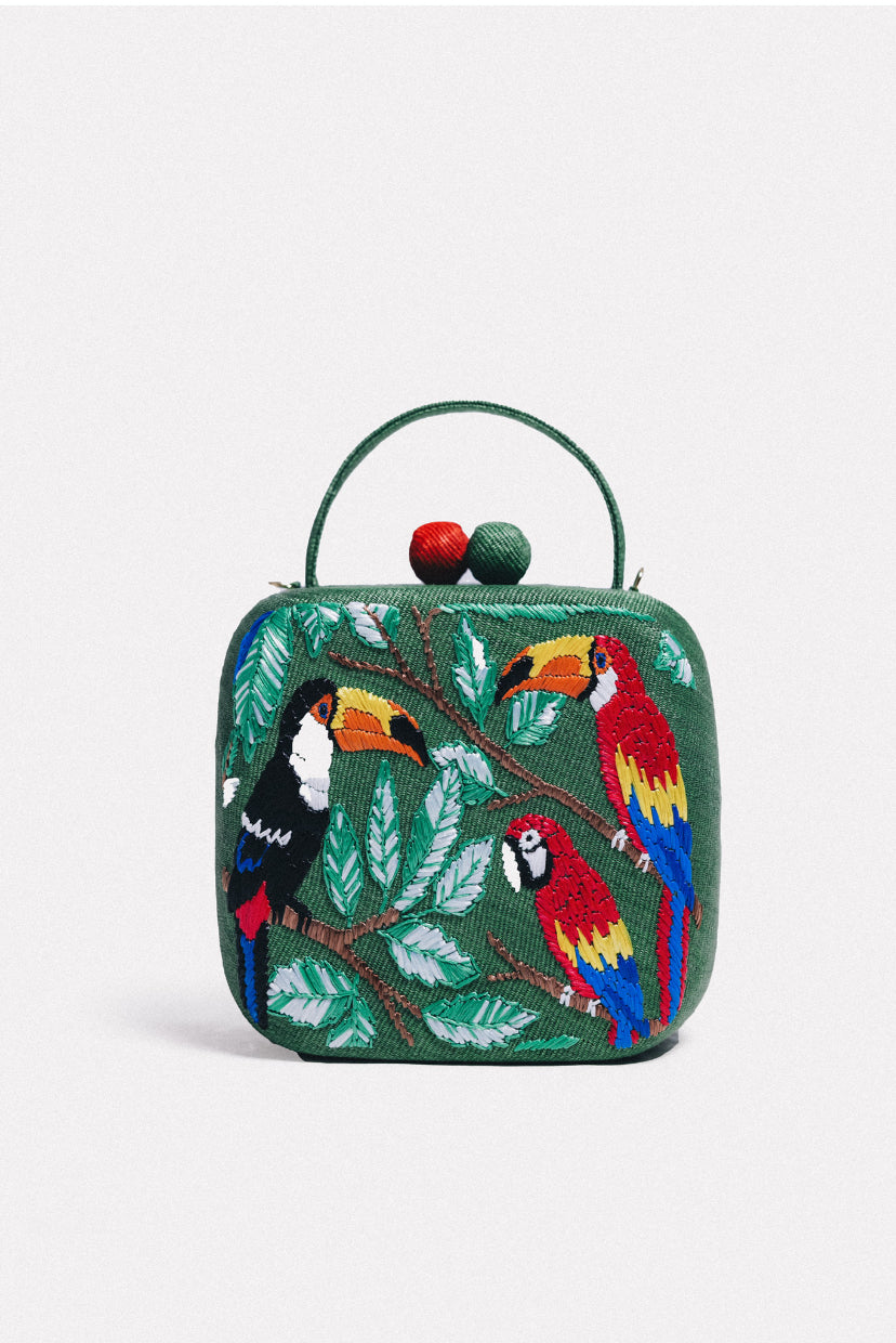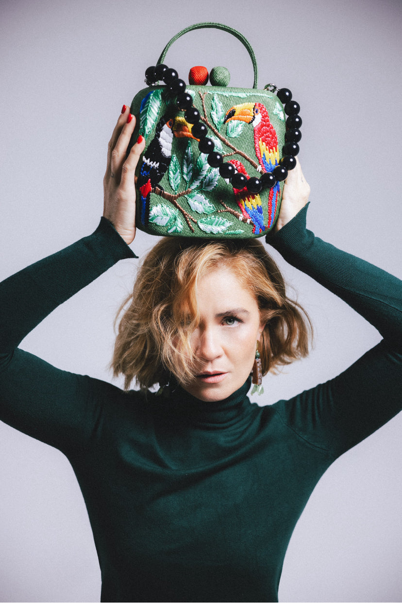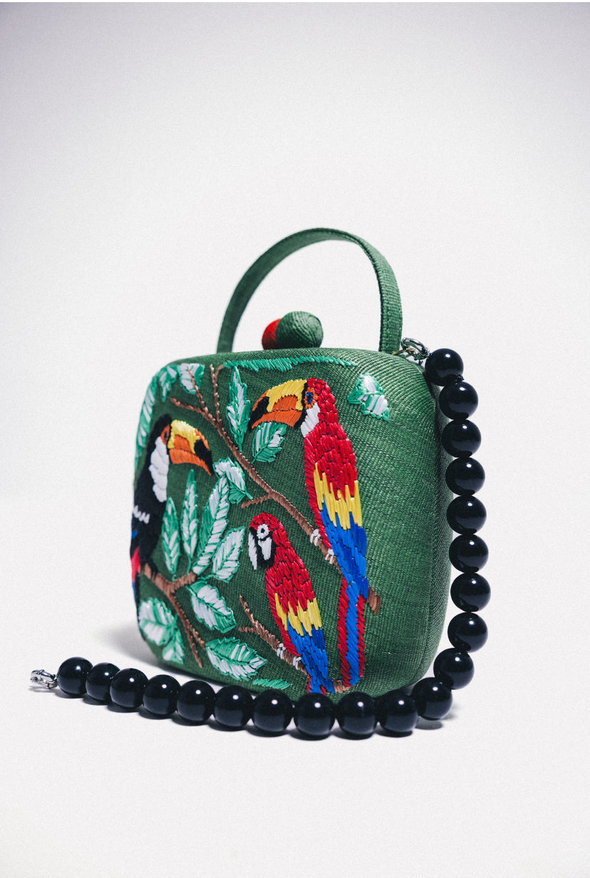 Esta criação, que apresenta a ilustração da artista visual e designer Erika Lima, é um projeto construído sobre uma base de materiais naturais, como fibras, couro e madeira, e é meticulosamente bordada à mão . A peça faz parte da coleção Akana (Constelação Selvagem) e representa um fragmento desta aventura mágica, incorporando a emoção, o desejo e a beleza encontrados na natureza.