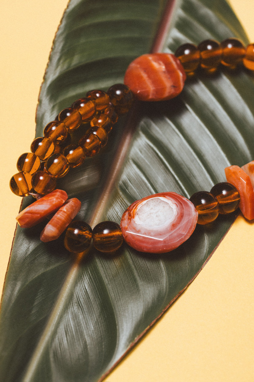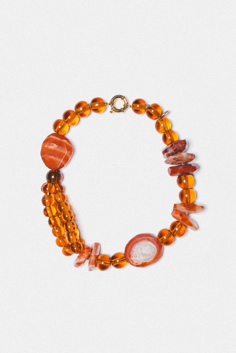 As pedras de ágata natural e do Botswana, com os seus formatos orgânicos, são cuidadosamente trabalhadas na nossa oficina, tornando-as peças exclusivas.Os detalhes em metal banhado a ouro, como os fechos e as etiquetas, fazem parte da nossa linha de joias premium. A garantia destes detalhes é assegurada por um revestimento de sete camadas de ouro de 18 quilates .