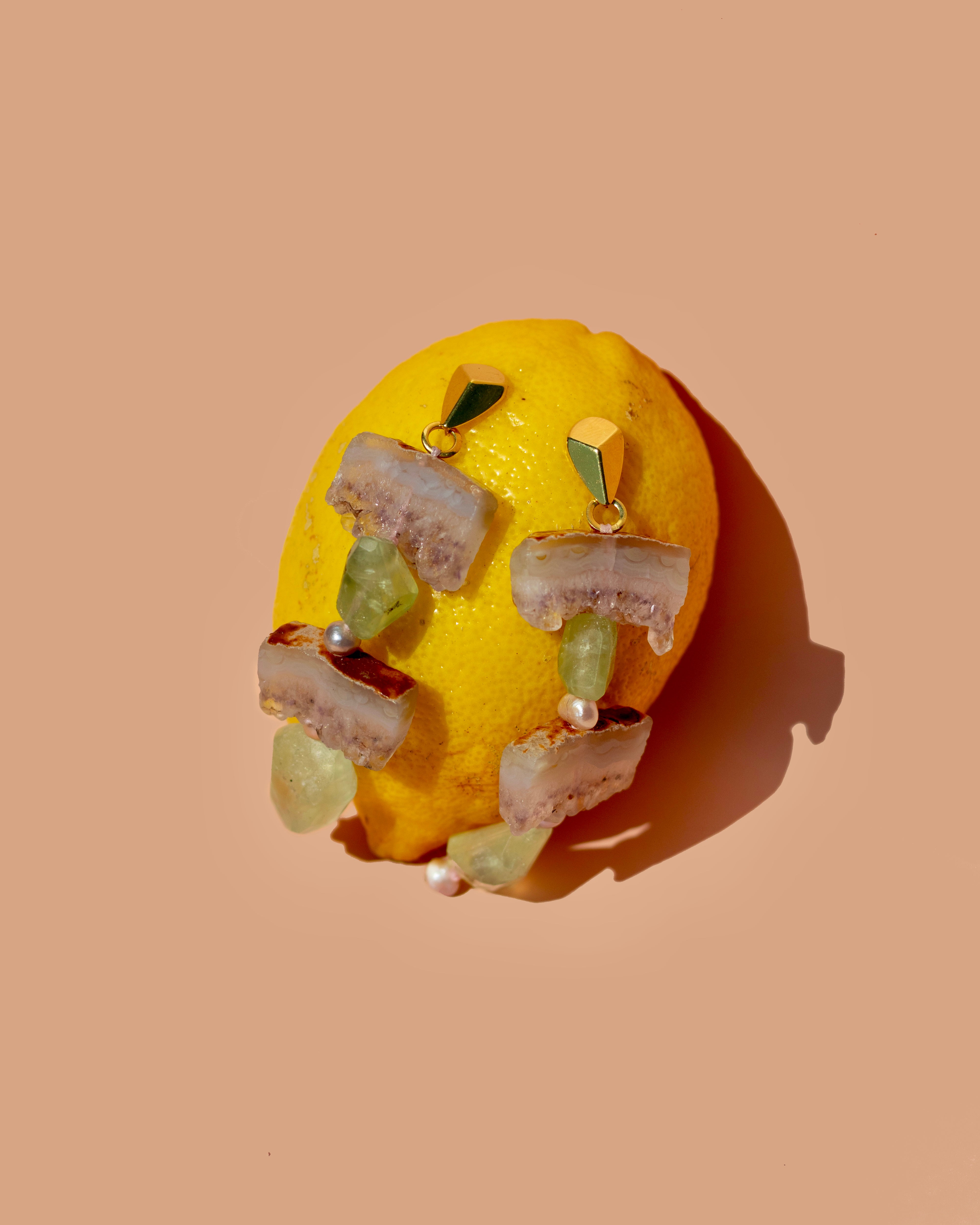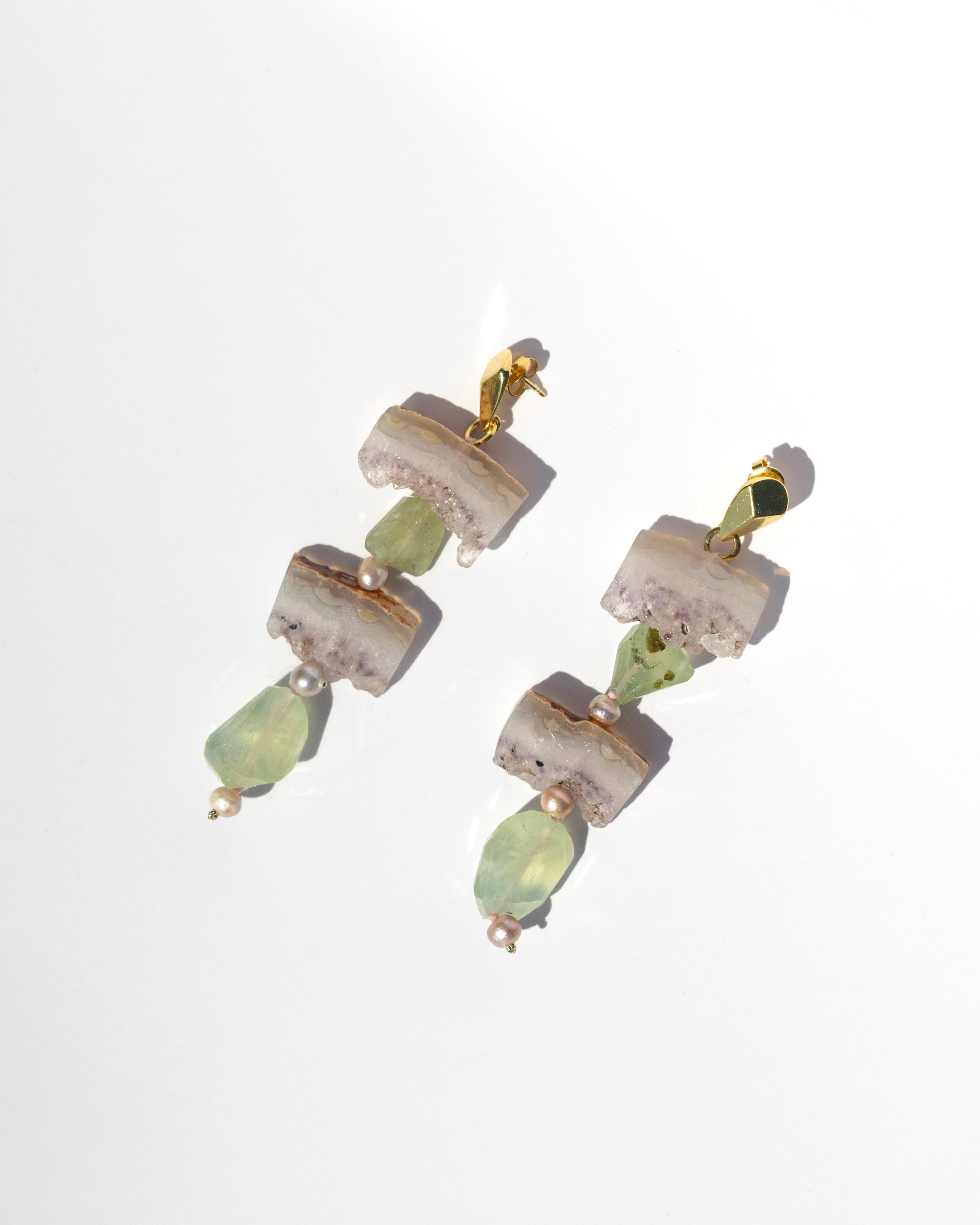 Natural Amatiste Stone+ Natural Prehinite Stone +Stainless Steel Ring + 18k Gold Plating
