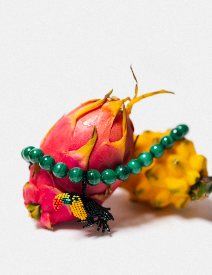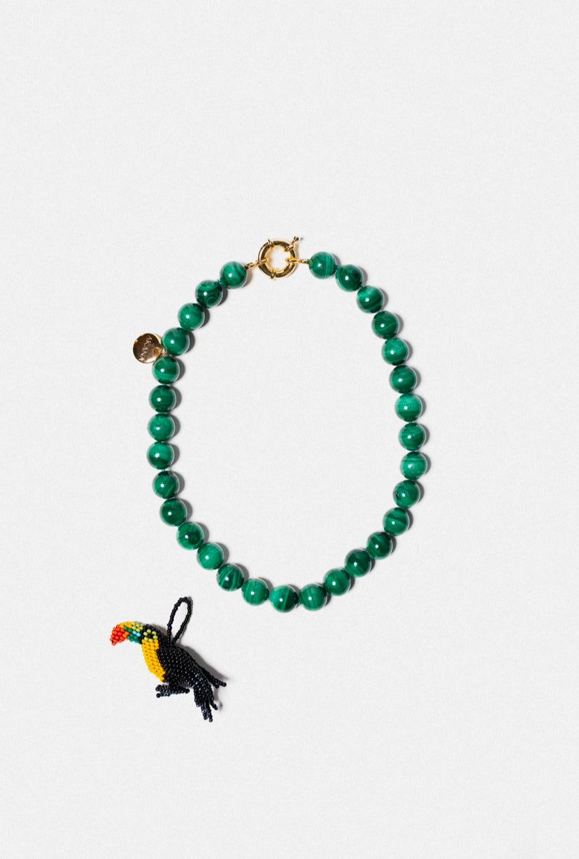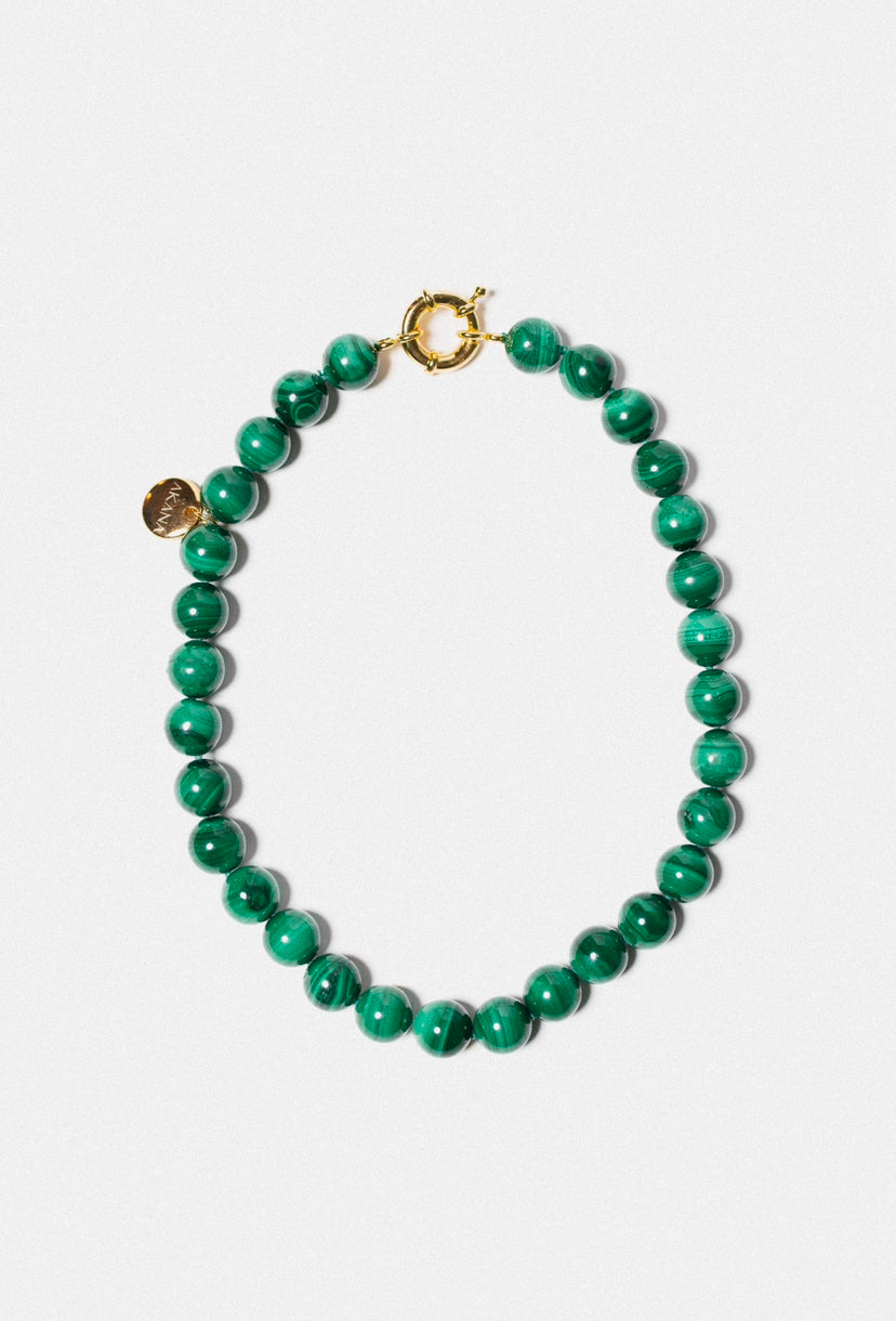 Acrylic Beads pendant + Natural Malachite Stones+ Stainless Steel Clasp with 18k Gold Plating