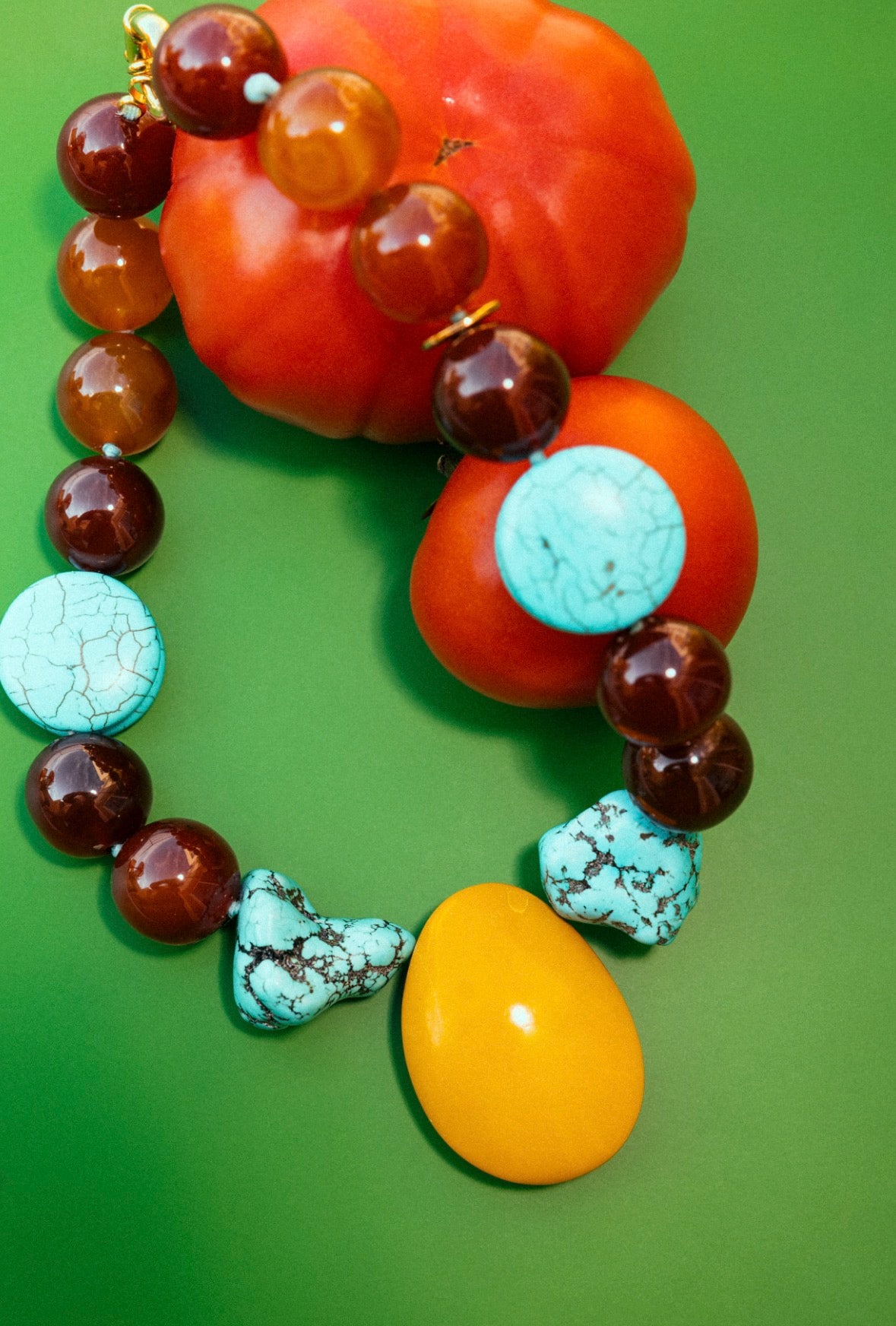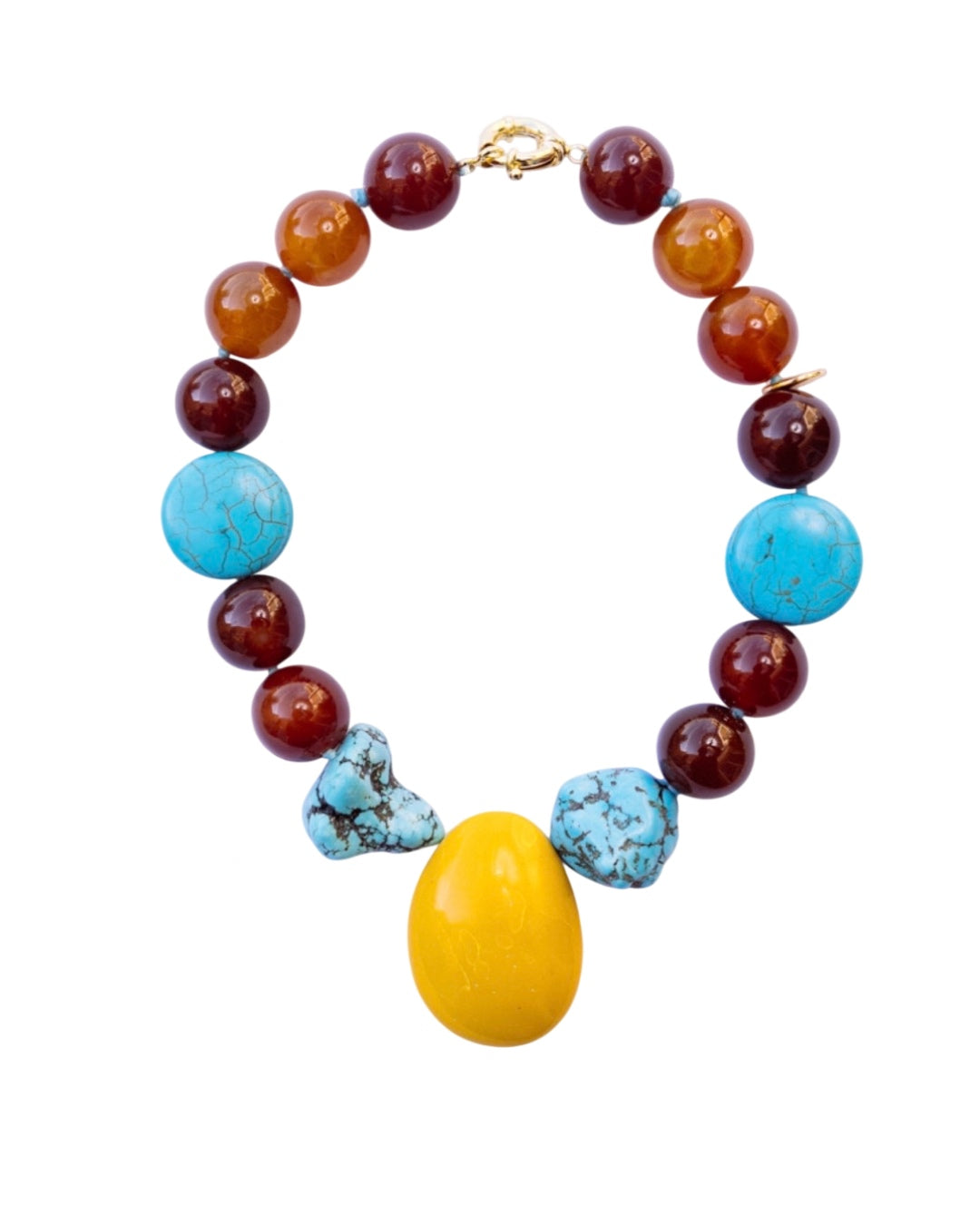 Turquesa Natural + Esferas de Ágata + Gota de Pedra-Sabão Esculpida à Mão + Fecho em Aço Inoxidável Banhado a Ouro de 18k
