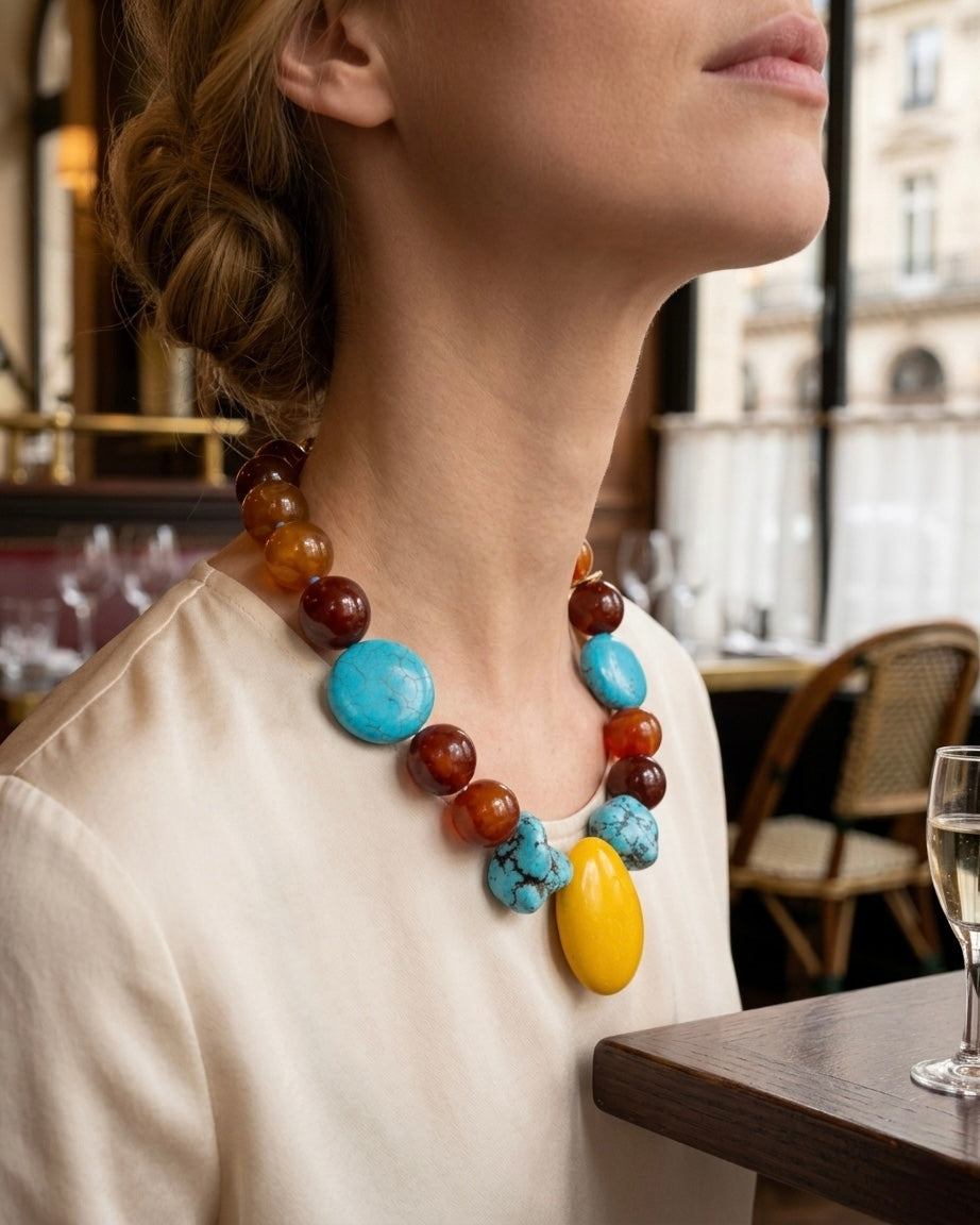 Um convite para residir na sua verdadeira essência e nutrir os seus sonhos mais profundos. O Colar Girassol nasce da narrativa Florescer, onde a natureza oferece um palco caprichoso sobre o qual o sobrenatural se torna a vida quotidiana. Serve como um lembrete constante, evocando a doçura inerente do viver.