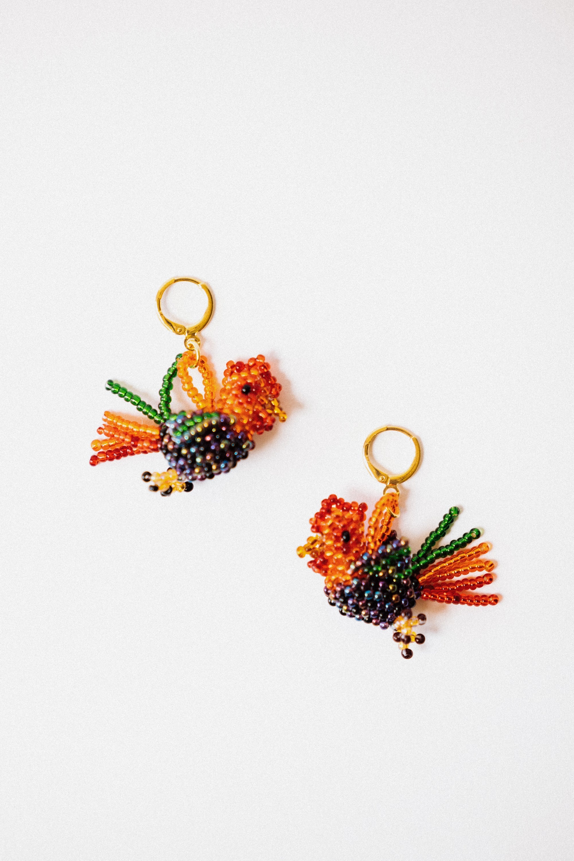 Galo feito com contas em acrílico / Argolas em Aço inoxidável + banho em ouro 18k