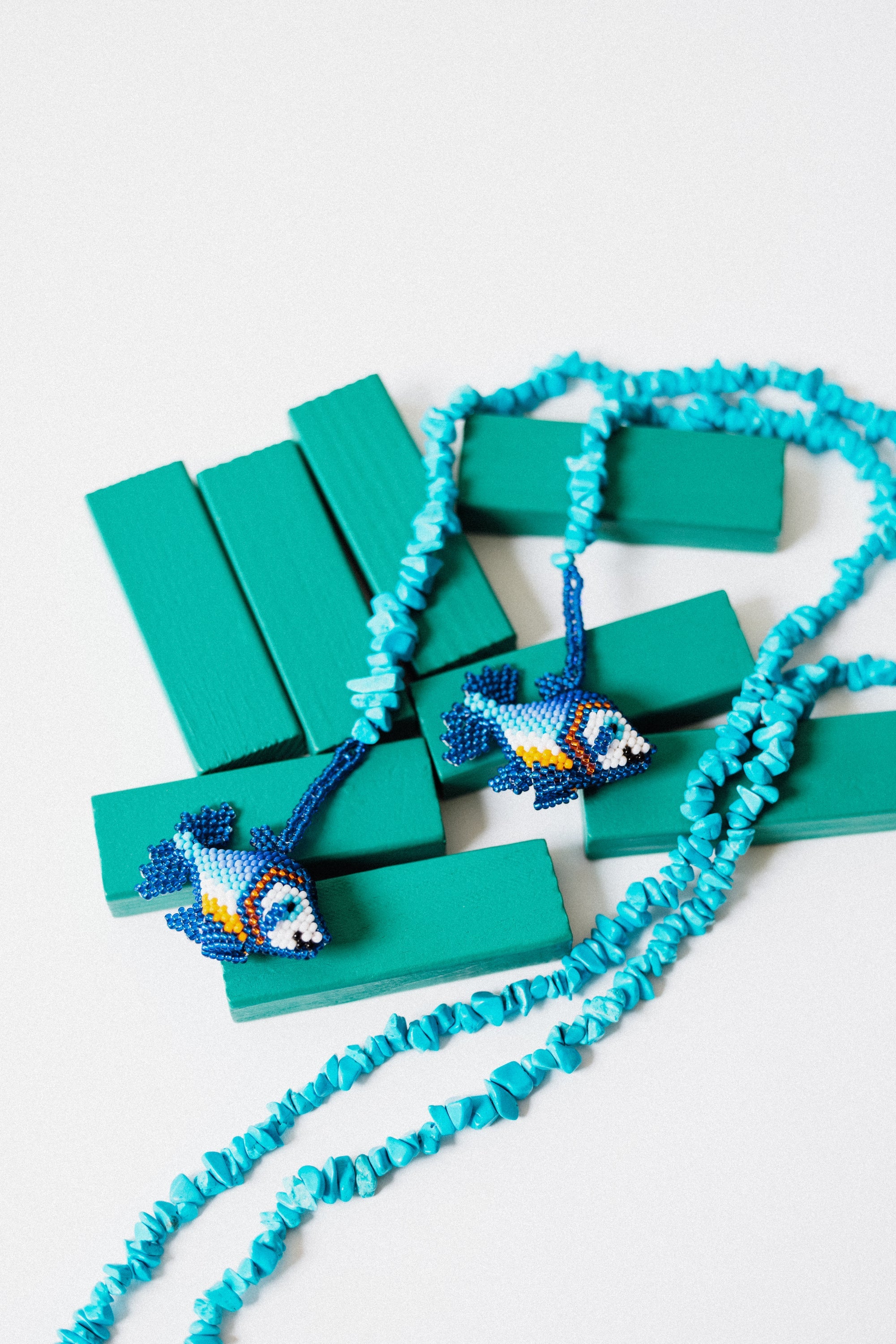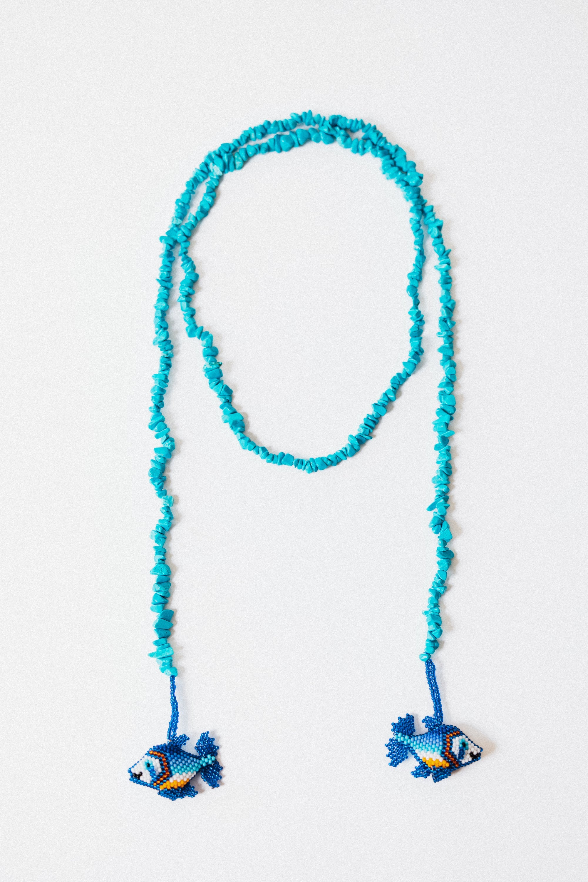 Pedras Naturais de Turquesa + Peixe contas em acrílico / Fecho em Aço inoxidável + banho em ouro 18k