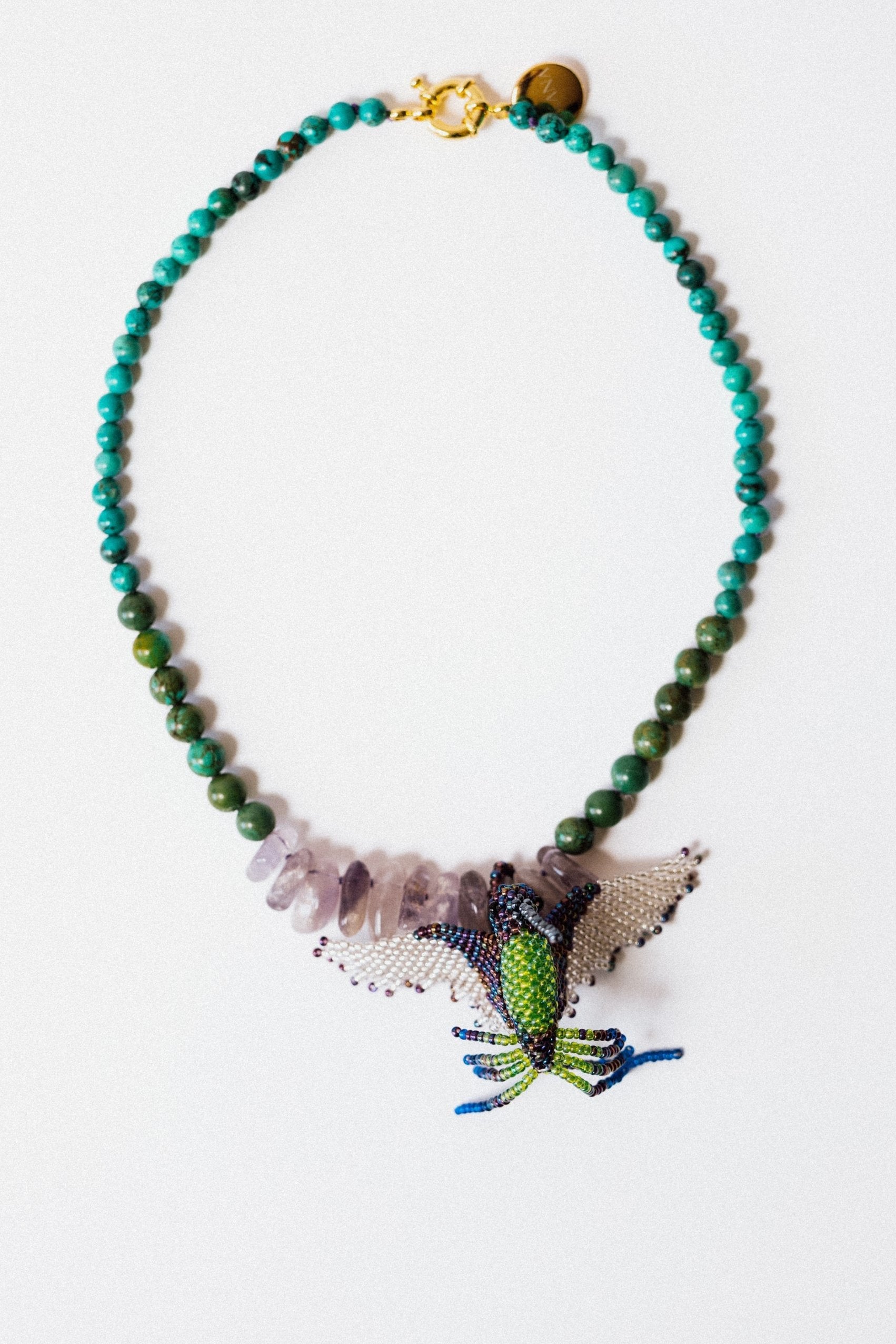 Pedras Naturais de Turquesas + Pedras naturais de Jade + Pedras naturais de Ametista + Pendente em contas de acrílico / Fecho em Aço inoxidável + banho em ouro 18k