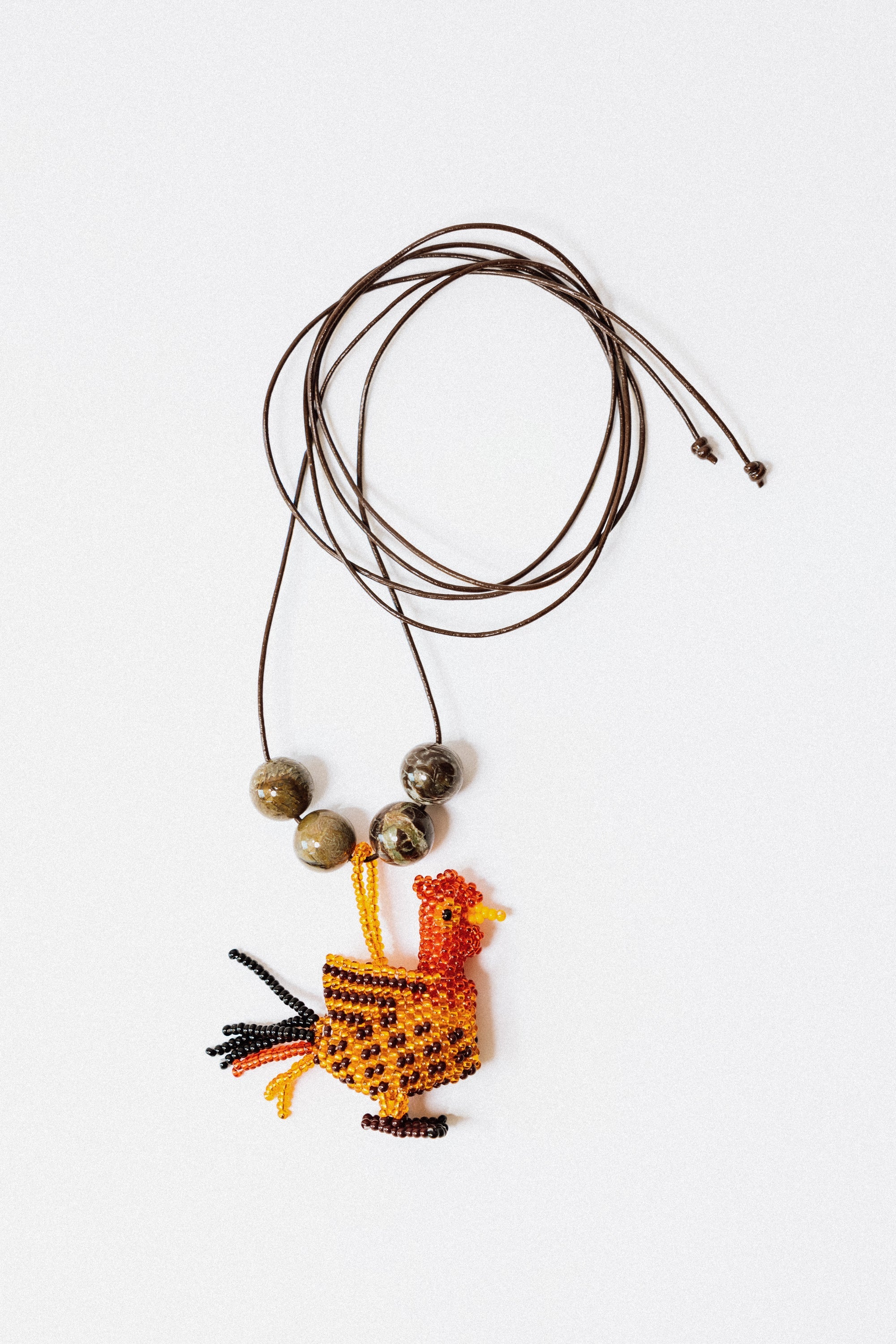 Couro Grego Castanho + Galo Contas em acrílico + Pedras Naturais Onix Castanho