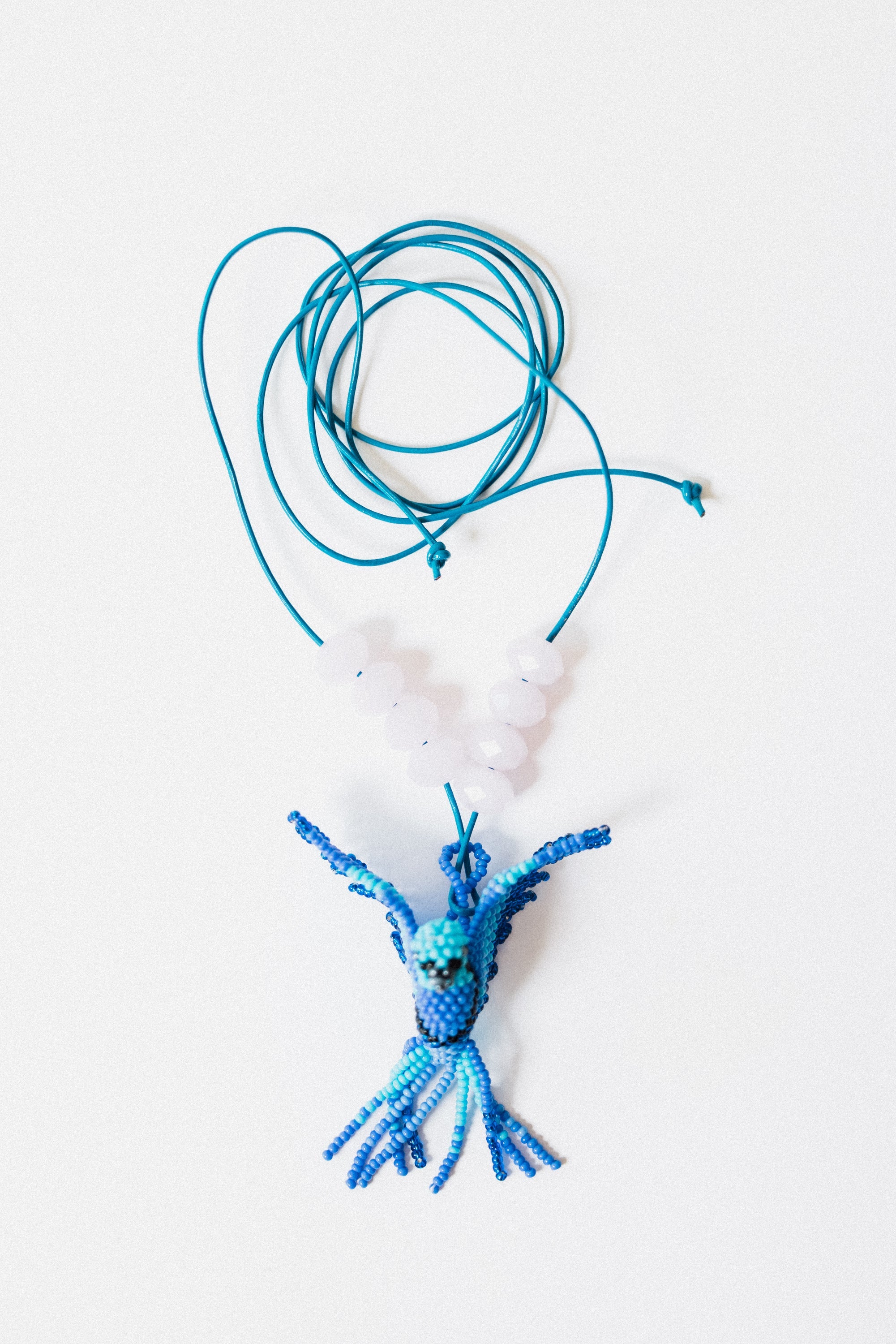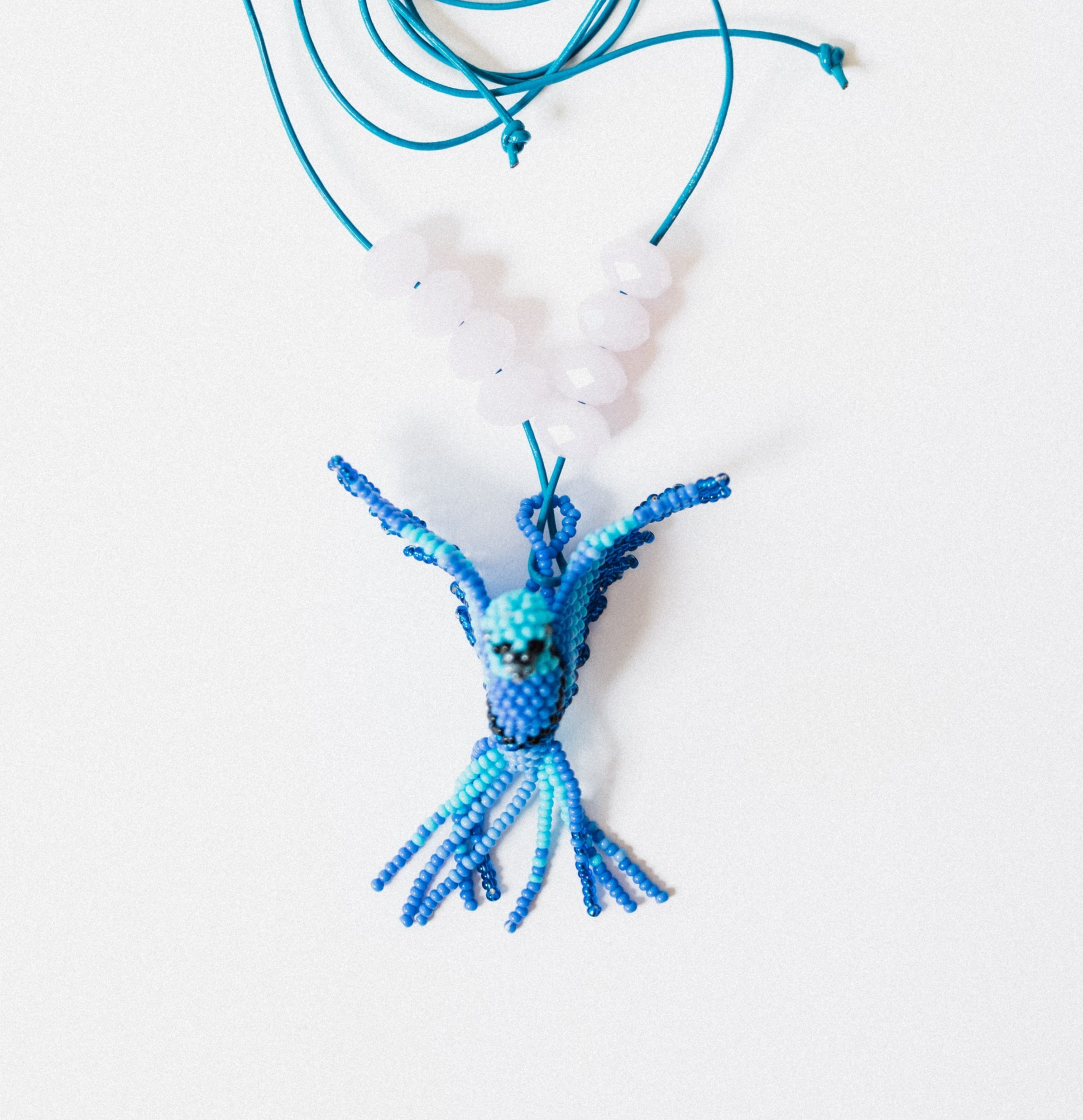 Couro Grego azul + Pássaro Contas em acrílico + Esferas de Cristal Rosa