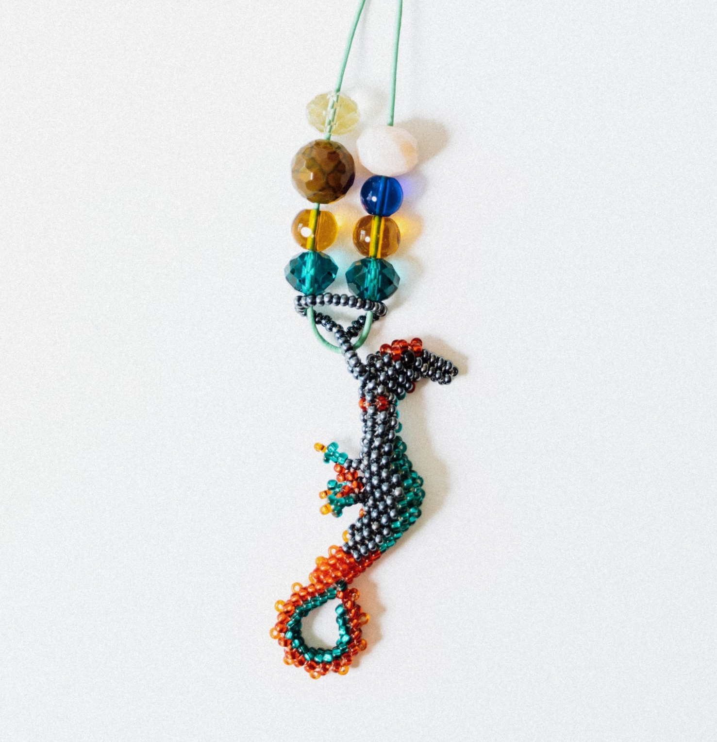 Couro Grego Verde + Cavalo marinho Contas em acrílico + Esferas de Cristal