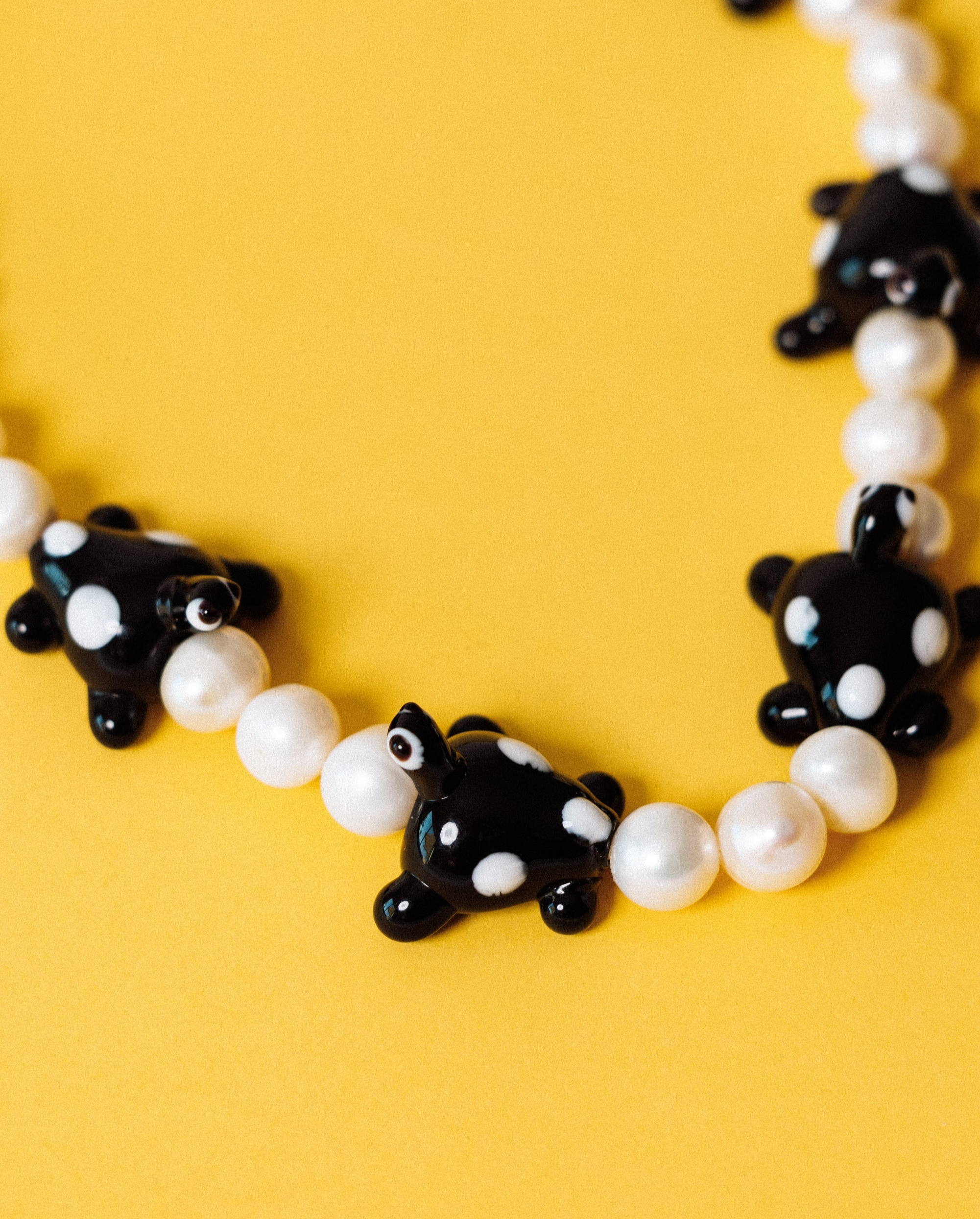 Tartarugas em Murano de vidro + Pérolas 100% Natural