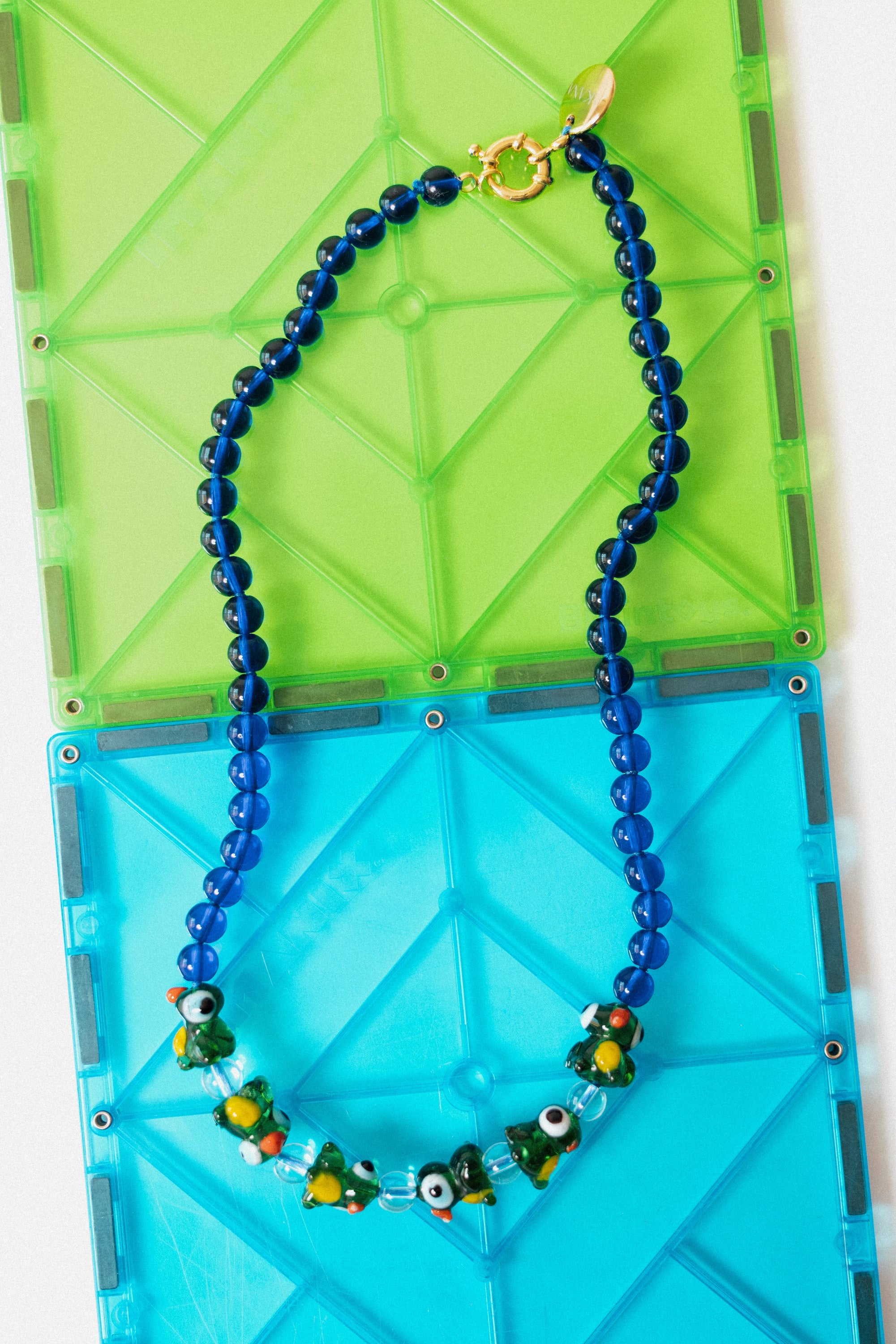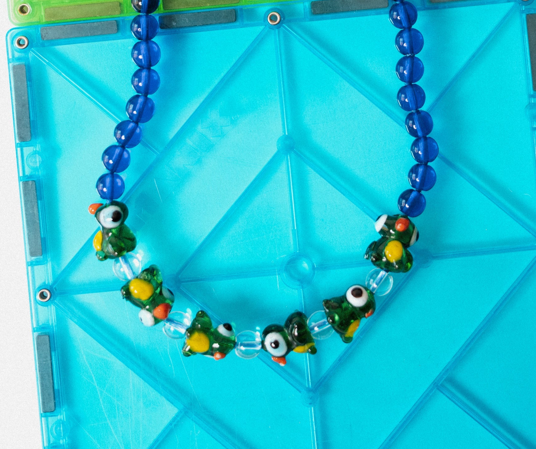 Papagaio em Murano de vidro + Esferas de Cristal / Fecho em Aço inoxidável + banho em ouro 18k