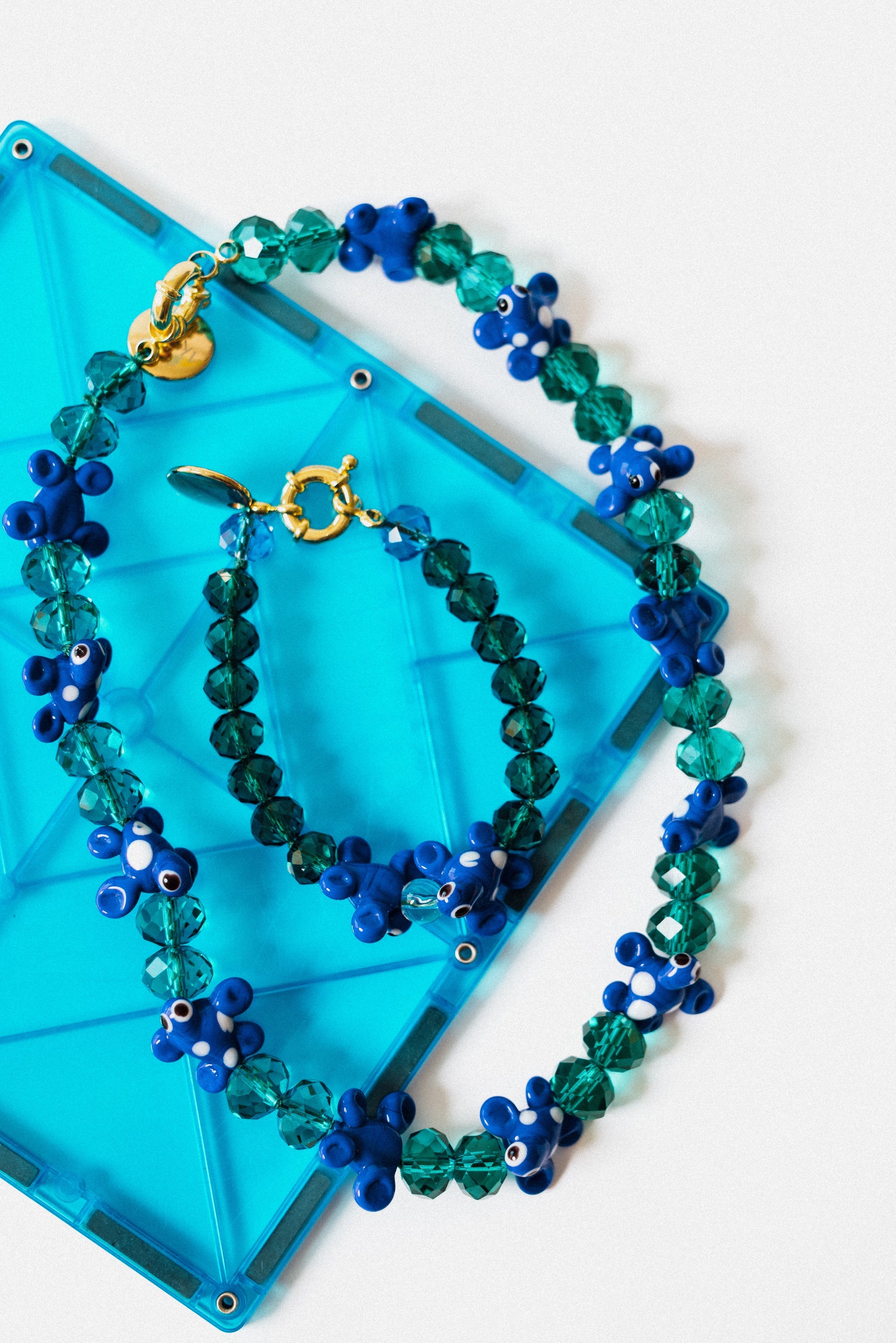 Tartaruga em Murano de vidro + Esferas de Cristal / Fecho em Aço inoxidável + banho em ouro 18k