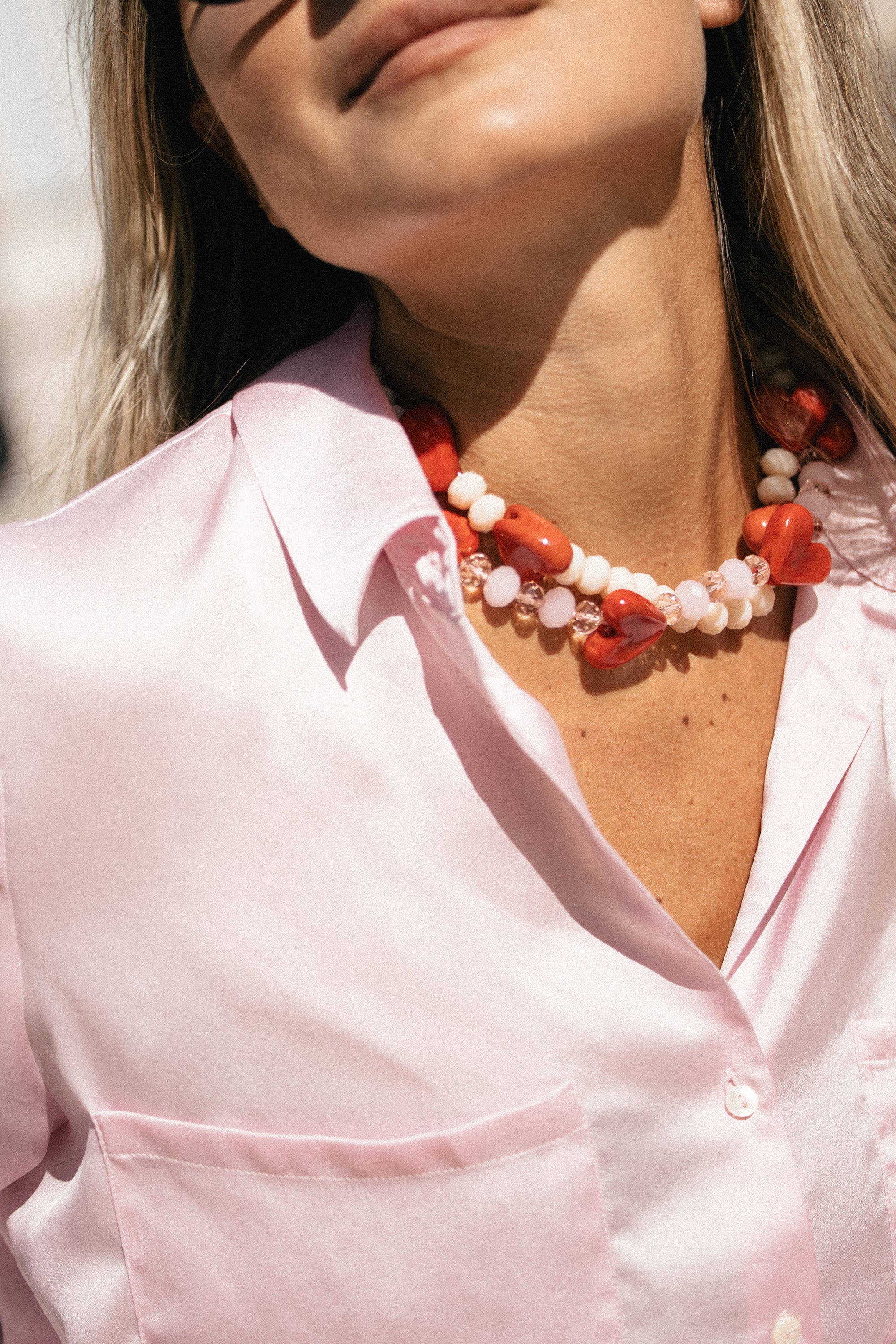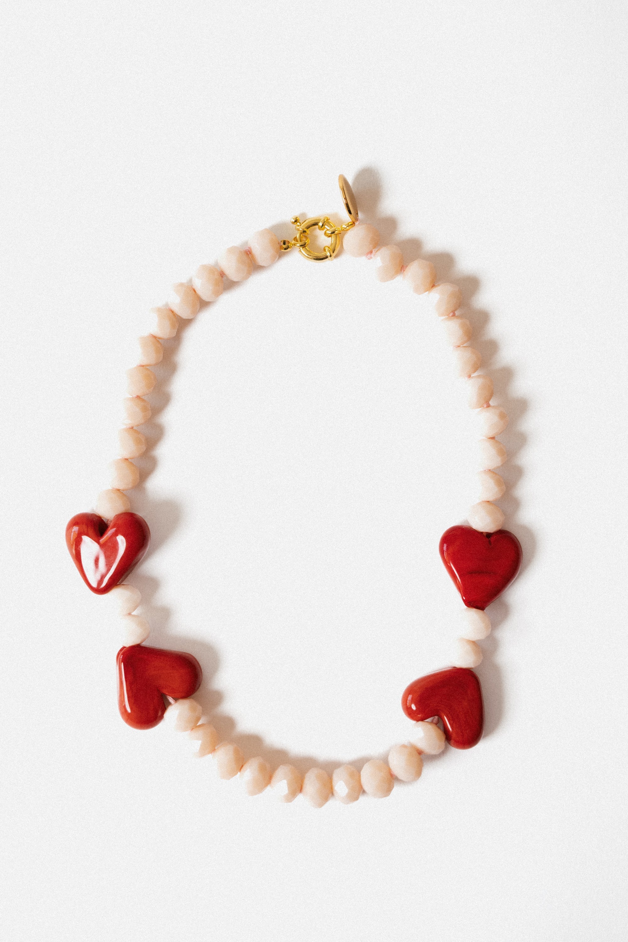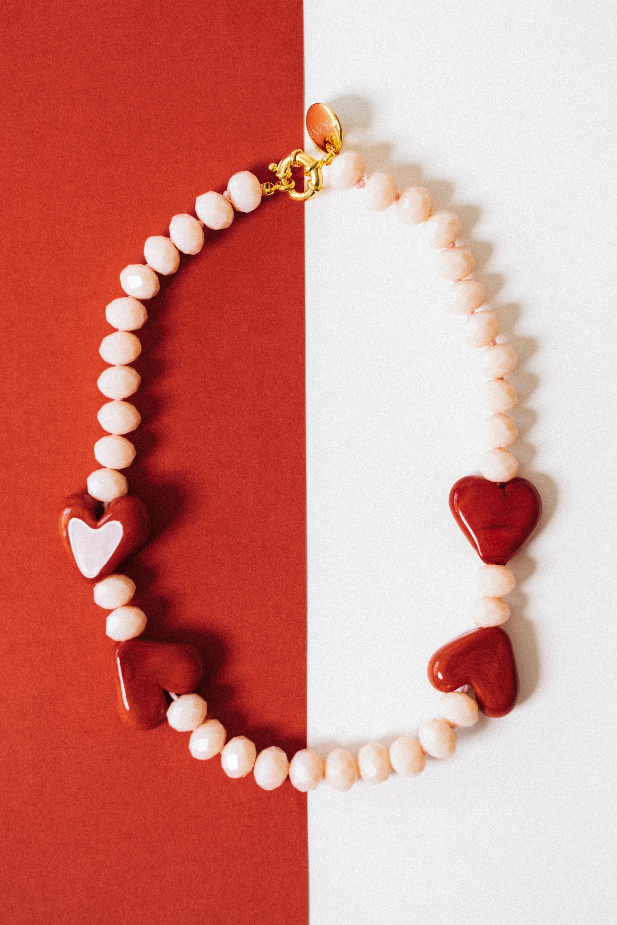 Corações em Murano de vidro + Esferas de Cristal / Fecho em Aço inoxidável + banho em ouro 18k