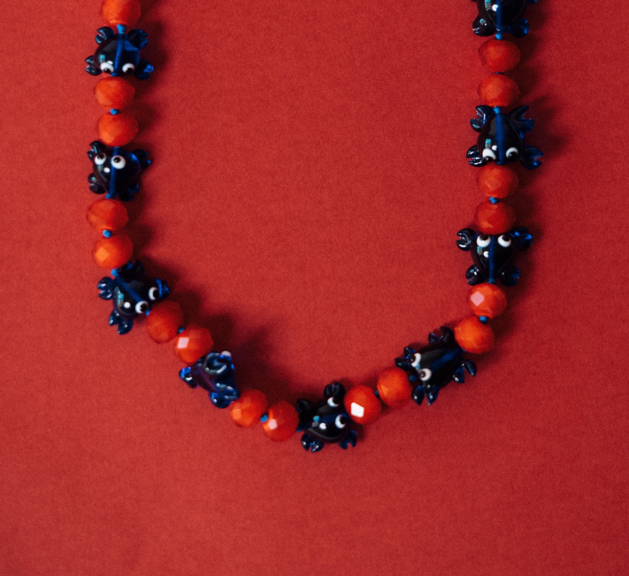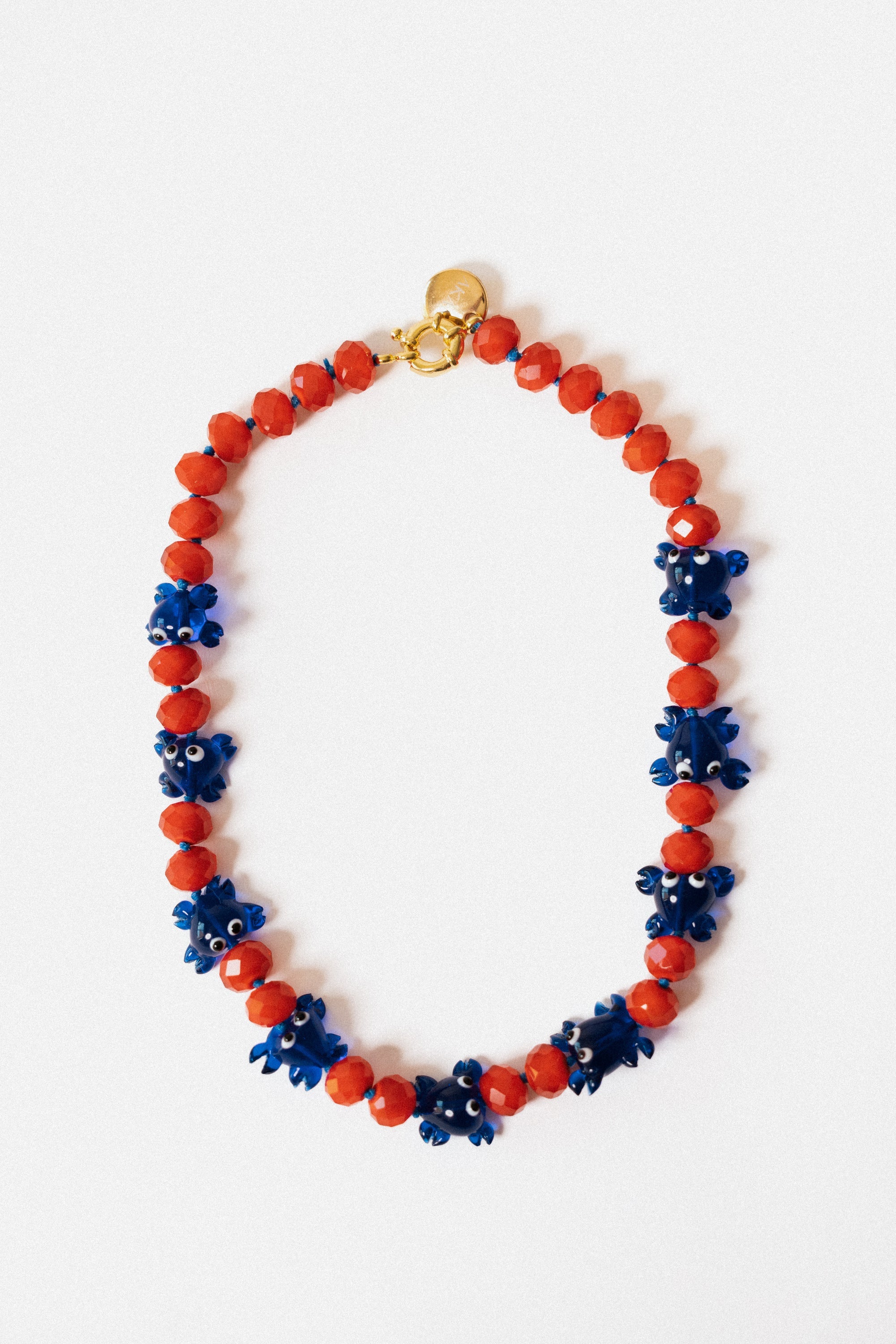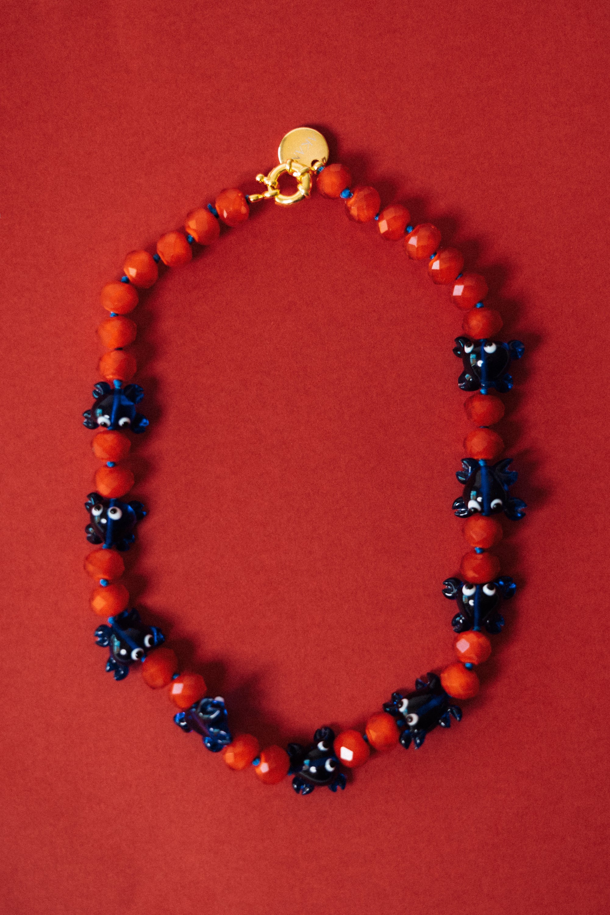 Caranguejo de Cristal em Murano de vidro + Esferas de Cristal / Fecho em Aço inoxidável + banho em ouro 18k