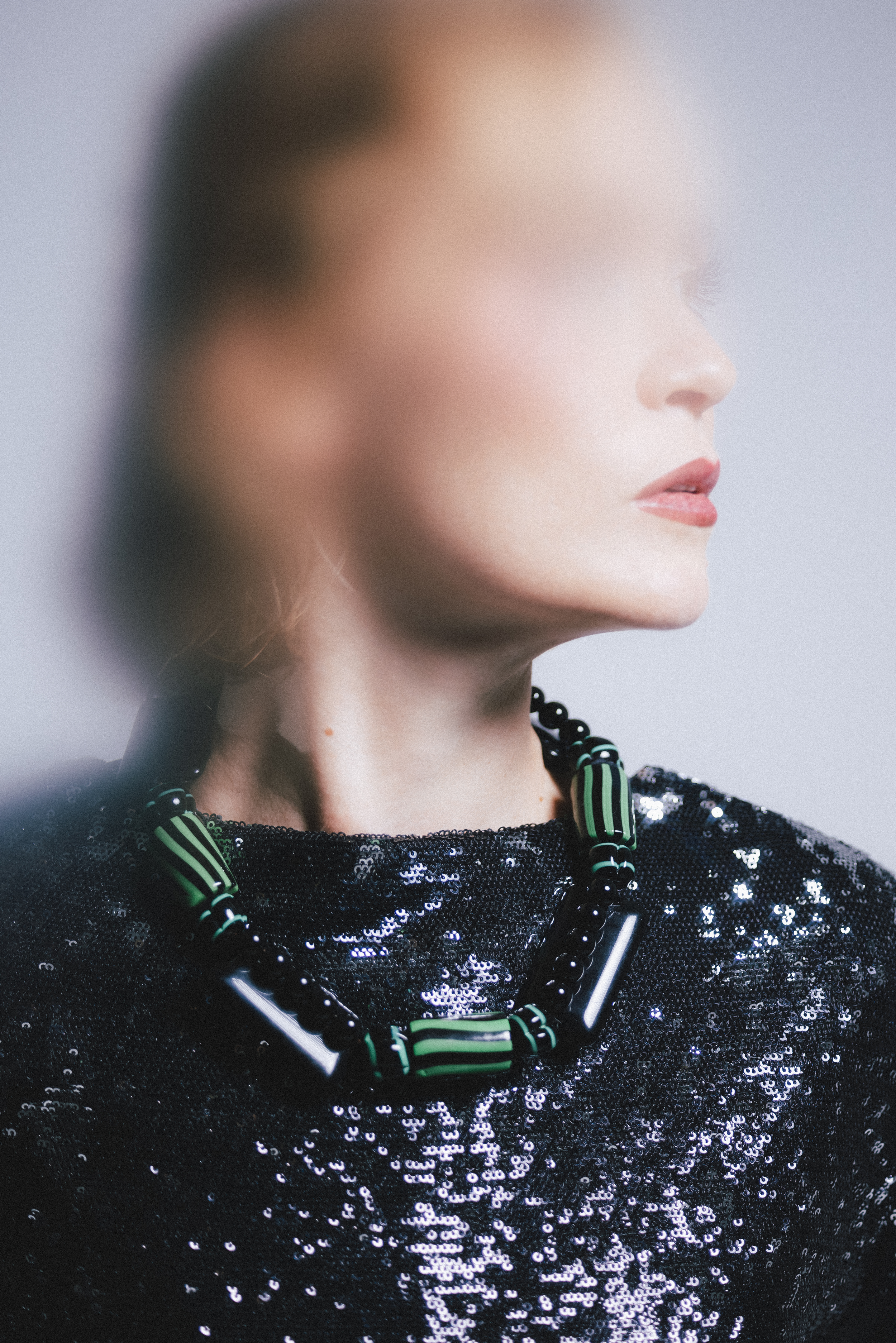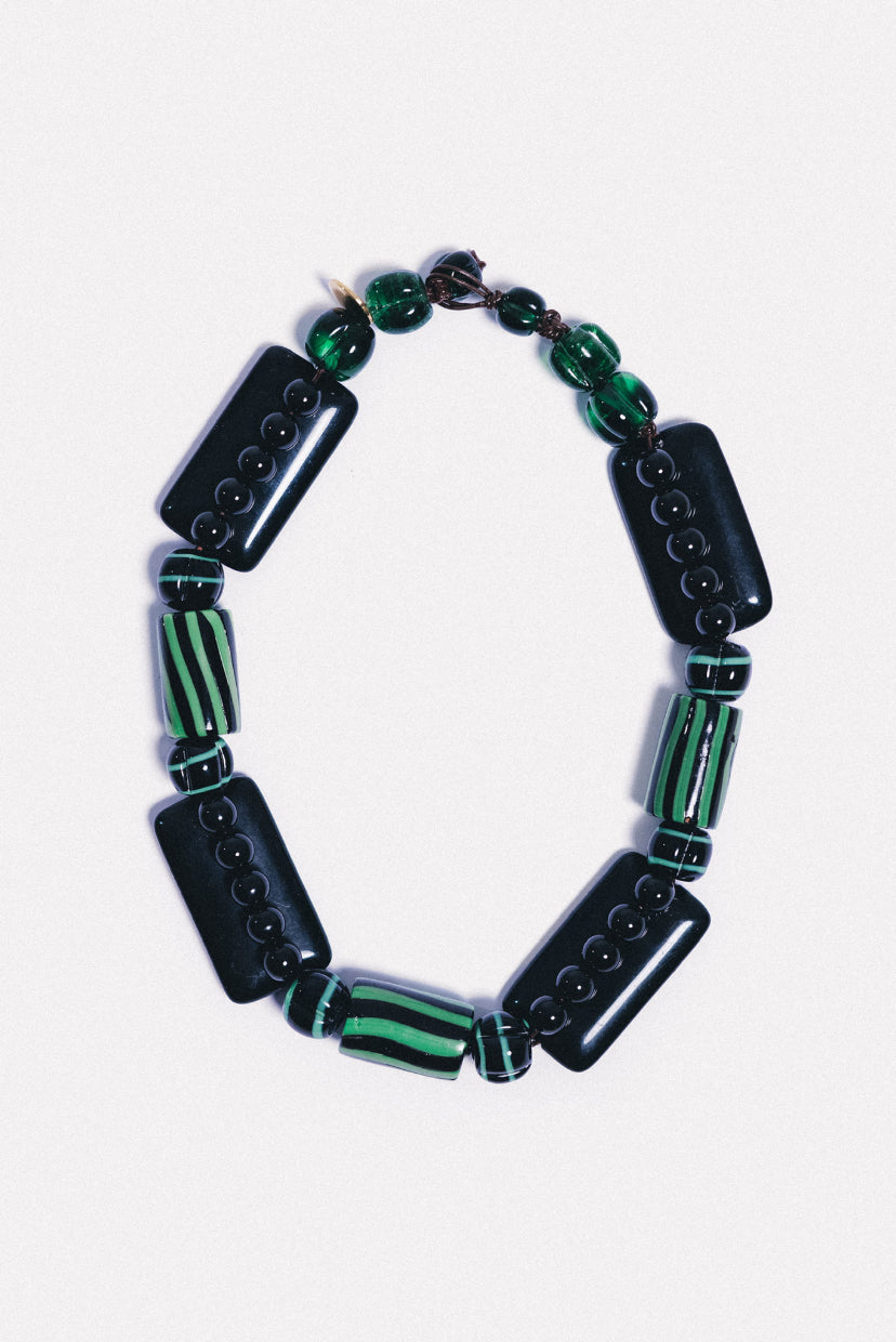 A harmonia lúdica entre pedras naturais e esferas de cerâmica, formando um conjunto geométrico invulgar, resulta em peças exclusivas cuidadosamente feitas à mão na nossa oficina. Os detalhes em metal banhado a ouro, como os fechos e as etiquetas, fazem parte da nossa linha de joias de luxo.